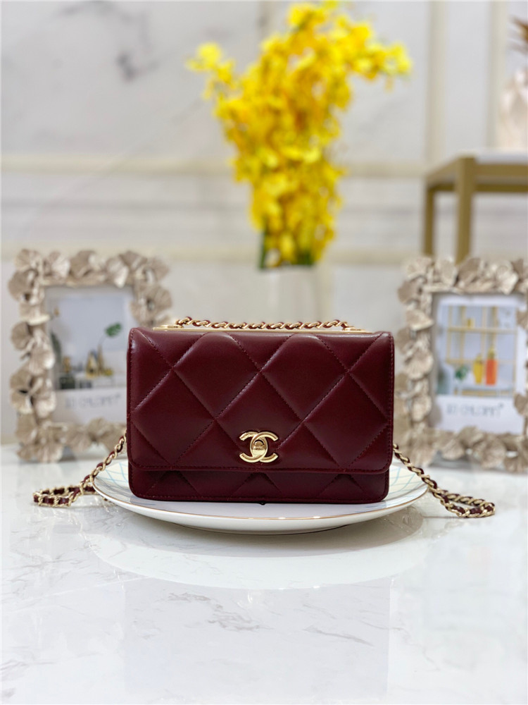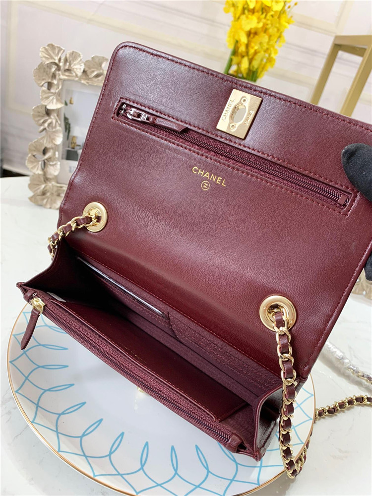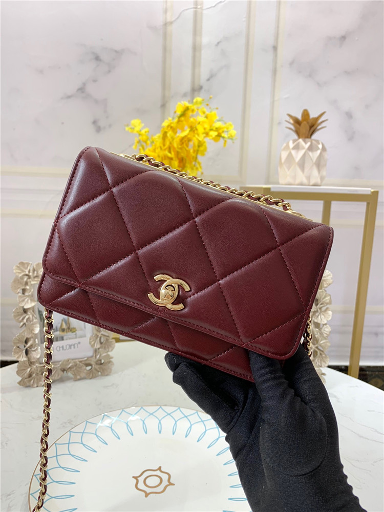 CHANEL RED CHAIN WALLETS A80982 B01289 N4859