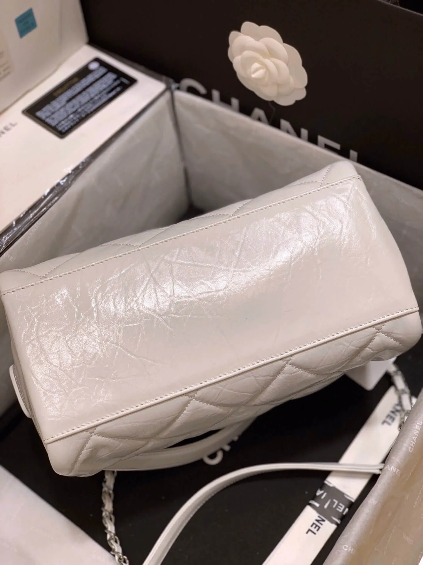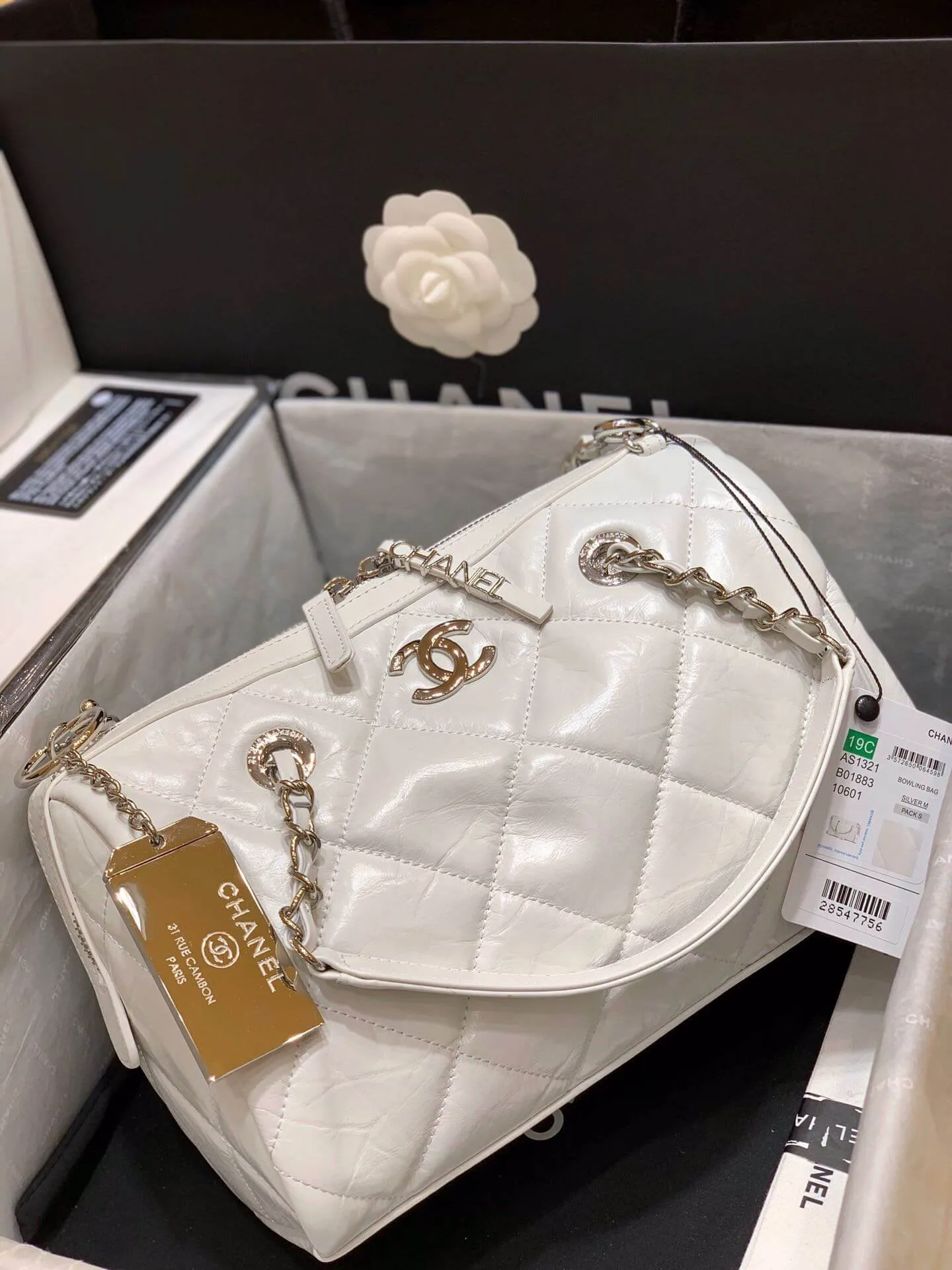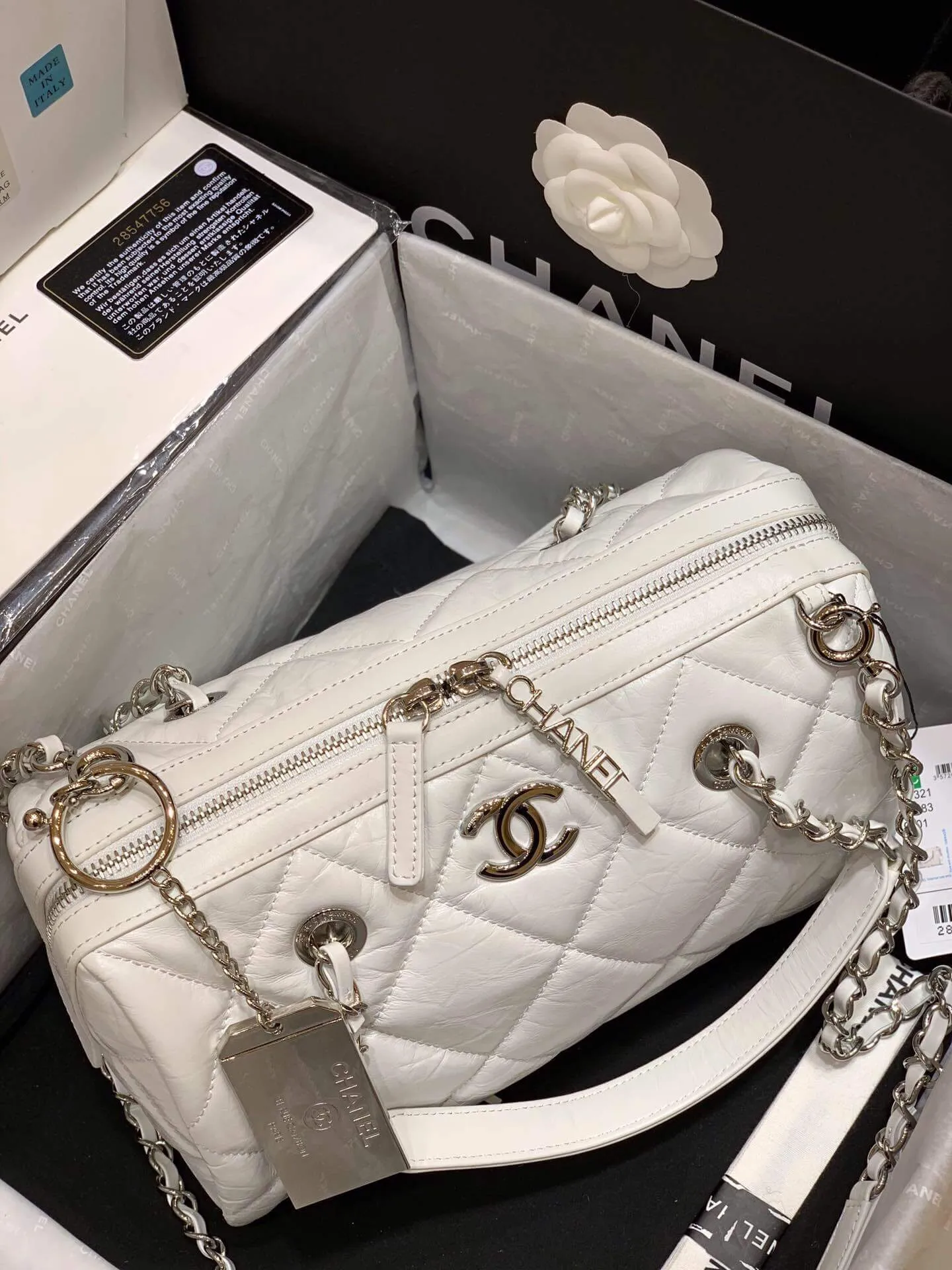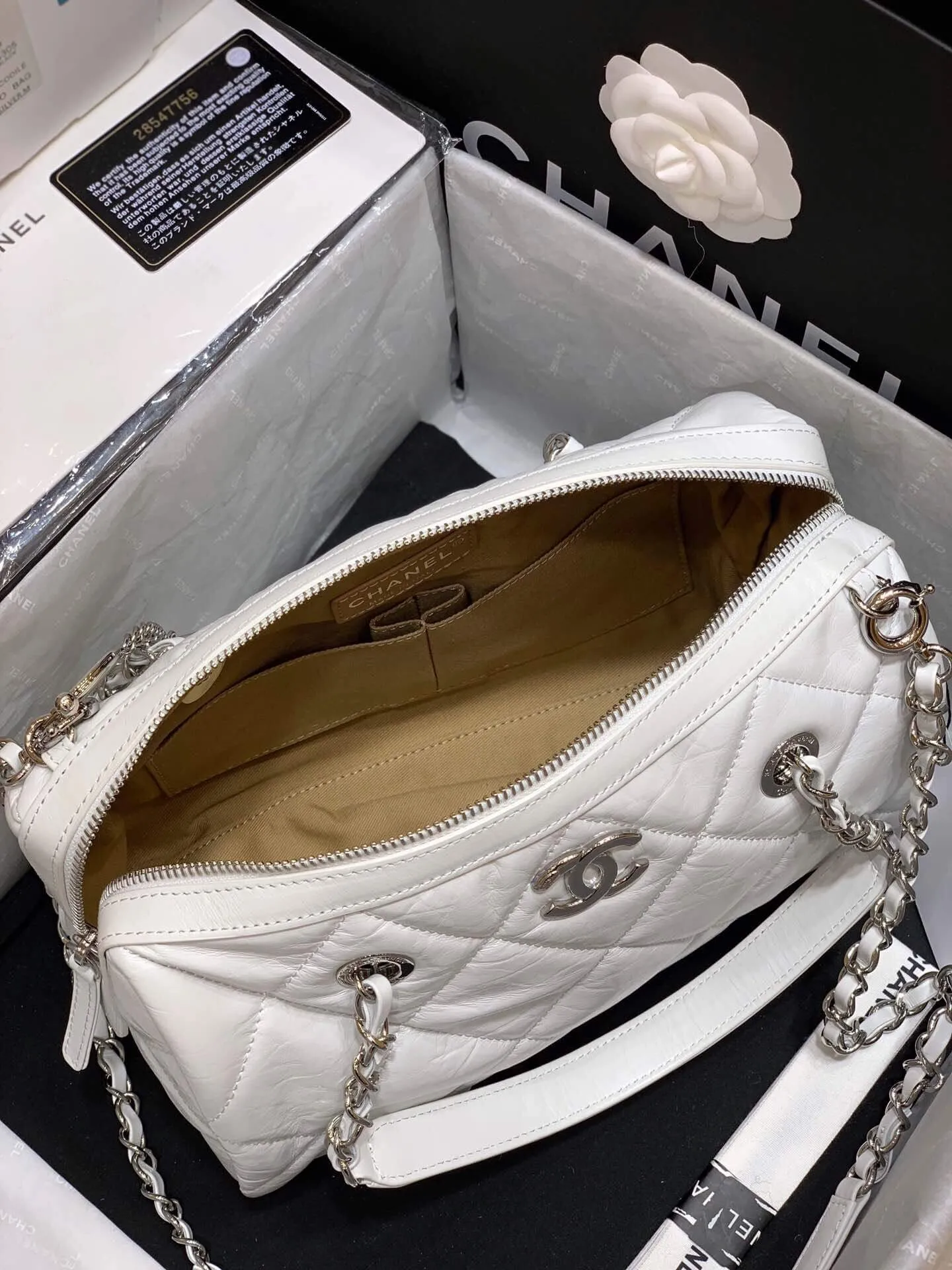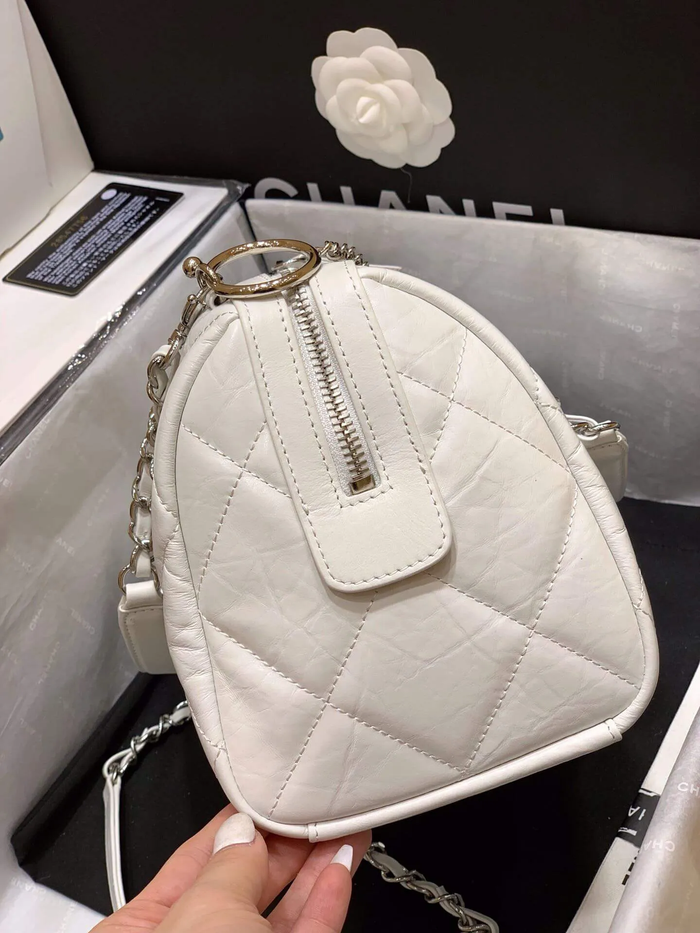 CHANEL SMALL BOWLING BAG CALFSKIN SILVERTONE METAL WHITE AS1321 B01883 10601