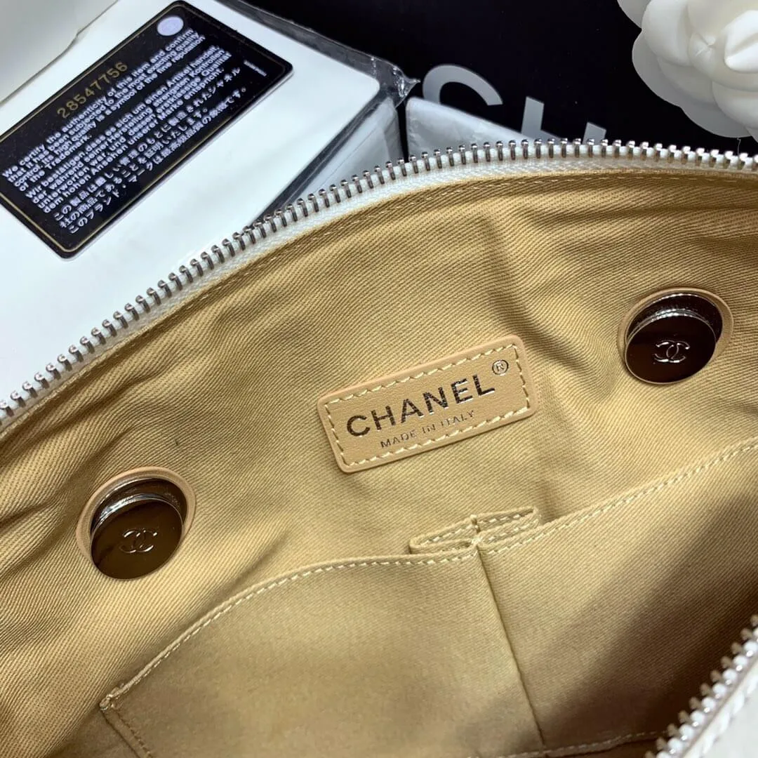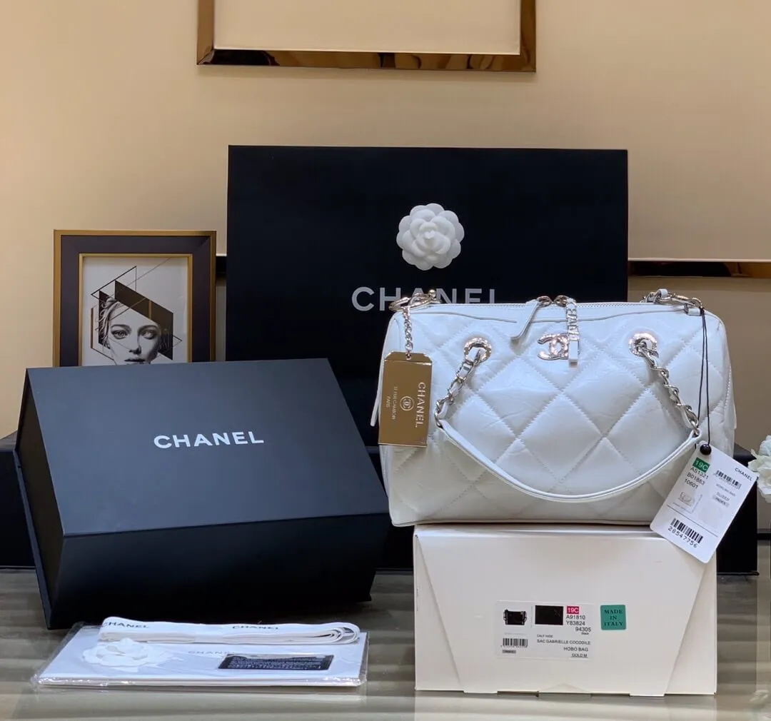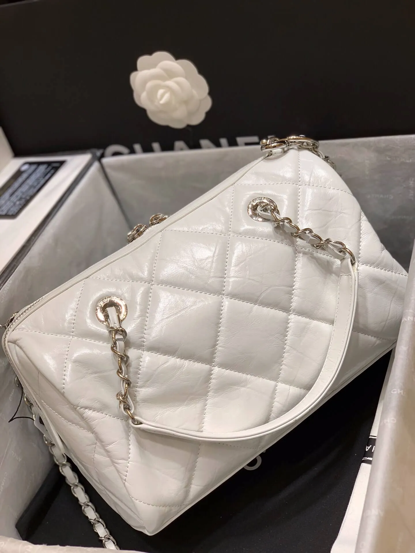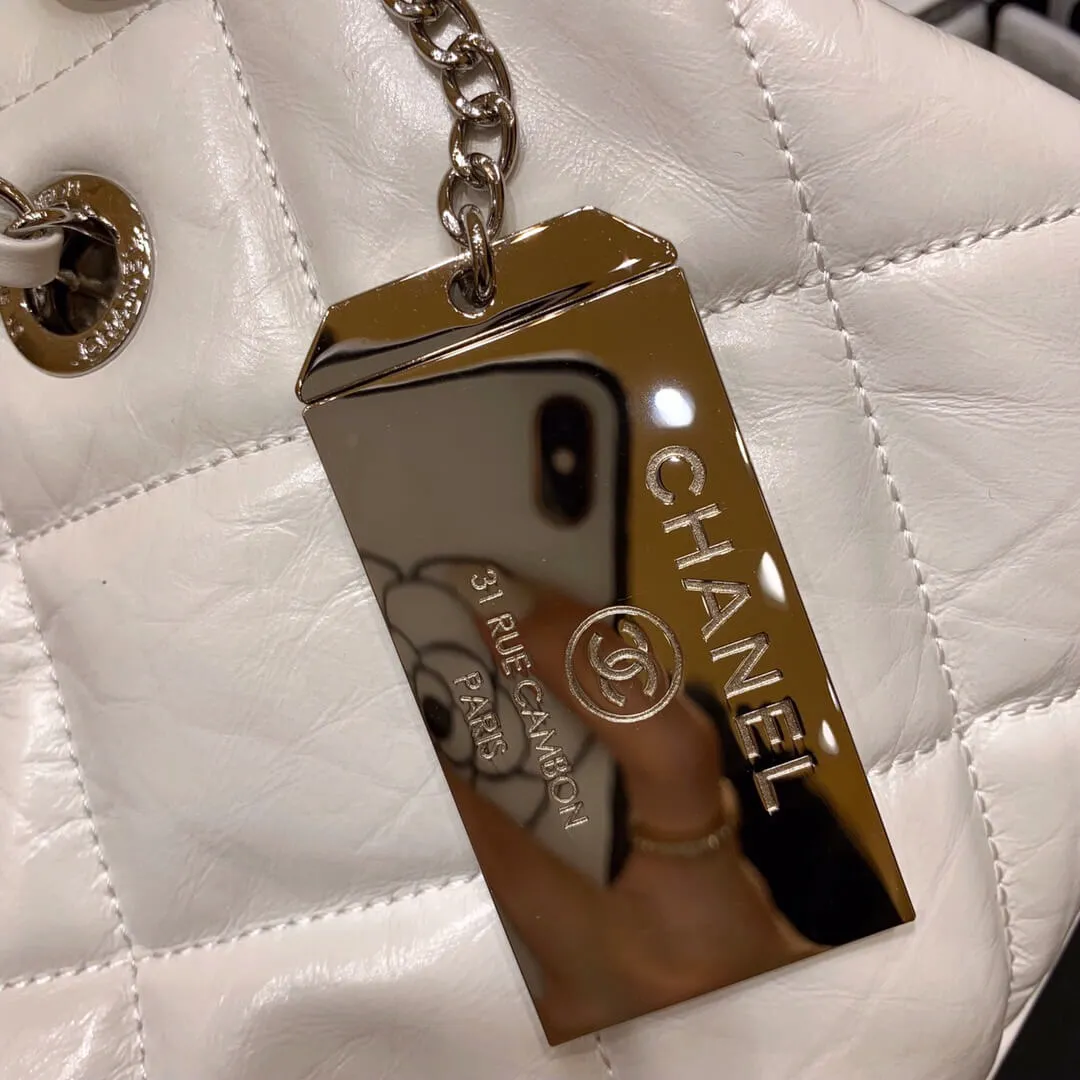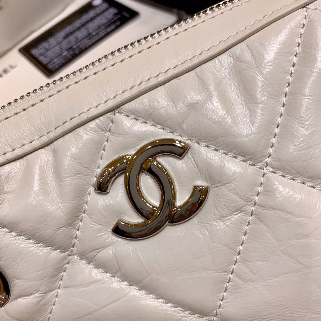 CHANEL SMALL BOWLING BAG CALFSKIN SILVERTONE METAL WHITE AS1321 B01883 10601