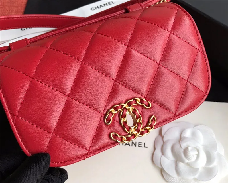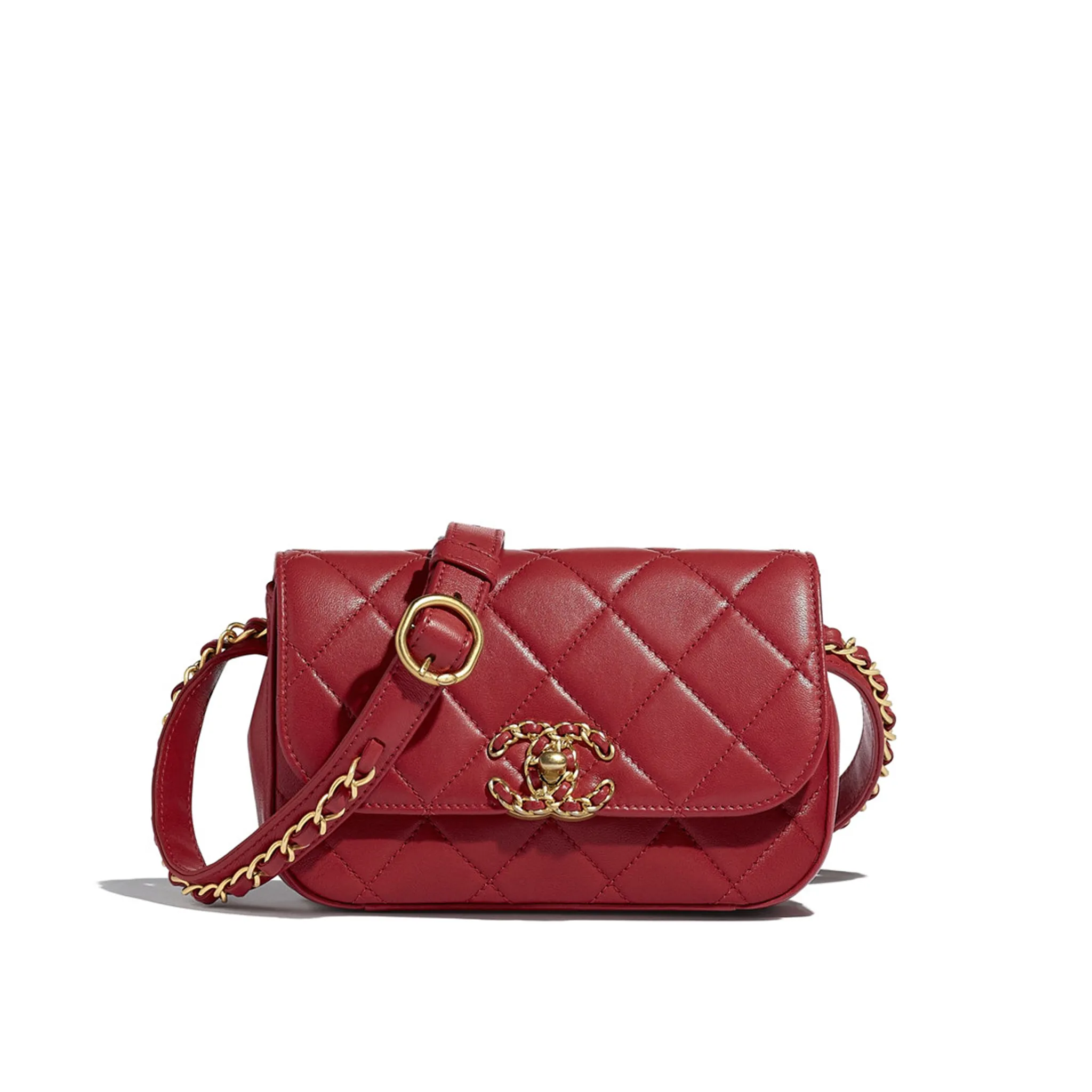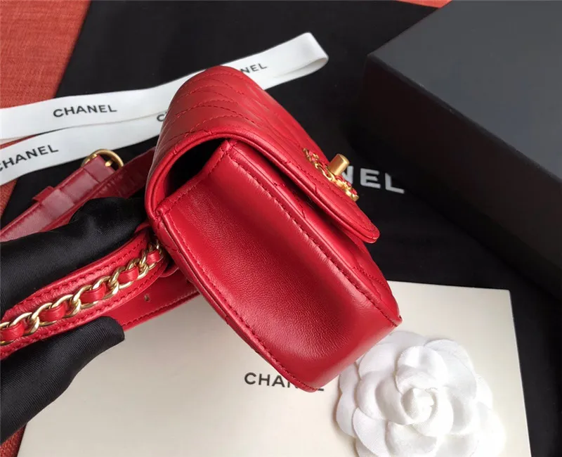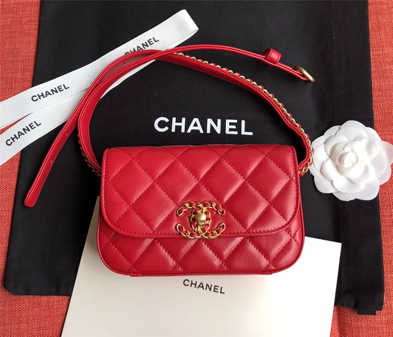 CHANEL WAIST BAG LEATHER RED AS0973 B01220 N4855
