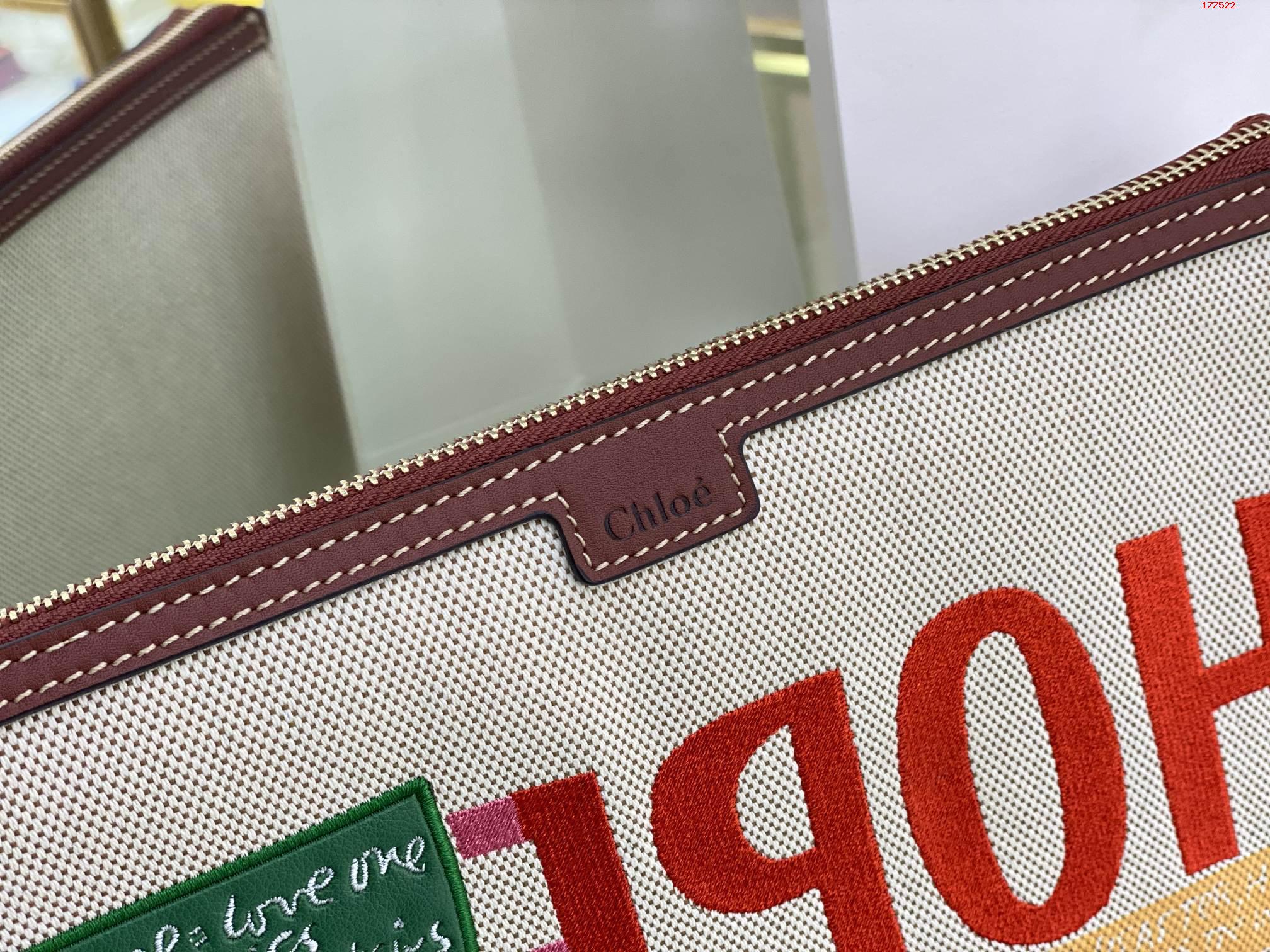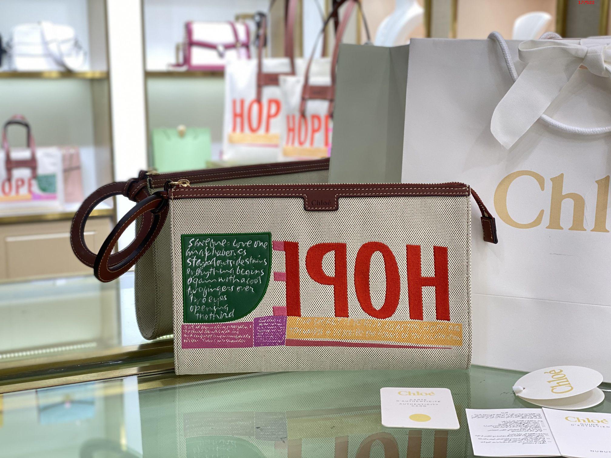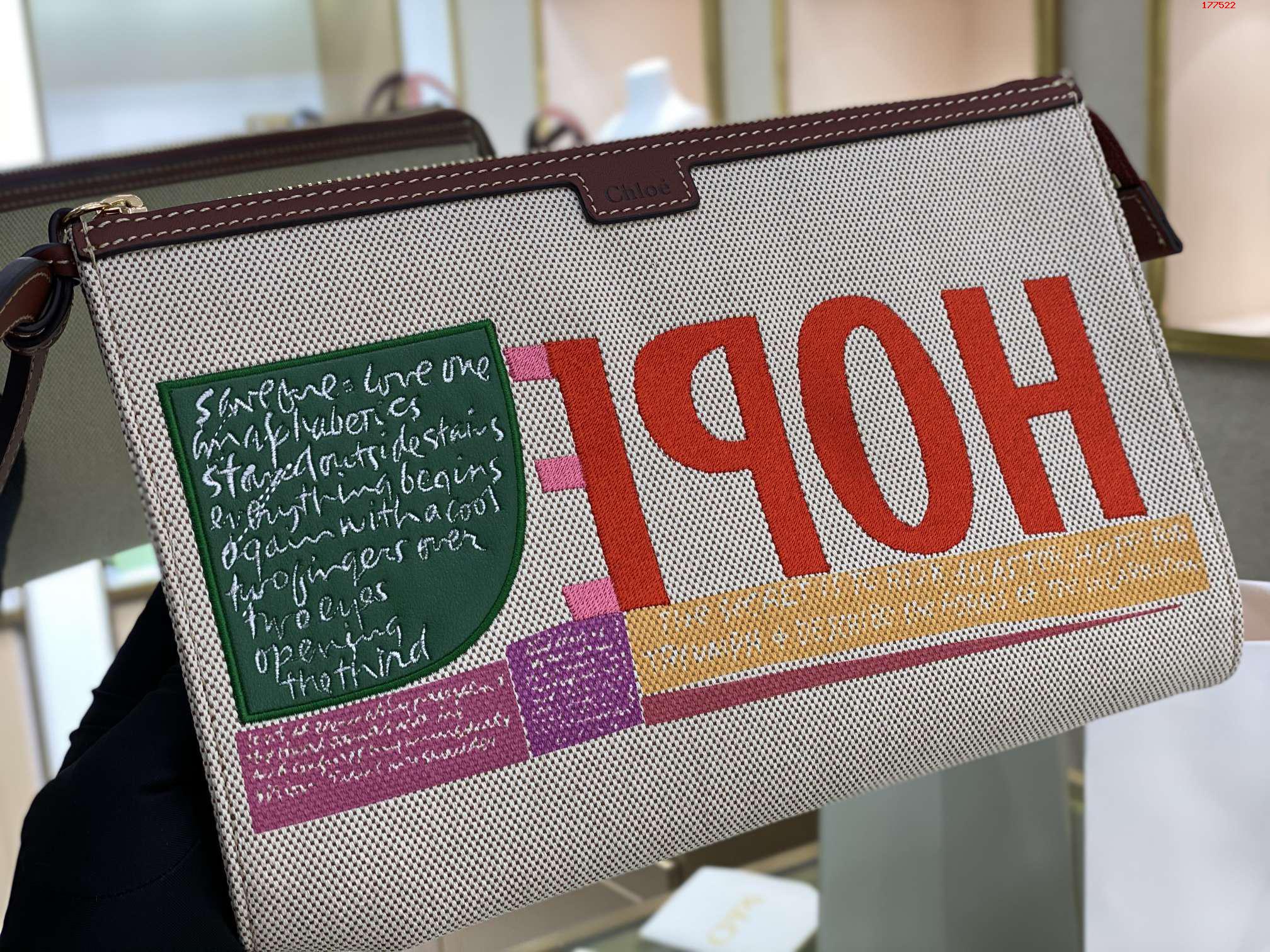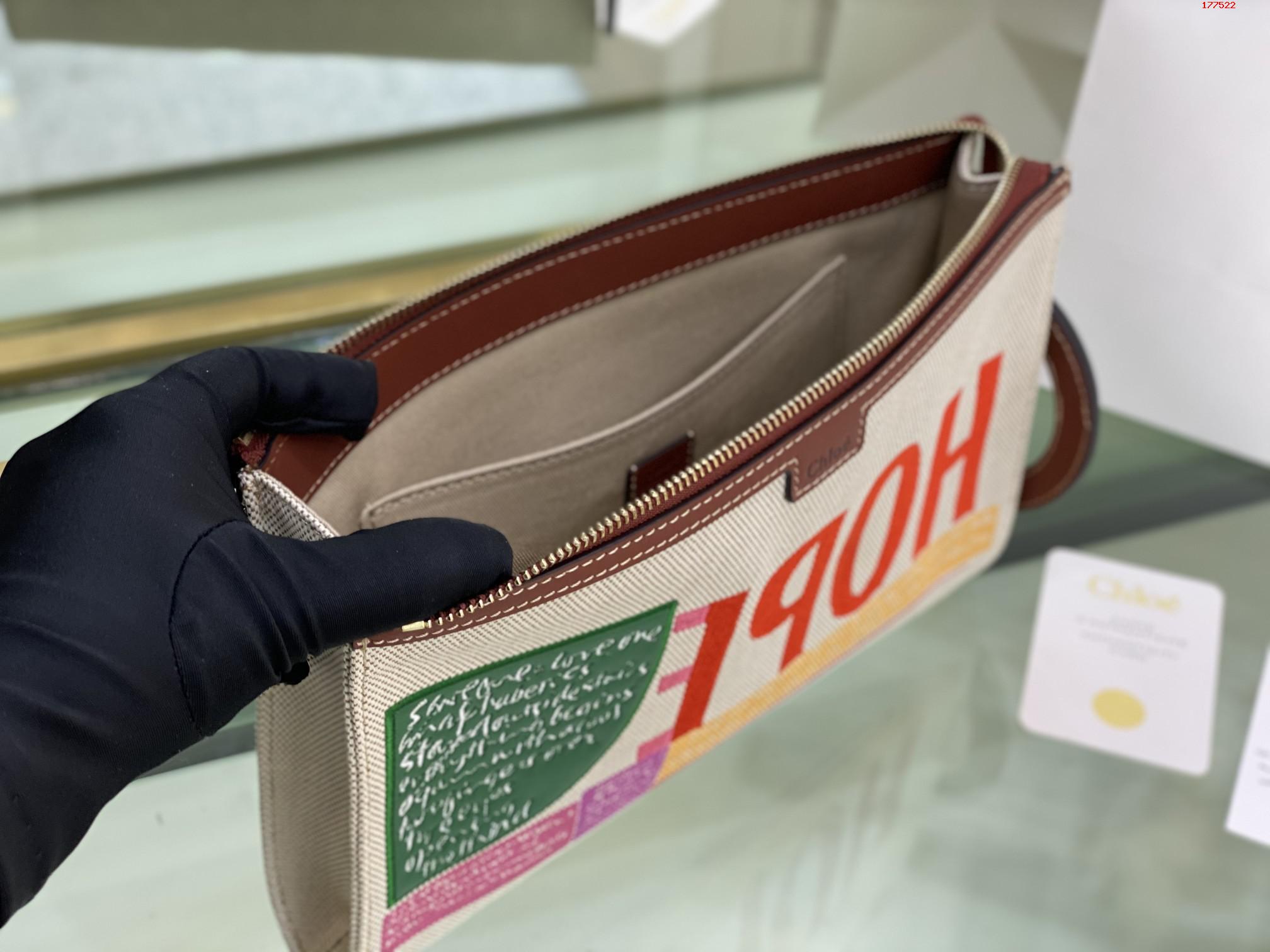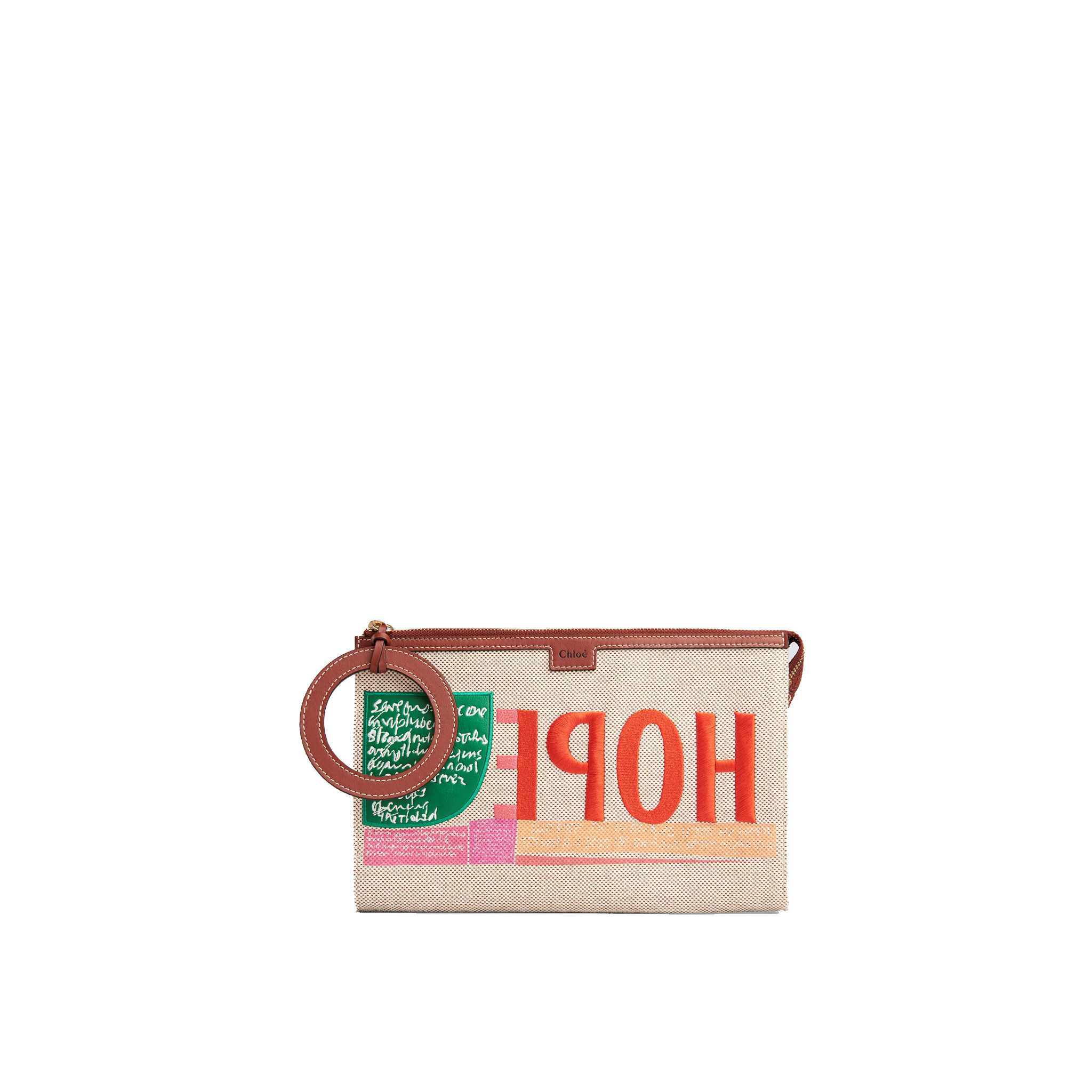 CHLOE CORITA KENT CLUTCH IN EMBROIDERED ARTWORK & SHINY CALFSKIN SEPIA BROWN CHC21UP385E6927S