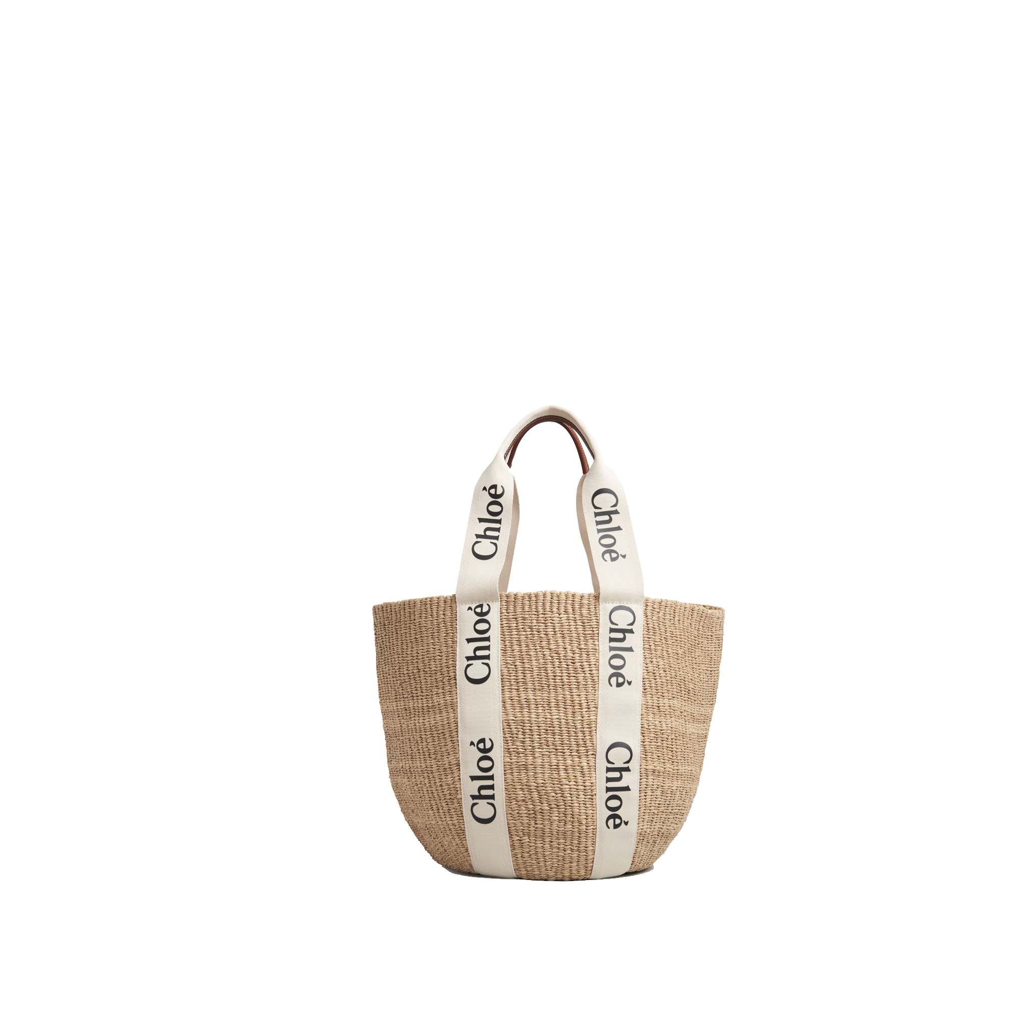 CHLOE LARGE WOODY BASKET IN FAIR-TRADE PAPER WITH THE WOODY RIBBON WHITE CHC21US380E65101