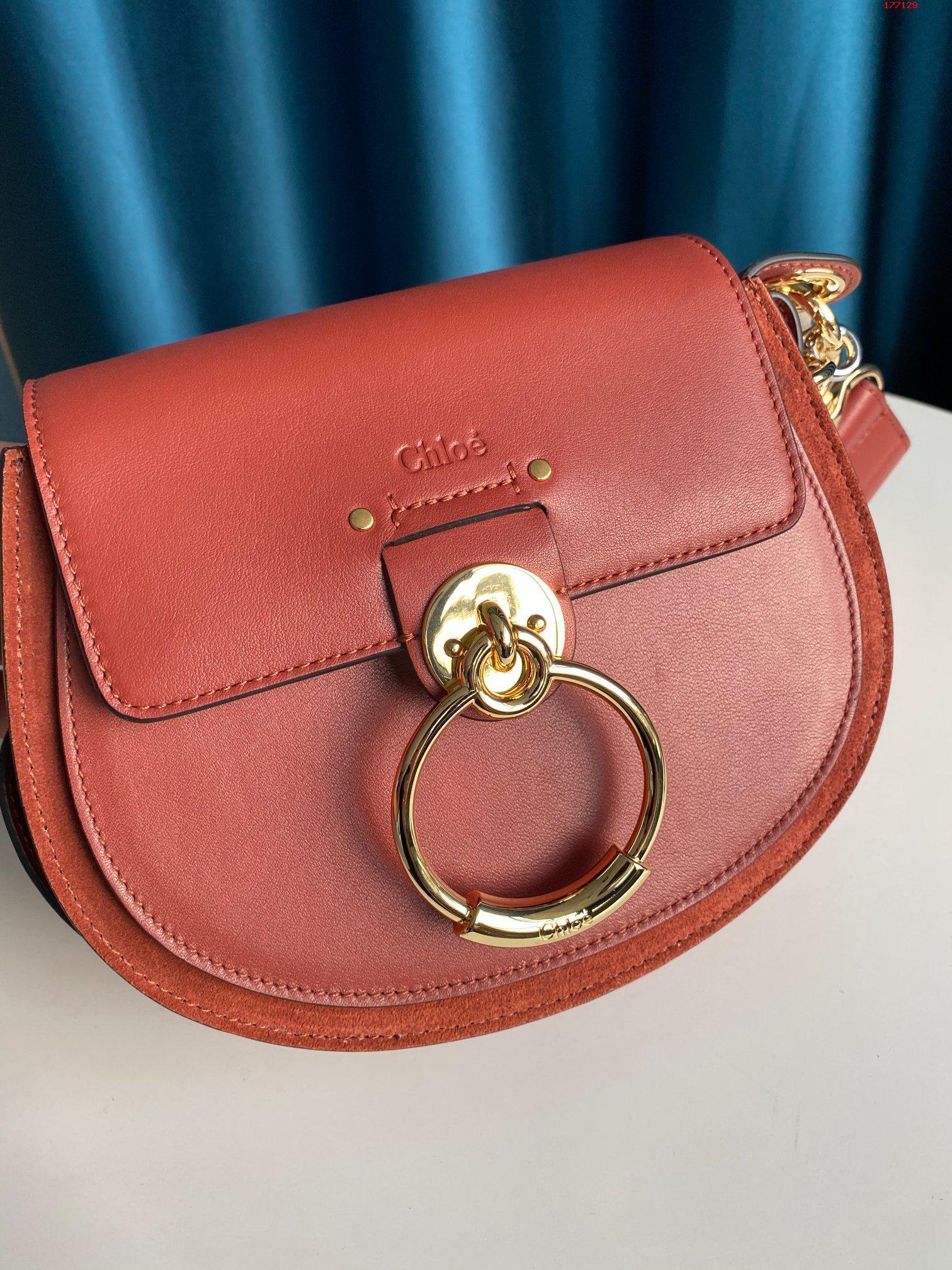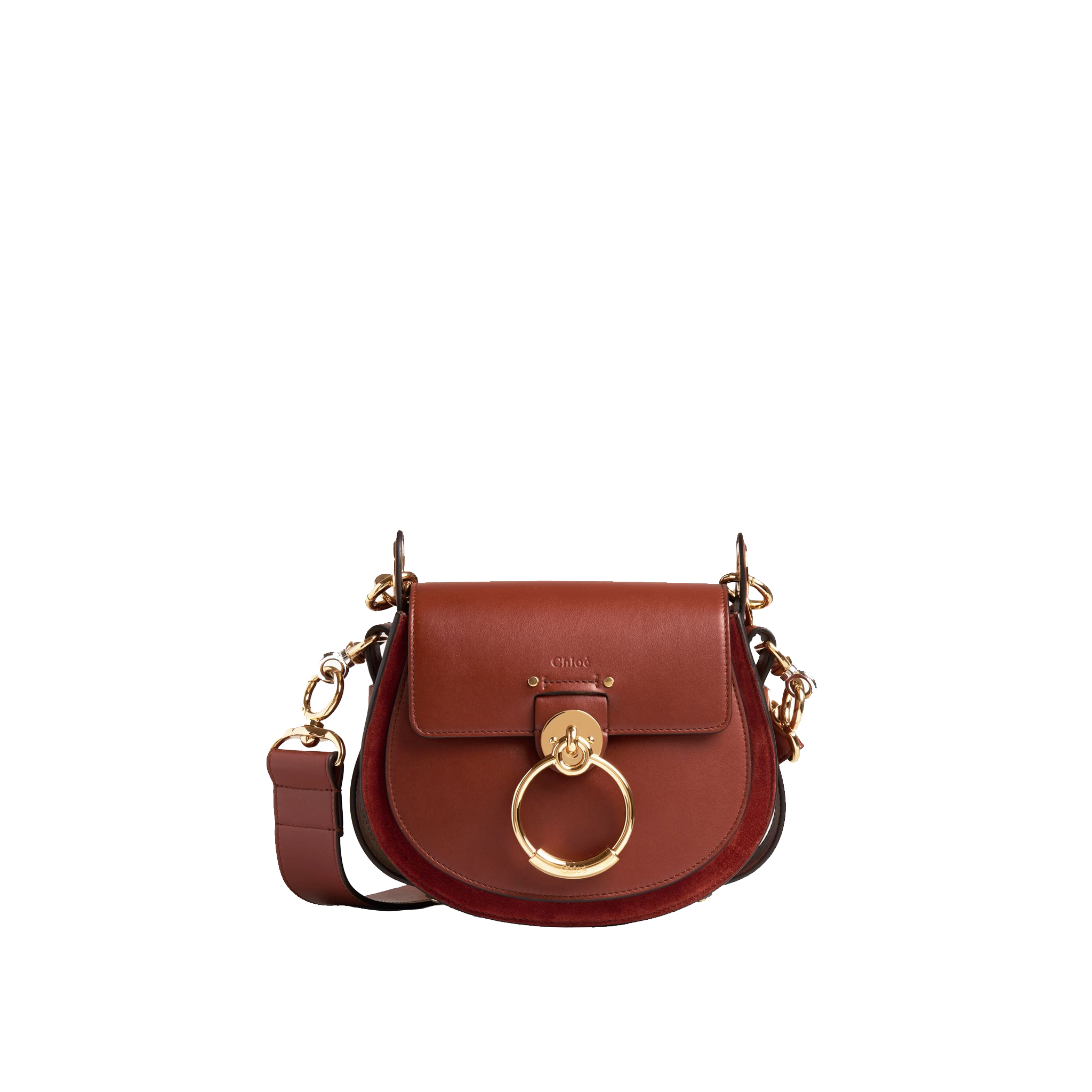 Home/Chloe Handbags/Women/CHLOE TESS SMALL BAG IN SHINY & SUEDE CALFSKIN SEPIA BROWN CHC18WS153A3727S