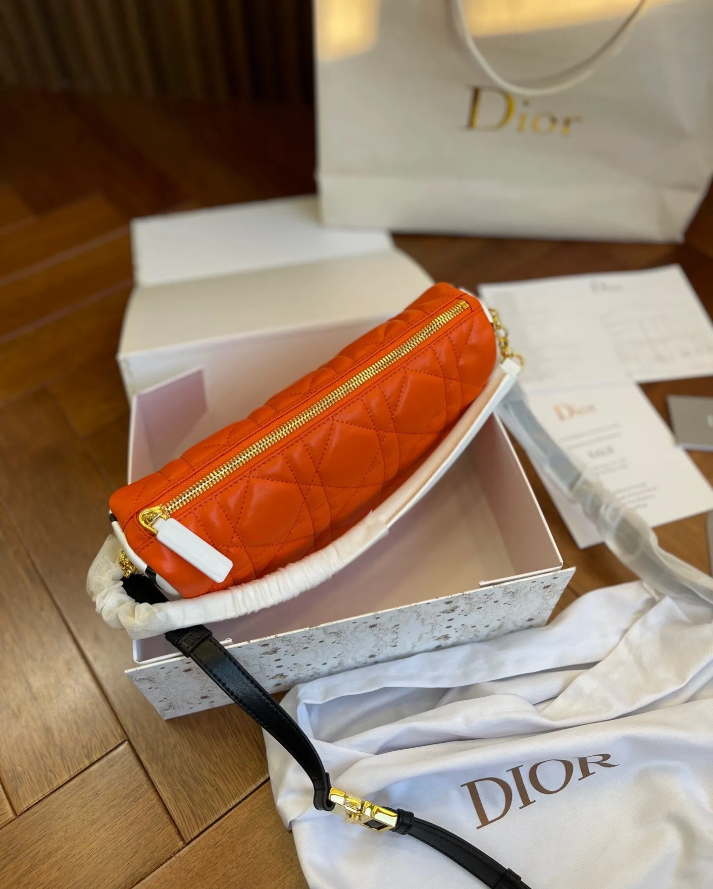 DIOR SMALL DIOR VIBE HOBO BAG ORANGE MACROCANNAGE LAMBSKIN M7200ODDO_M057