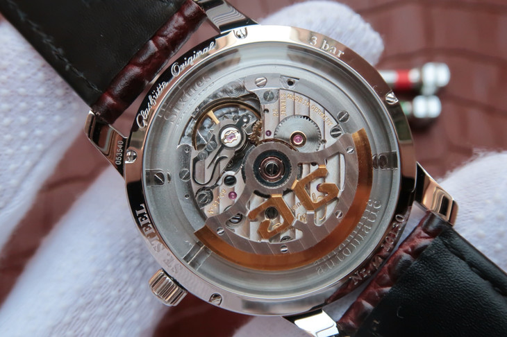 A specially formed sapphire crystal case back, which the Saxon Manufactory first presented in the Sixties collection, is a feature of the models as well, permitting enhanced, broader views of the Calibre 39-52, which powers the Sixties.