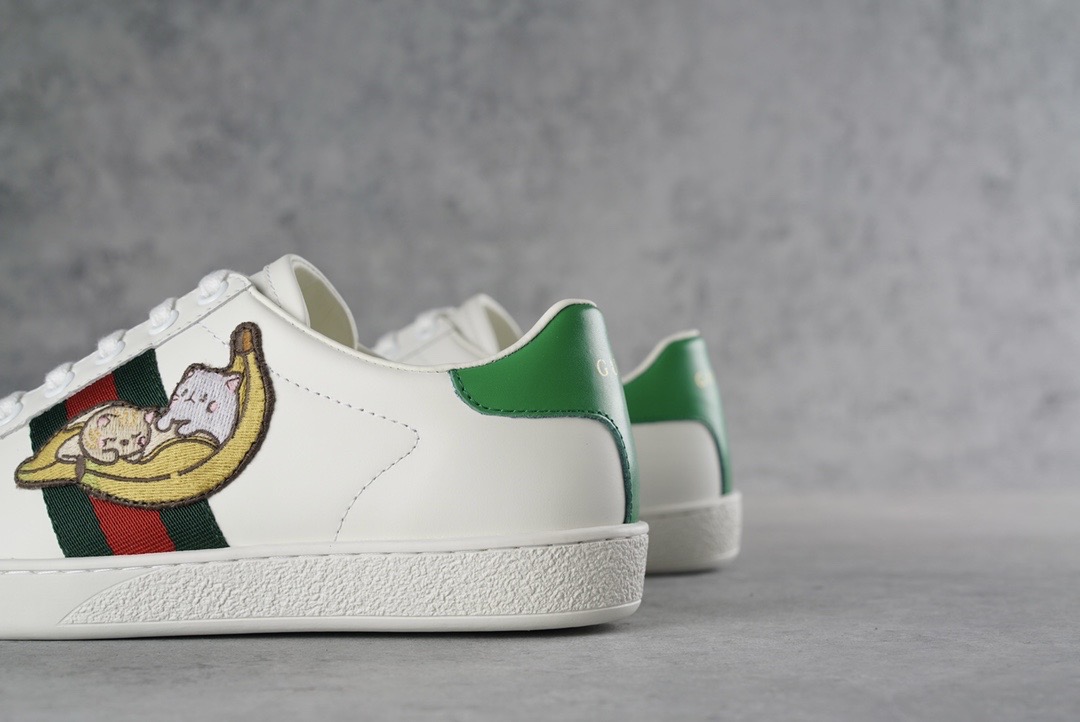 Bananya makes an appearance throughout the Ouverture collection celebrating the House’s playful narrative that began six years ago. With dreams of becoming a fashionable chocolate-covered banana, the spirited cat is known for its charming pranks and friend-filled adventures. Here, the cat image is reworked in an embroidered patch decorating the Ace sneaker.