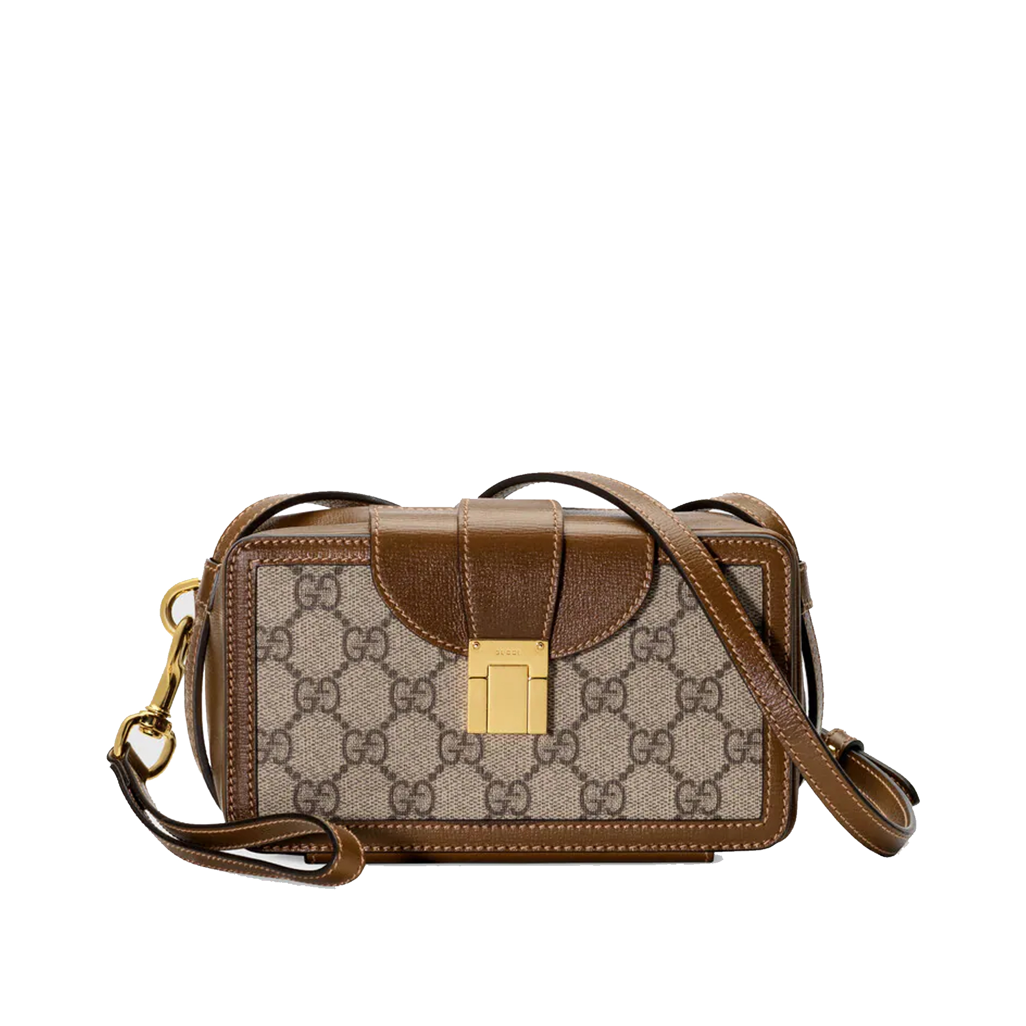 Inspired by vintage trunks and travel accessories, the GG Supreme mini bag has a squared shape, finished with a logo engraved metal buckle. First used in the 1970s, the GG logo was an evolution of the original Gucci rhombi design from the 1930s, and from then it’s been an established symbol of Gucci’s heritage. To be carried at the wrist or worn as a shoulder bag, the functional design is completed interior card slots and a zippered pouch. Pieces with versatile ways to wear and style embrace each person who is part of the House’s individual spirit.