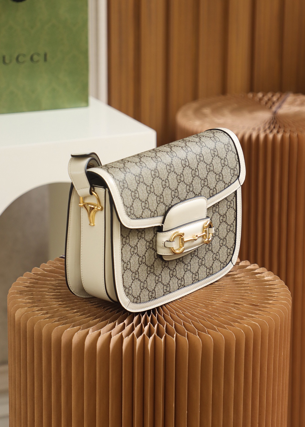 GUCCI HORSEBIT 1955 SMALL SHOULDER BAG GG SUPREME CANVAS WHITE 602204 92TCG 9761