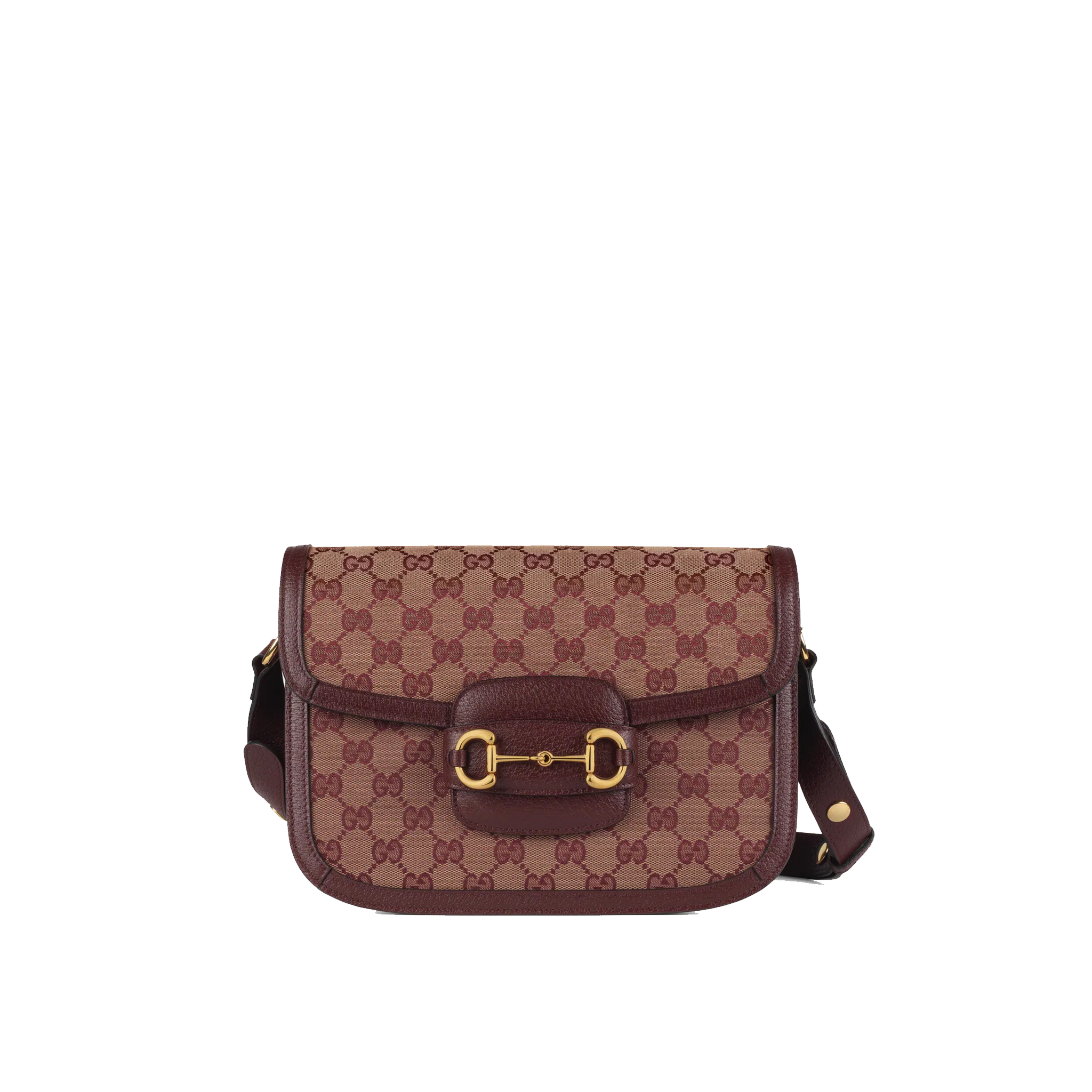 Recreated from an archival design, the Gucci Horsebit 1955 bag is introduced in beige and burgundy Original GG canvas. With the same lines and forms first introduced over six decades ago, the accessory unifies the original details with a modern spirit, highlighting the Horsebit. The small flap shoulder bag is completed with a special mechanism that adjusts the length of the shoulder strap so it can be carried on one shoulder or cross body.