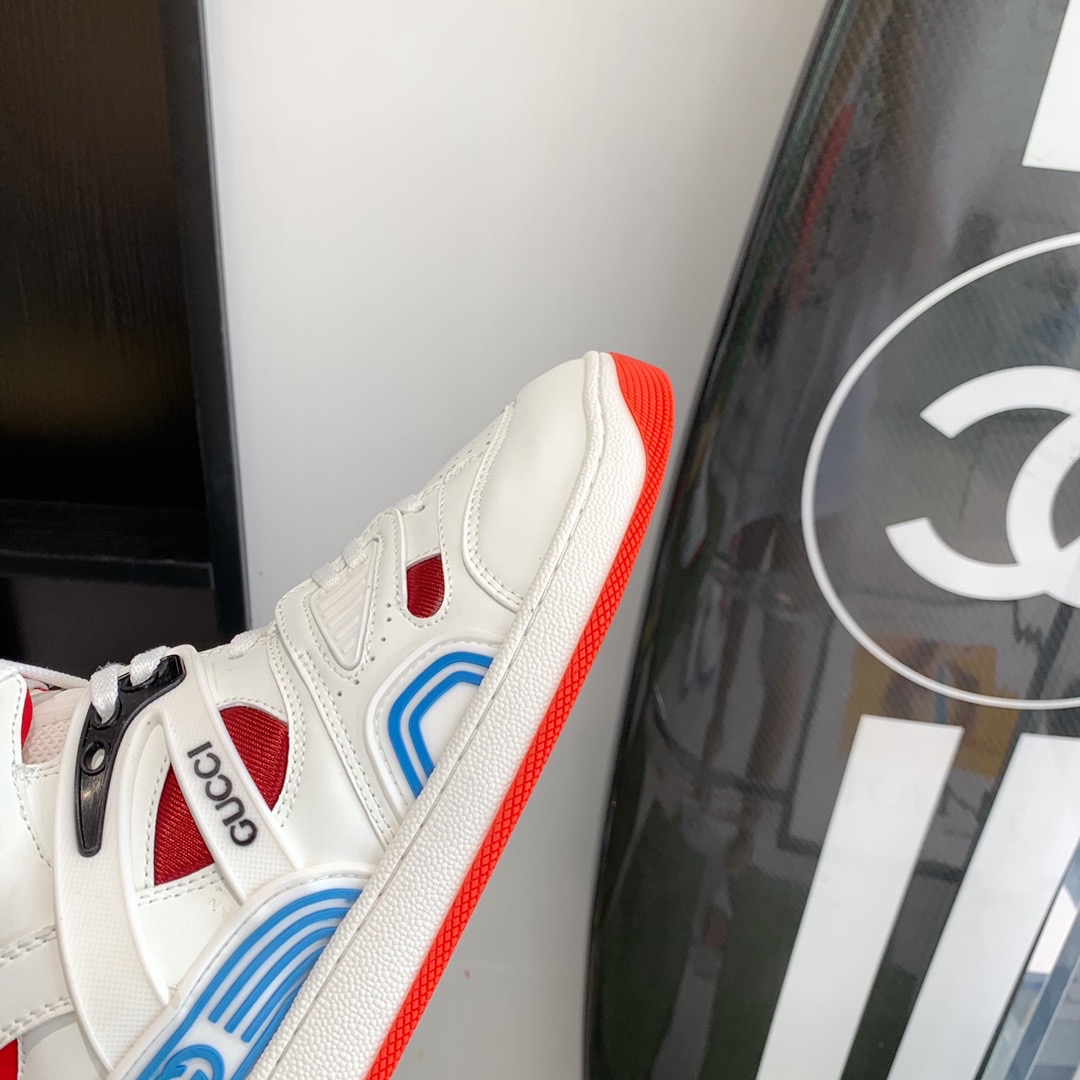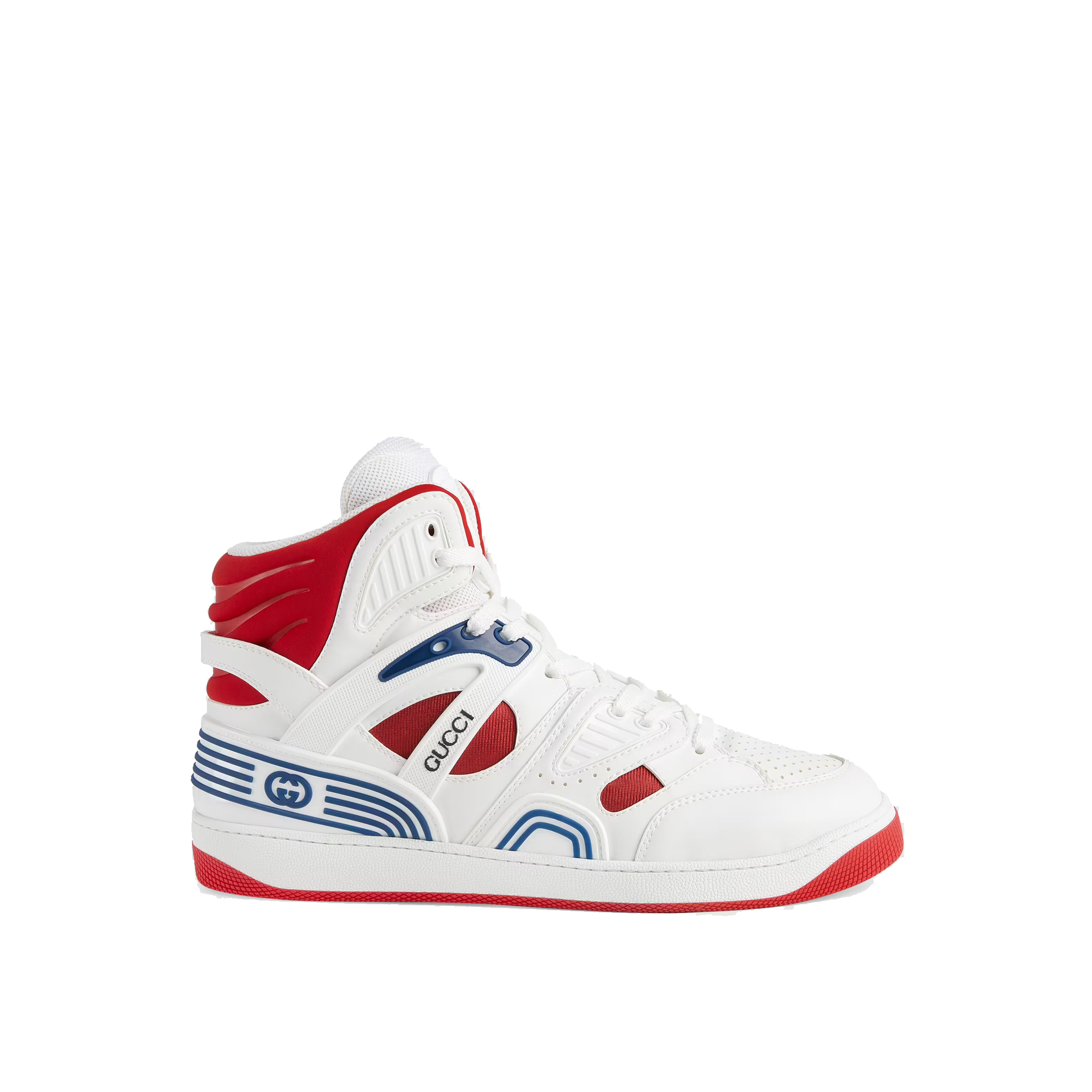 Sporting a look synonymous with basketball sneakers from the ‘90s, the House introduces the newest rendition of the lace-up sneaker—Gucci Basket. This high-top style emulates the self-expression of on-court aesthetic with distinctive features and detailing. Offered in a mix of brightly colored fabrics and finished with a lightly distressed effect, each pair is crafted primarily from Demetra. Created with the same processes used for tanning, the new material offers pliable and resilient performance with a supple finish. The eco-friendly material combines animal-free raw materials primarily from sustainable, renewable, and bio-based sources.