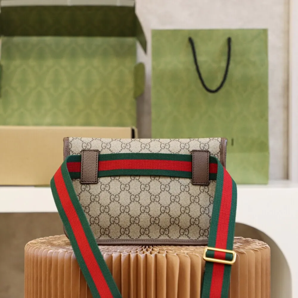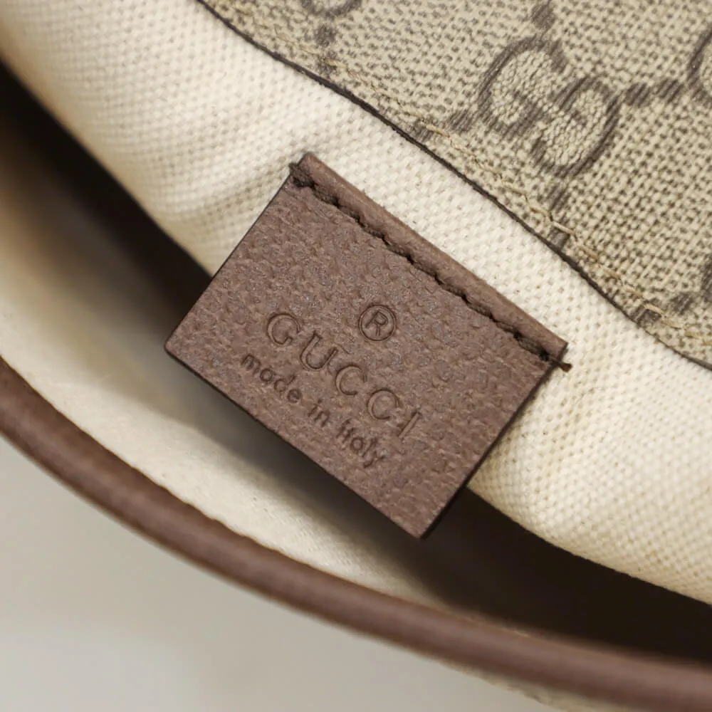 The belt bag in GG Supreme has a retro influenced design. Trimmed with leather, the style is meant to be worn along the waist, securing with a Web strap and buckle closure.