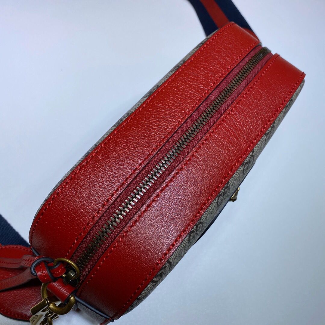 A collection of vintage inspired bags speaks to the contemporary voyager, trimmed with the House Web stripe. Made in GG Supreme canvas, this camera bag has yellow leather details. The contrast trims pay homage to the House’s past, when artisans would repair luggage by replacing worn areas with new ones in any colors that were available.