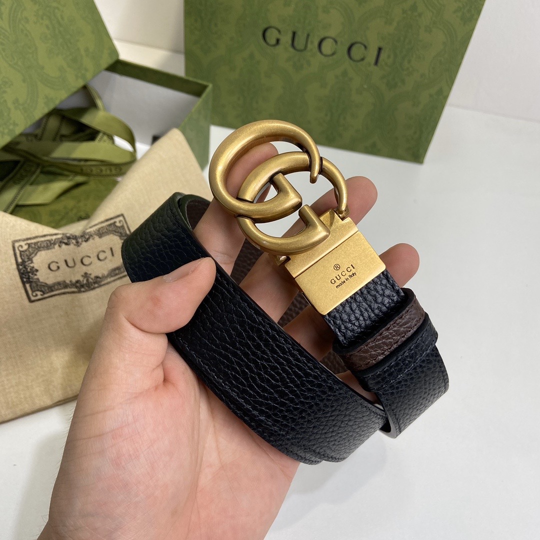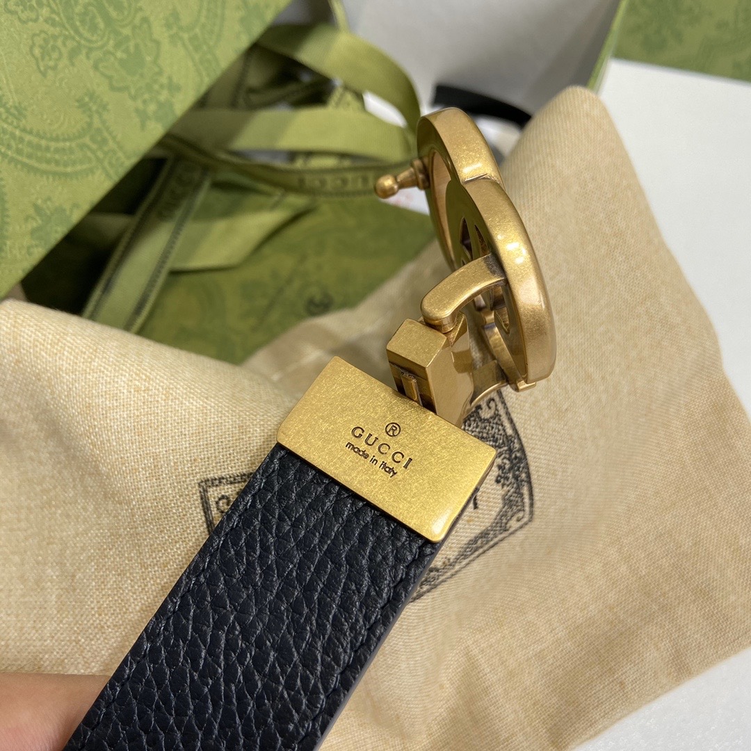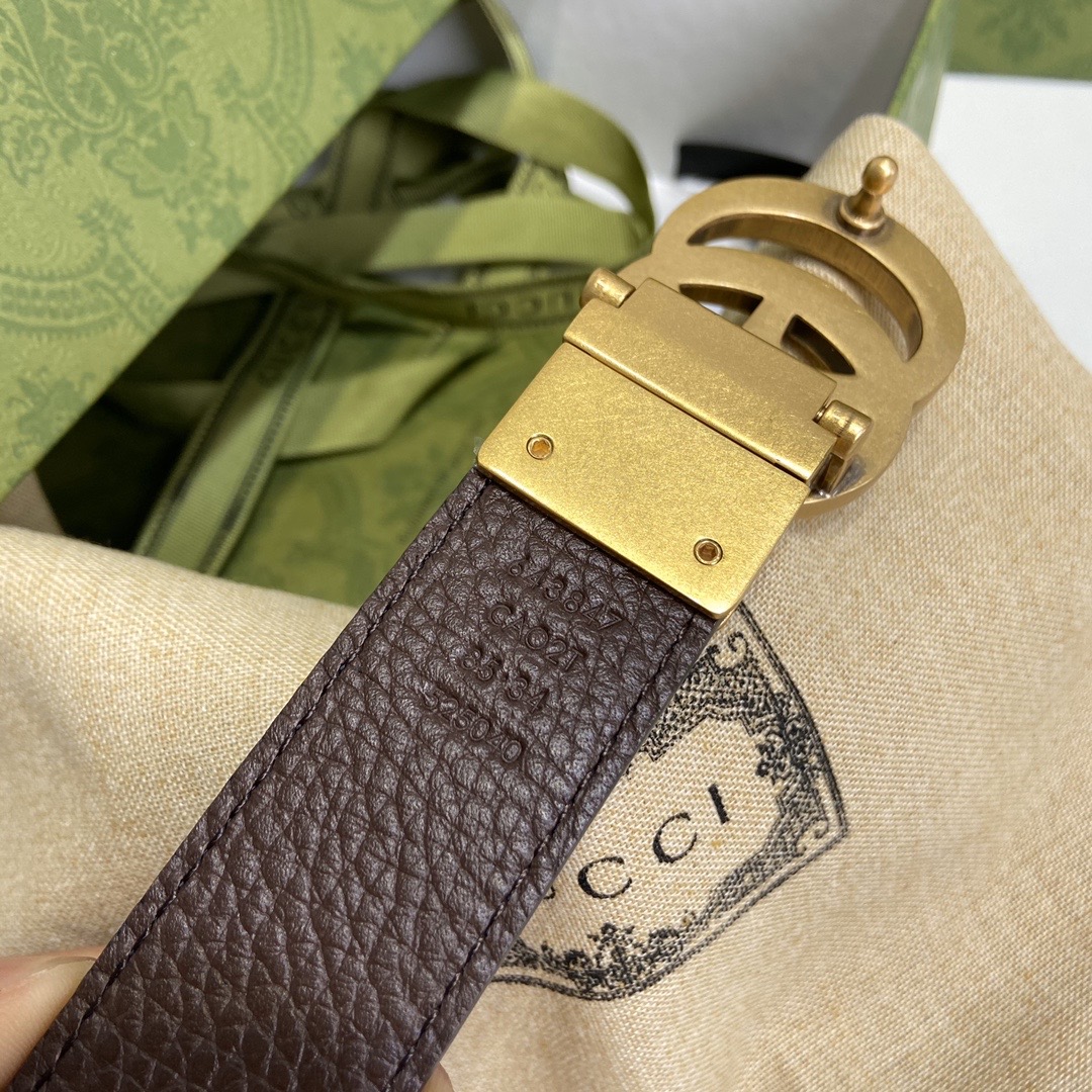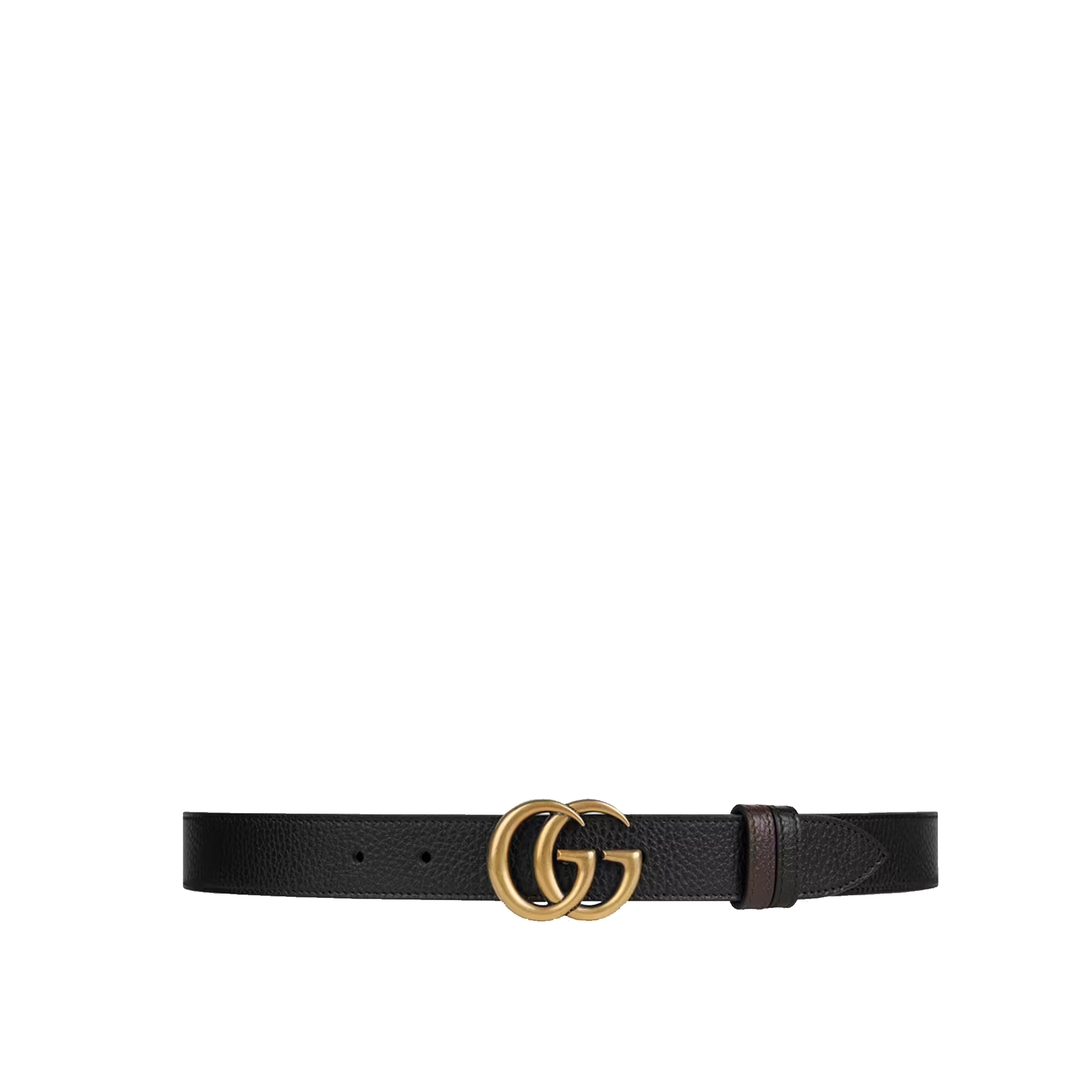 A reversible black and brown leather belt. Accessories continue to come to the forefront of Gucci’s collections, elevated by unexpected details and functions. The belt is completed by the now recognizable Double G.