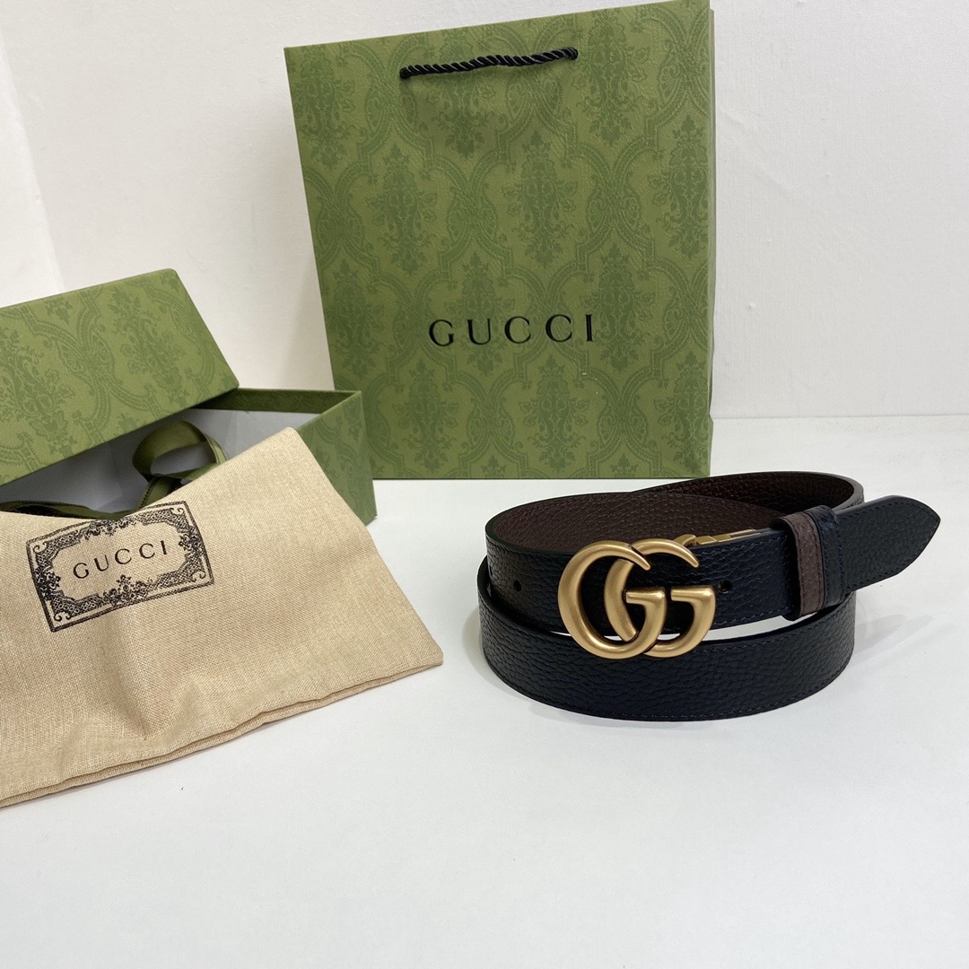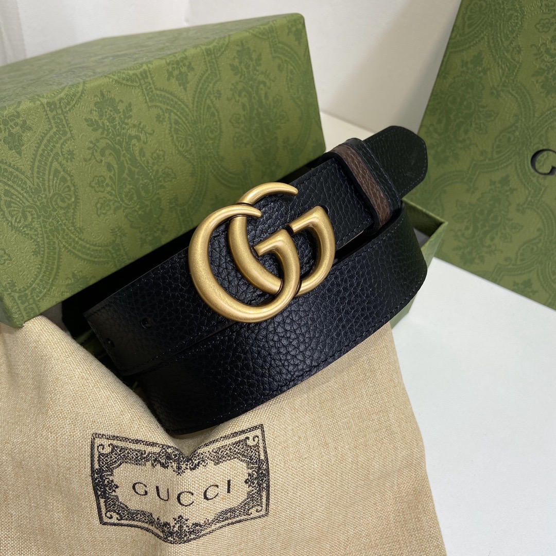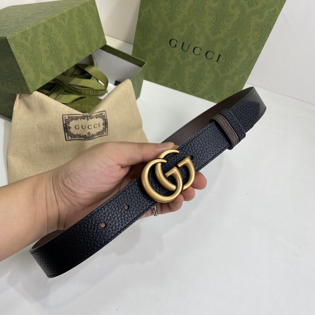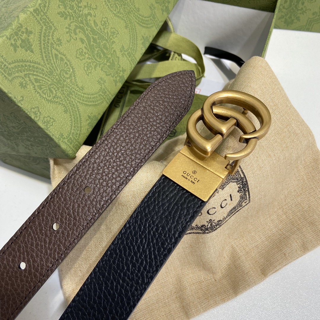 A reversible black and brown leather belt. Accessories continue to come to the forefront of Gucci’s collections, elevated by unexpected details and functions. The belt is completed by the now recognizable Double G.