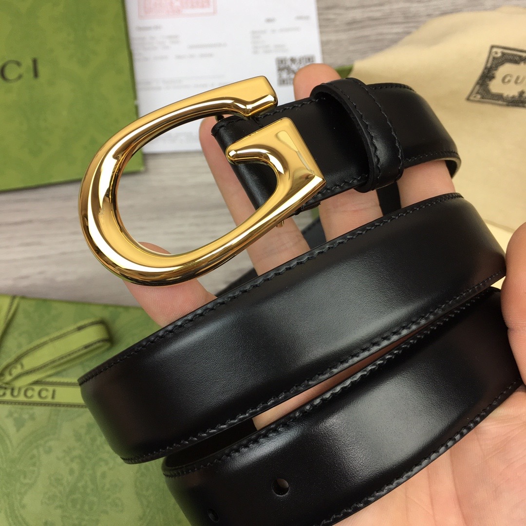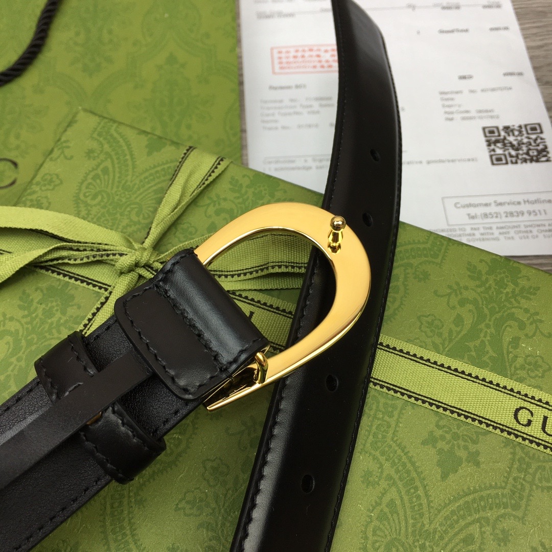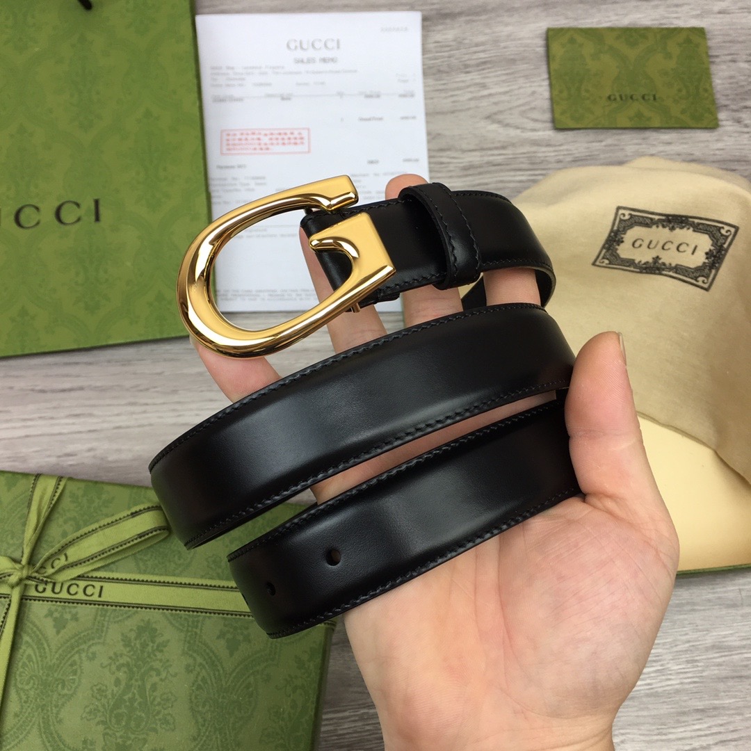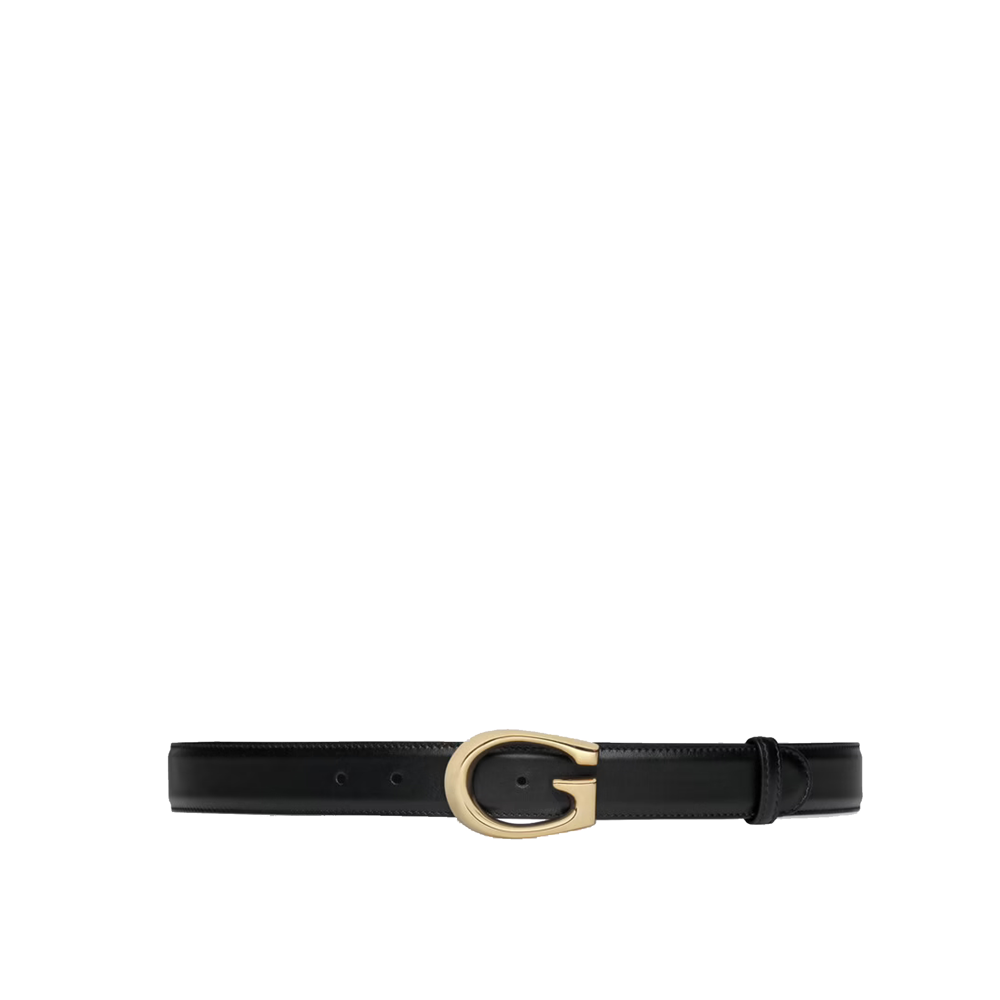 This thin leather belt is set with a G buckle with a shape reminiscent of Gucci designs from the seventies—a hallmark era of the House that continues to influence its narrative.