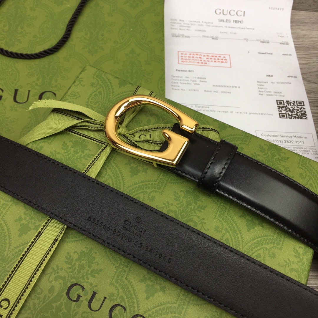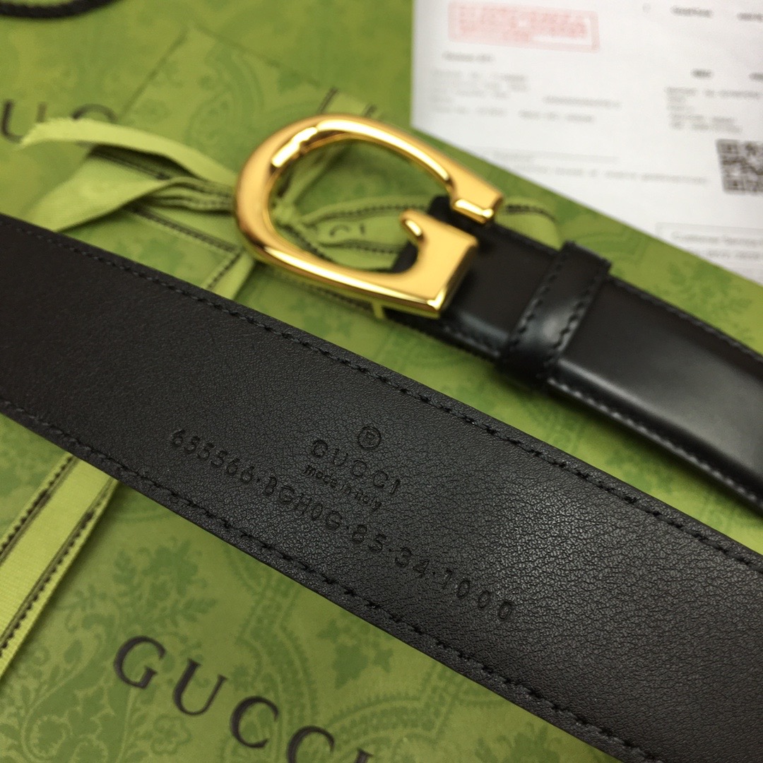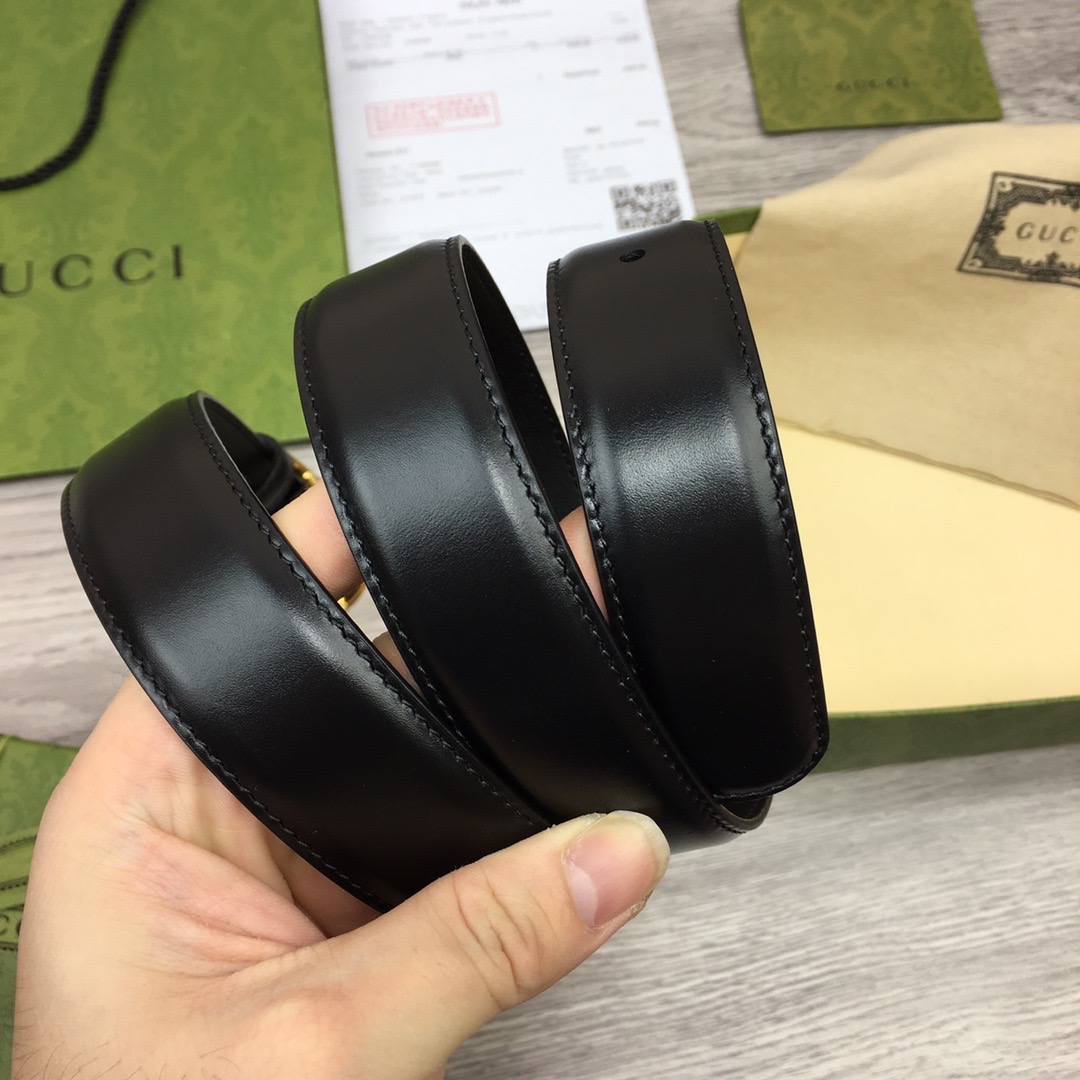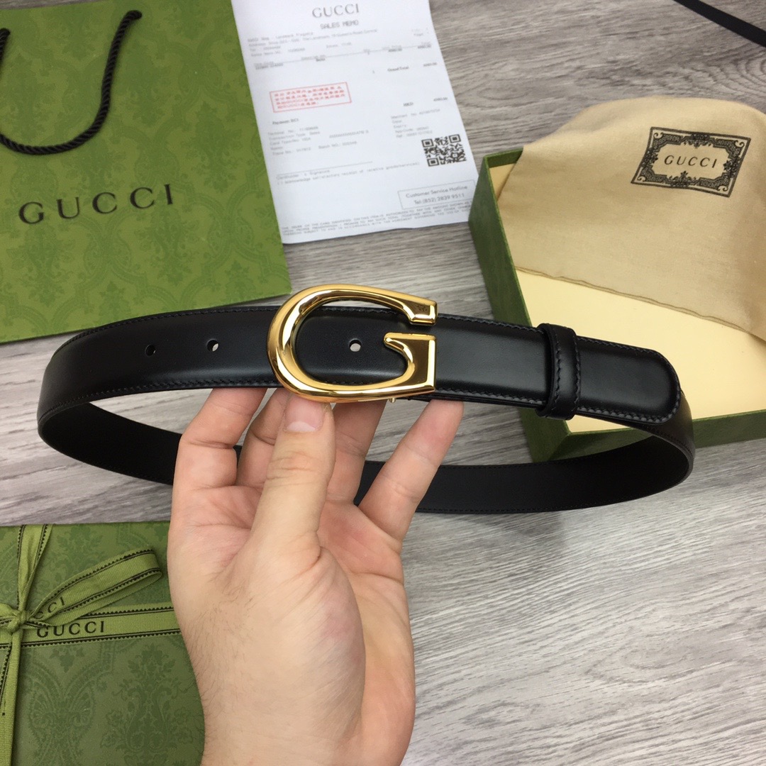 This thin leather belt is set with a G buckle with a shape reminiscent of Gucci designs from the seventies—a hallmark era of the House that continues to influence its narrative.