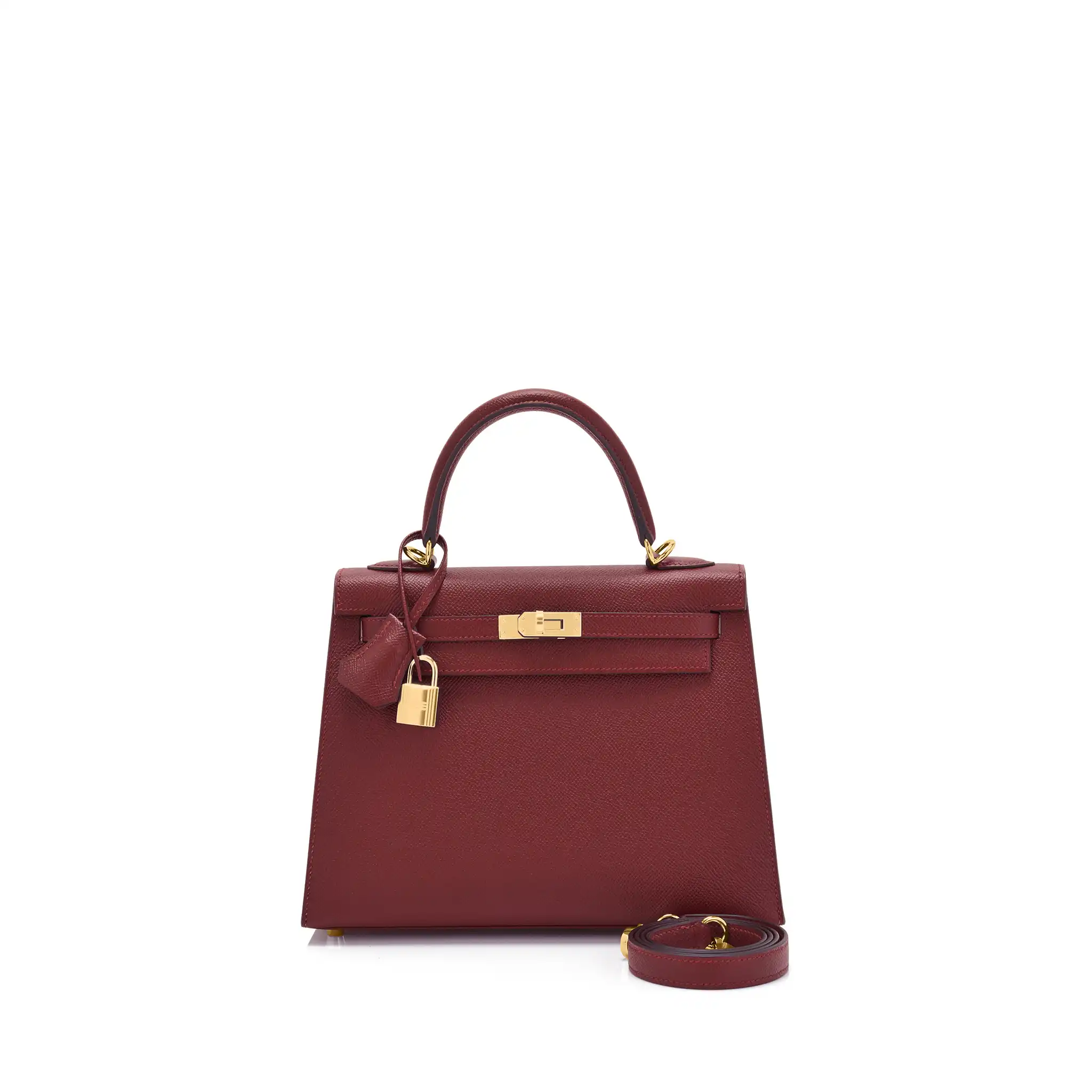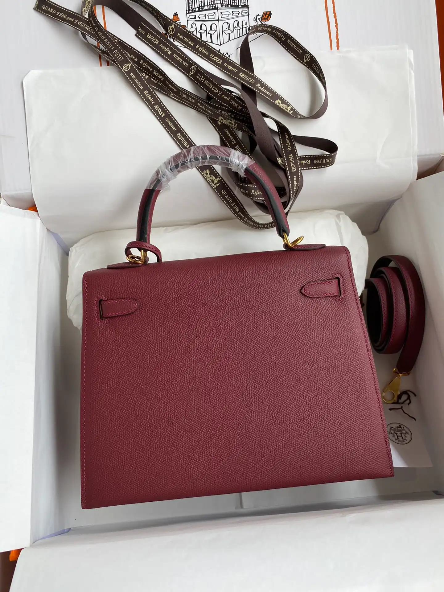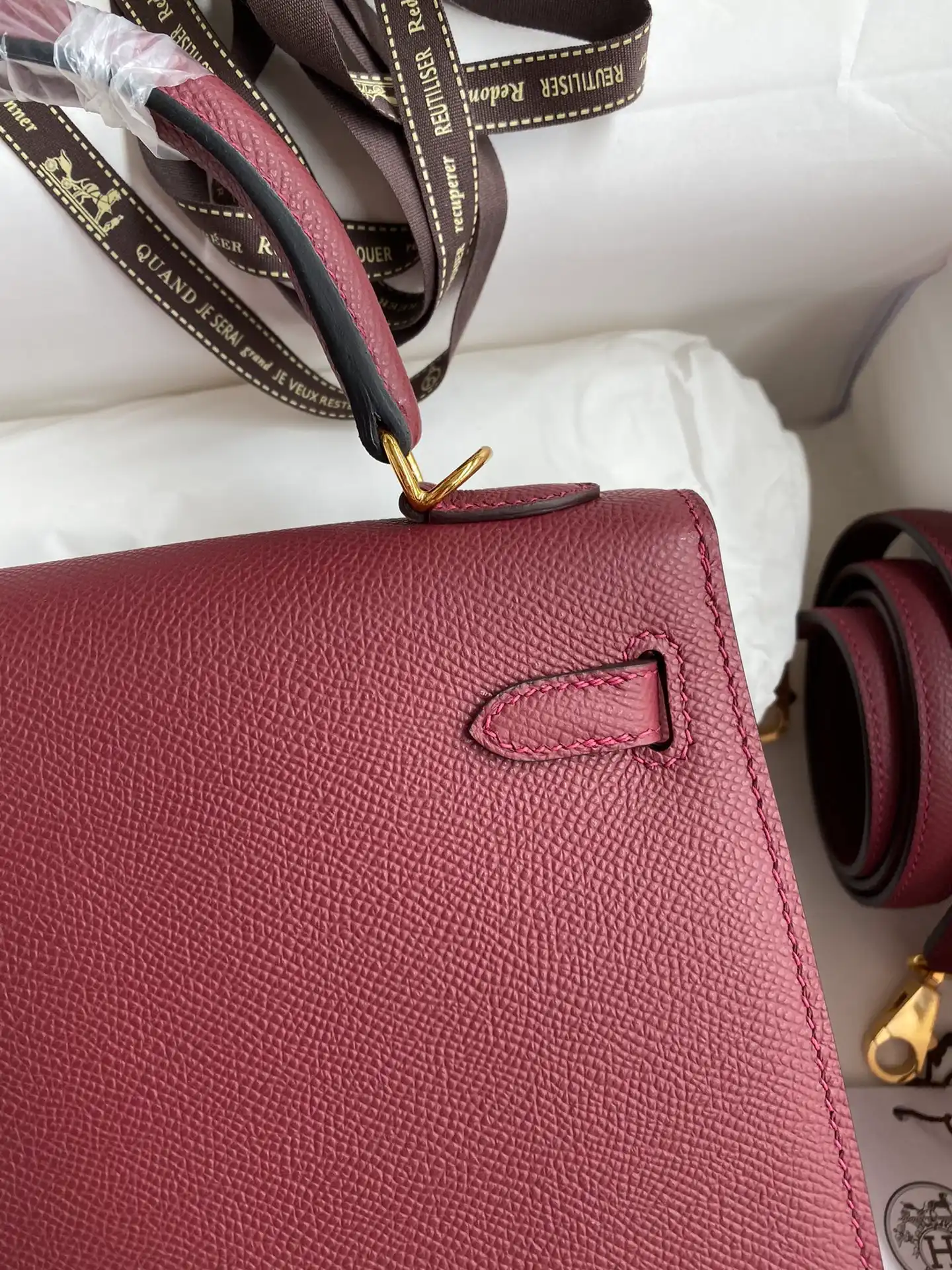 Hermes Kelly 25 Rouge H Epsom Gold Hardware Bordeaux Red