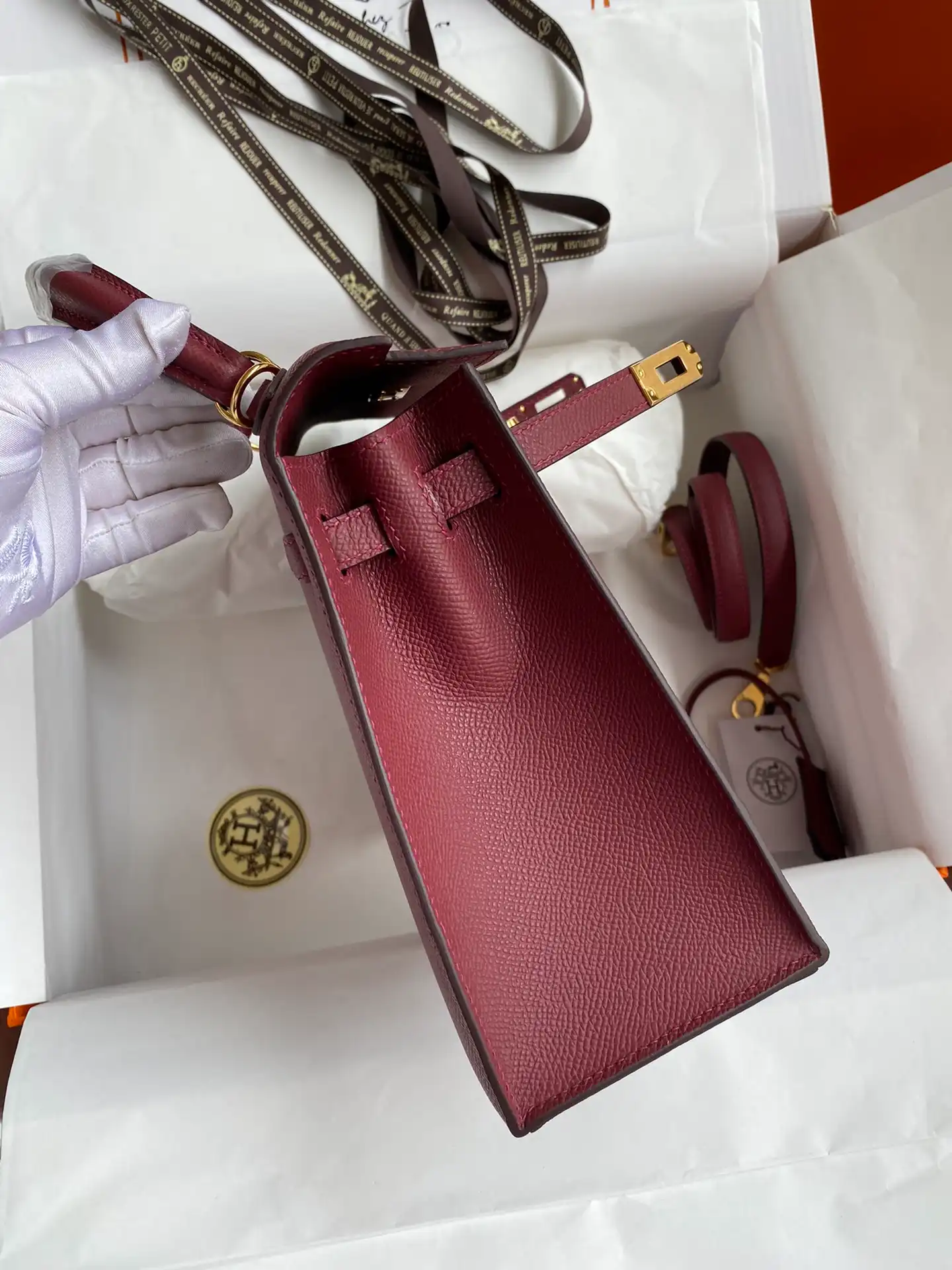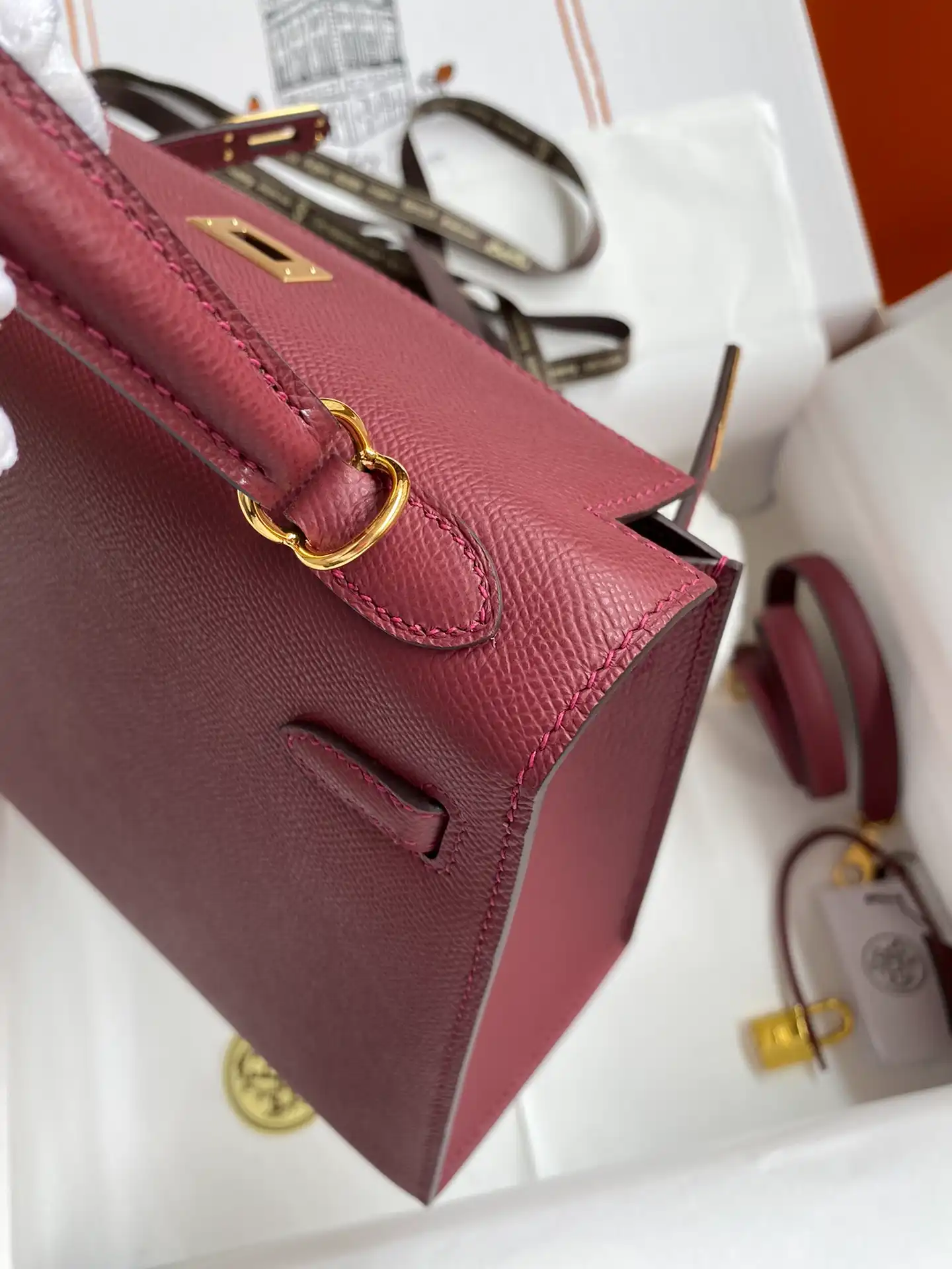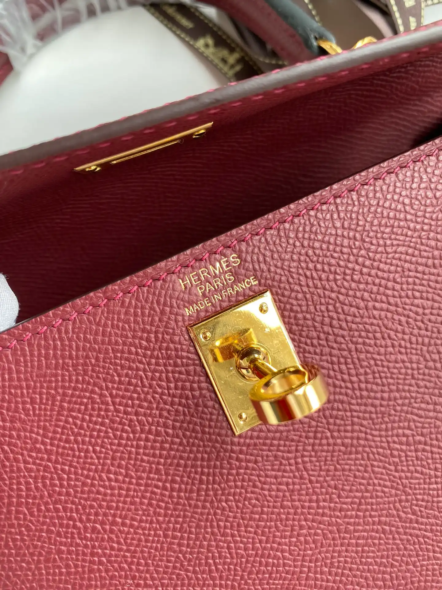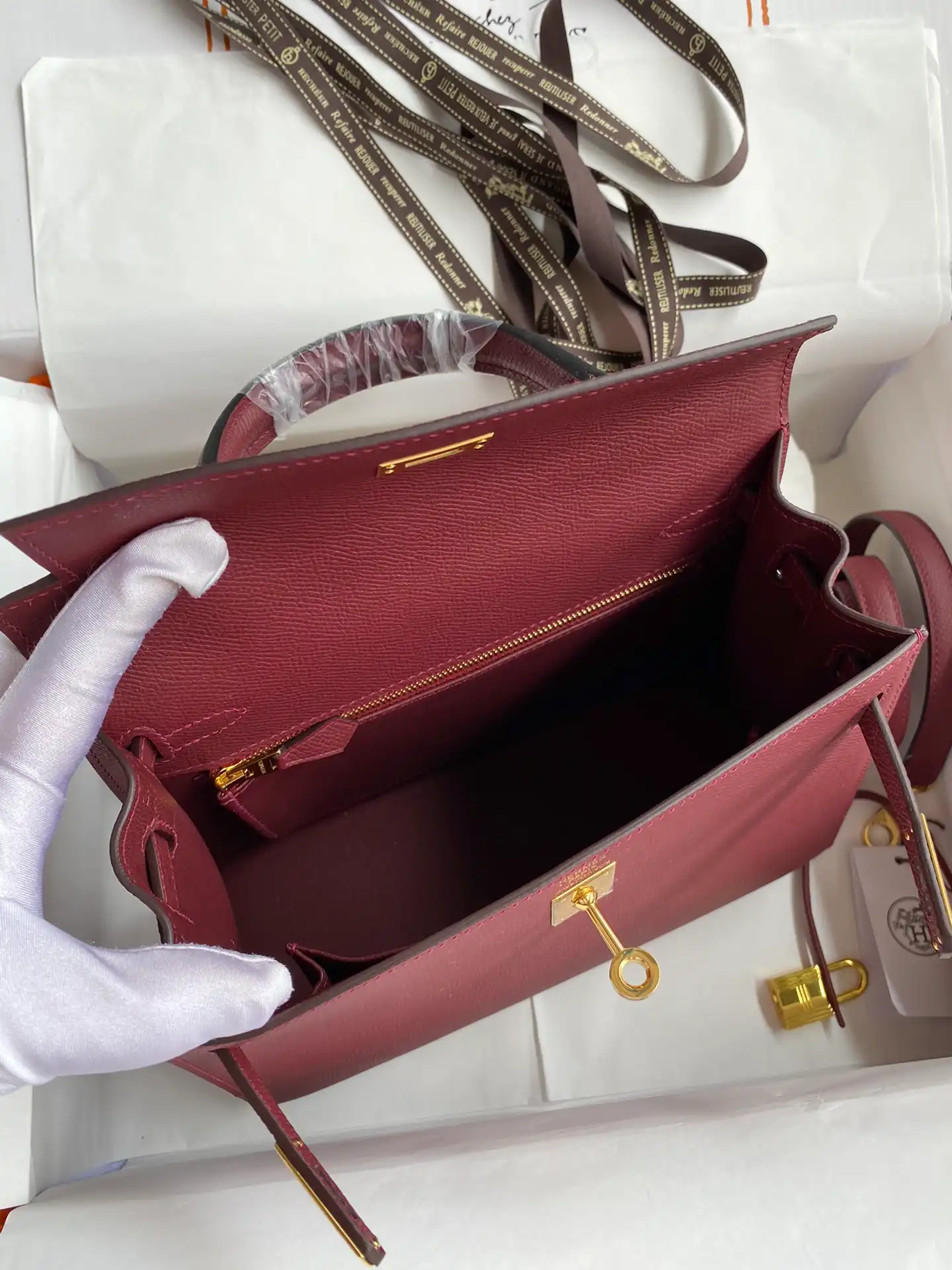 Hermes Kelly 25 Rouge H Epsom Gold Hardware Bordeaux Red