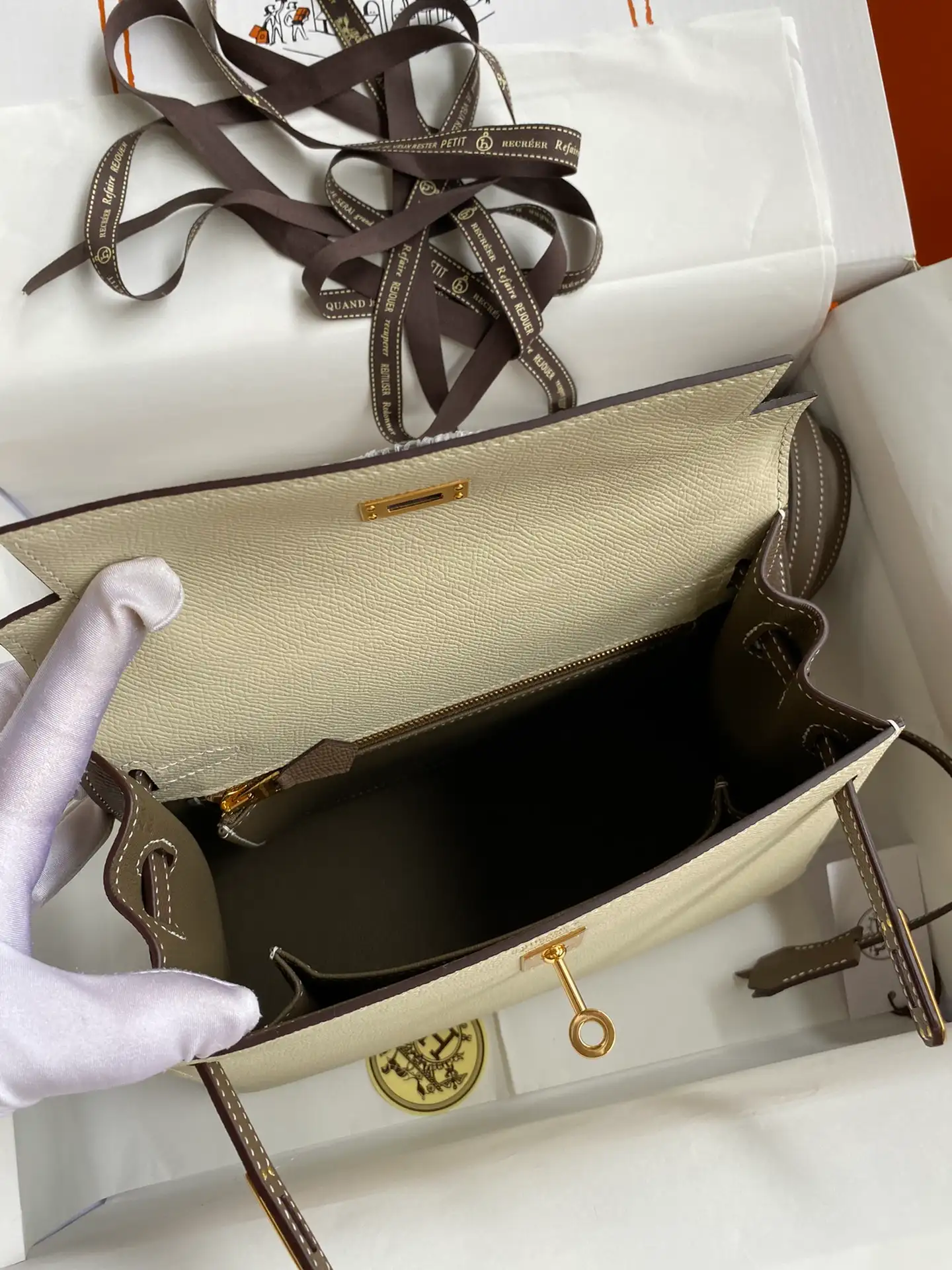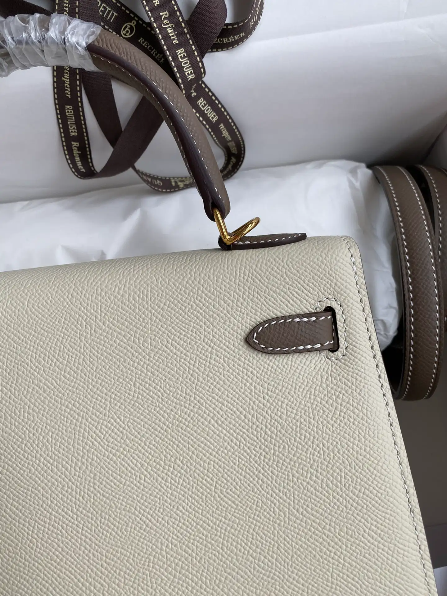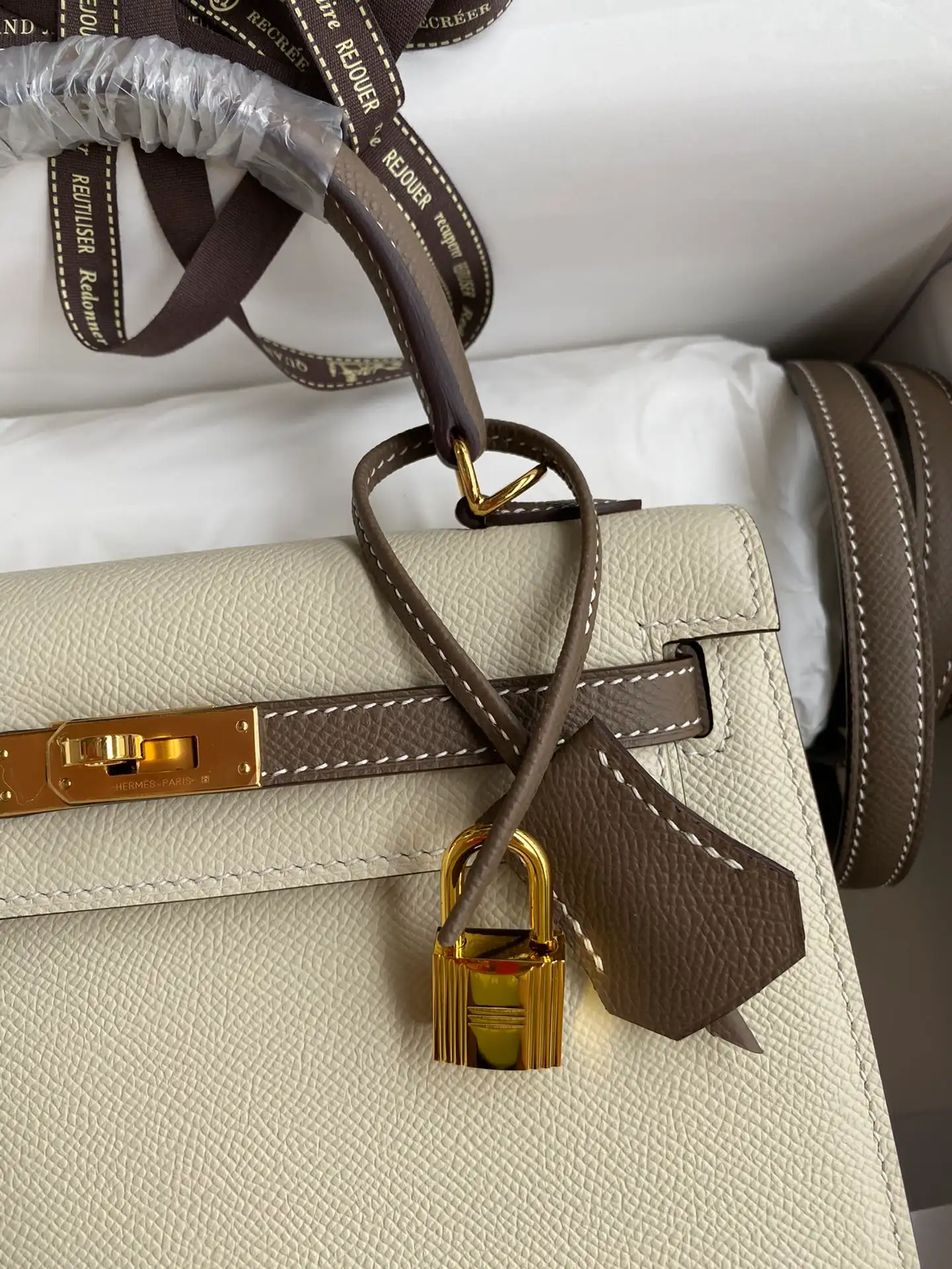 Hermes Kelly 25 Epsom Sellier Gold Hardware Craie Etoupe Grey