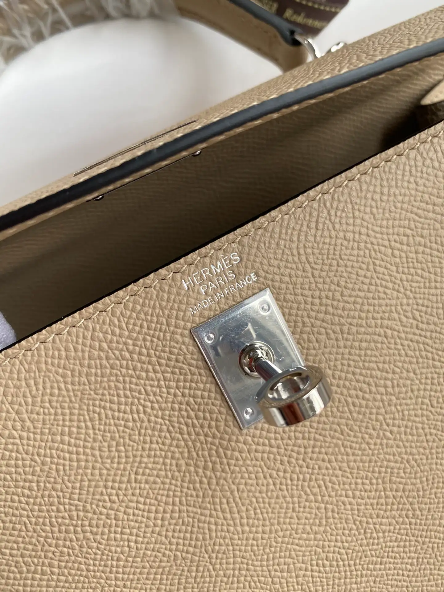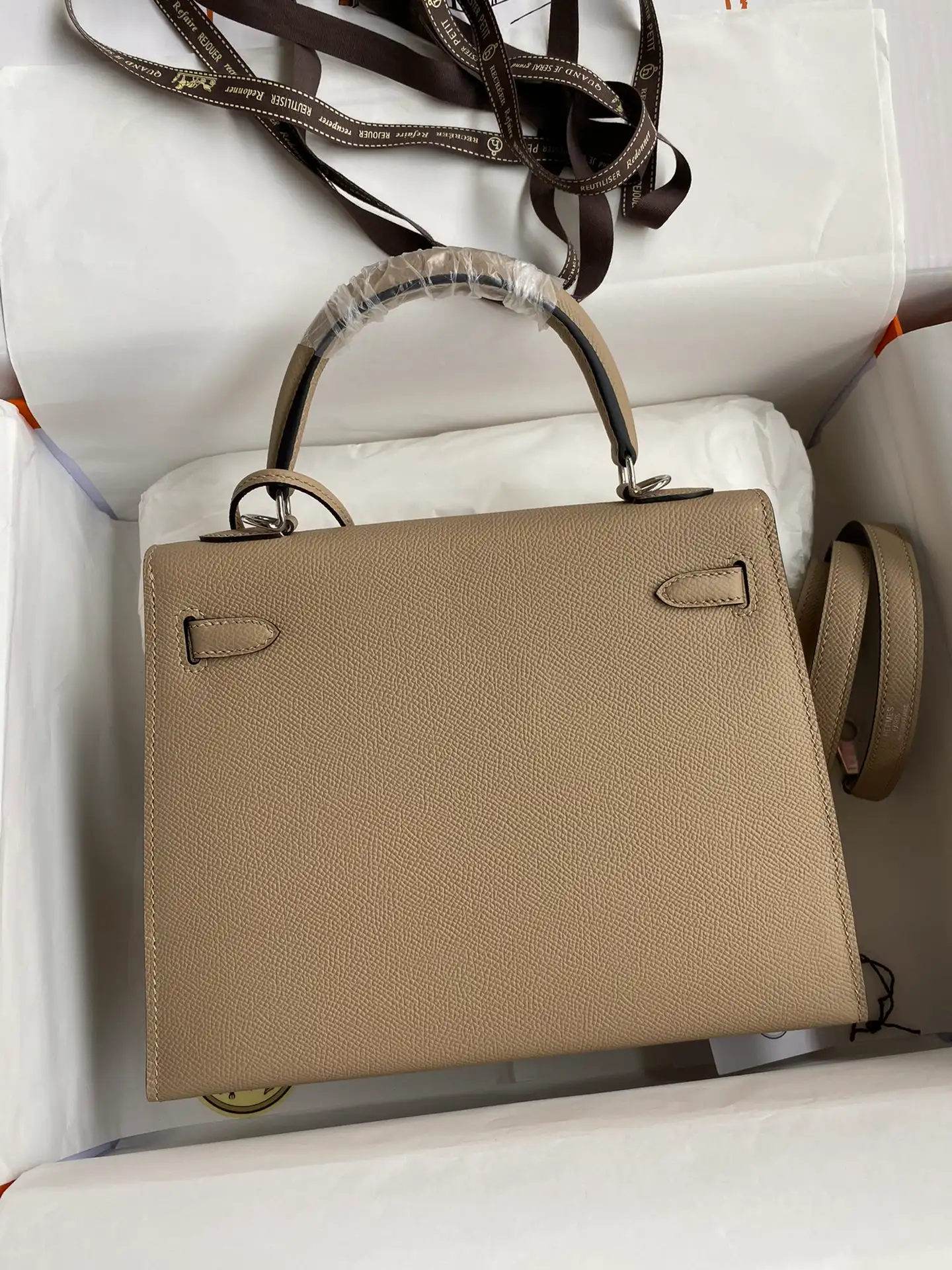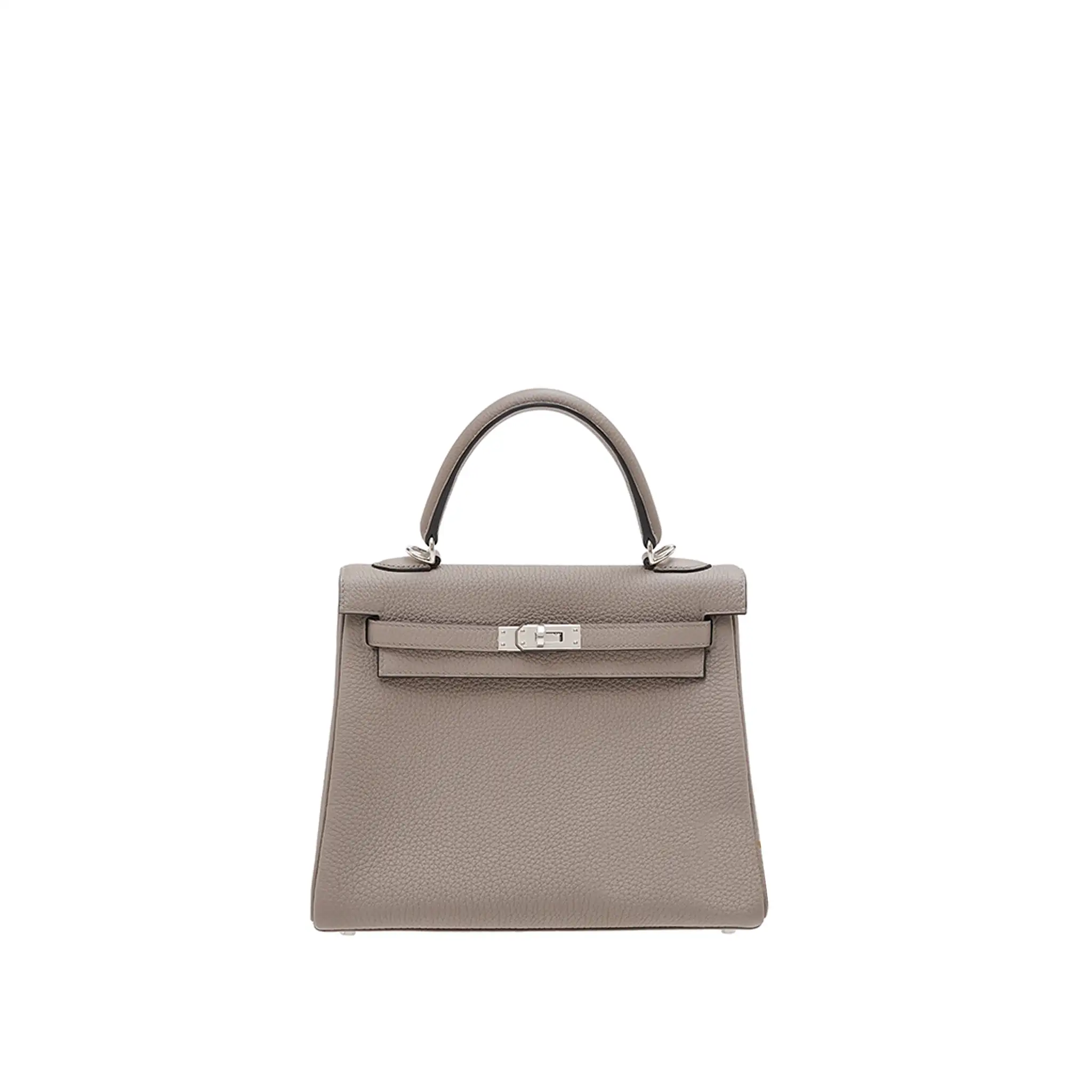 HERMES KELLY 25 EPSOM SELLIER LEATHER SILVER HARDWARE GRIS ASPHALTE