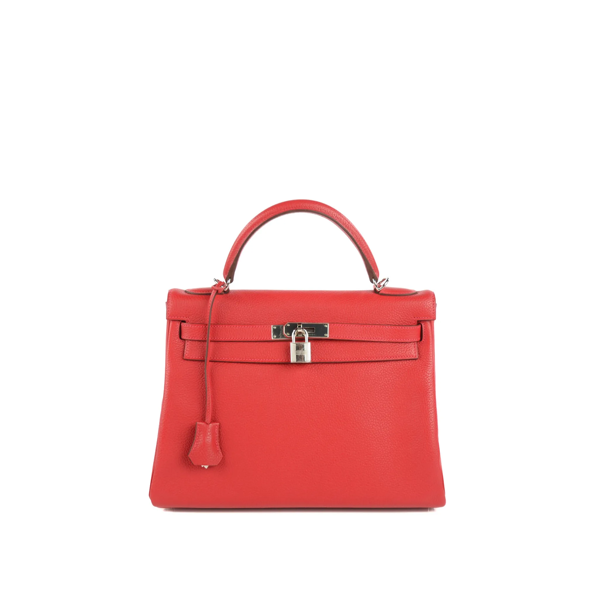 Hermes Kelly 28 Togo Retourne Leather Silver Hardware Rouge Casaque