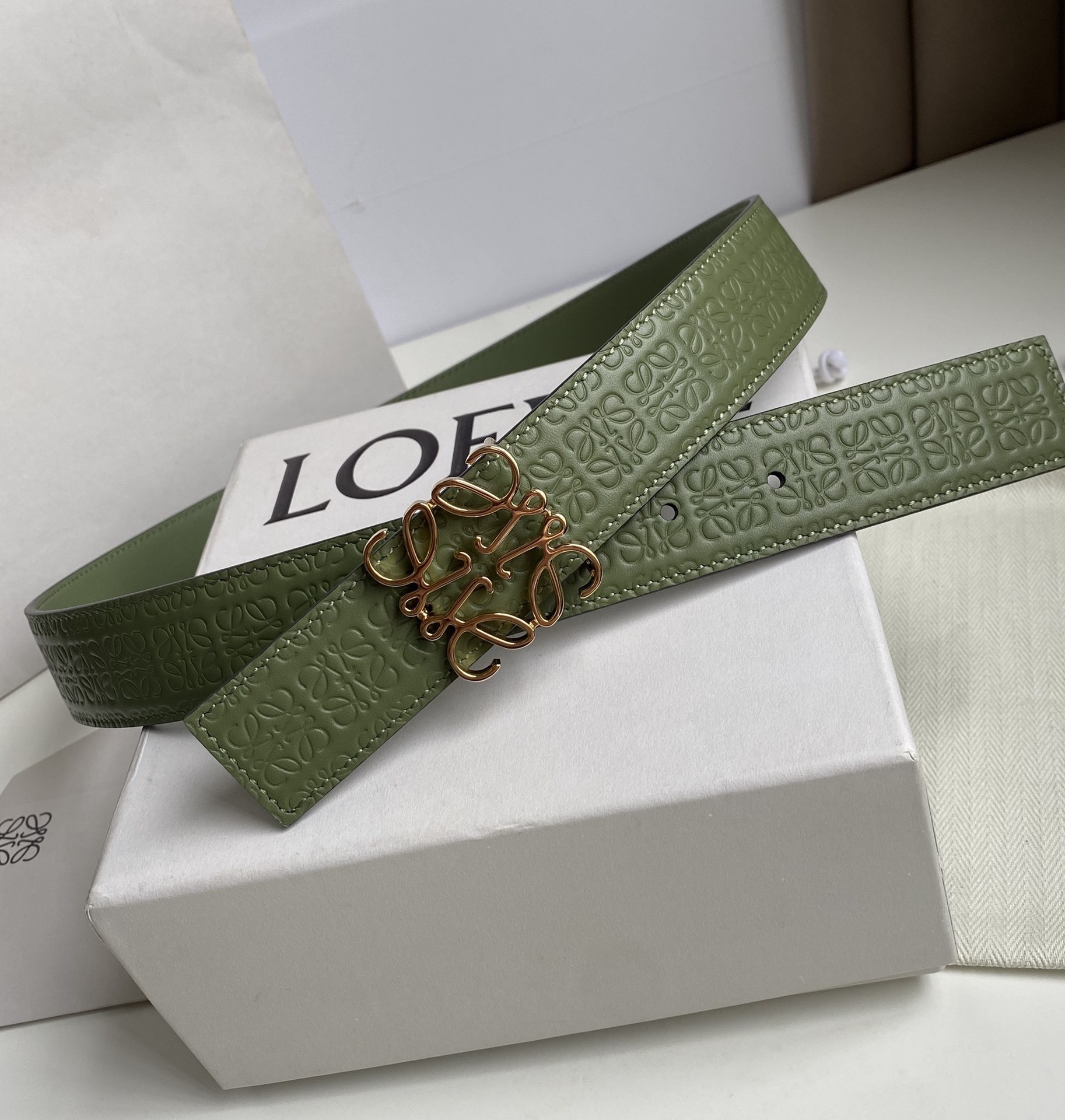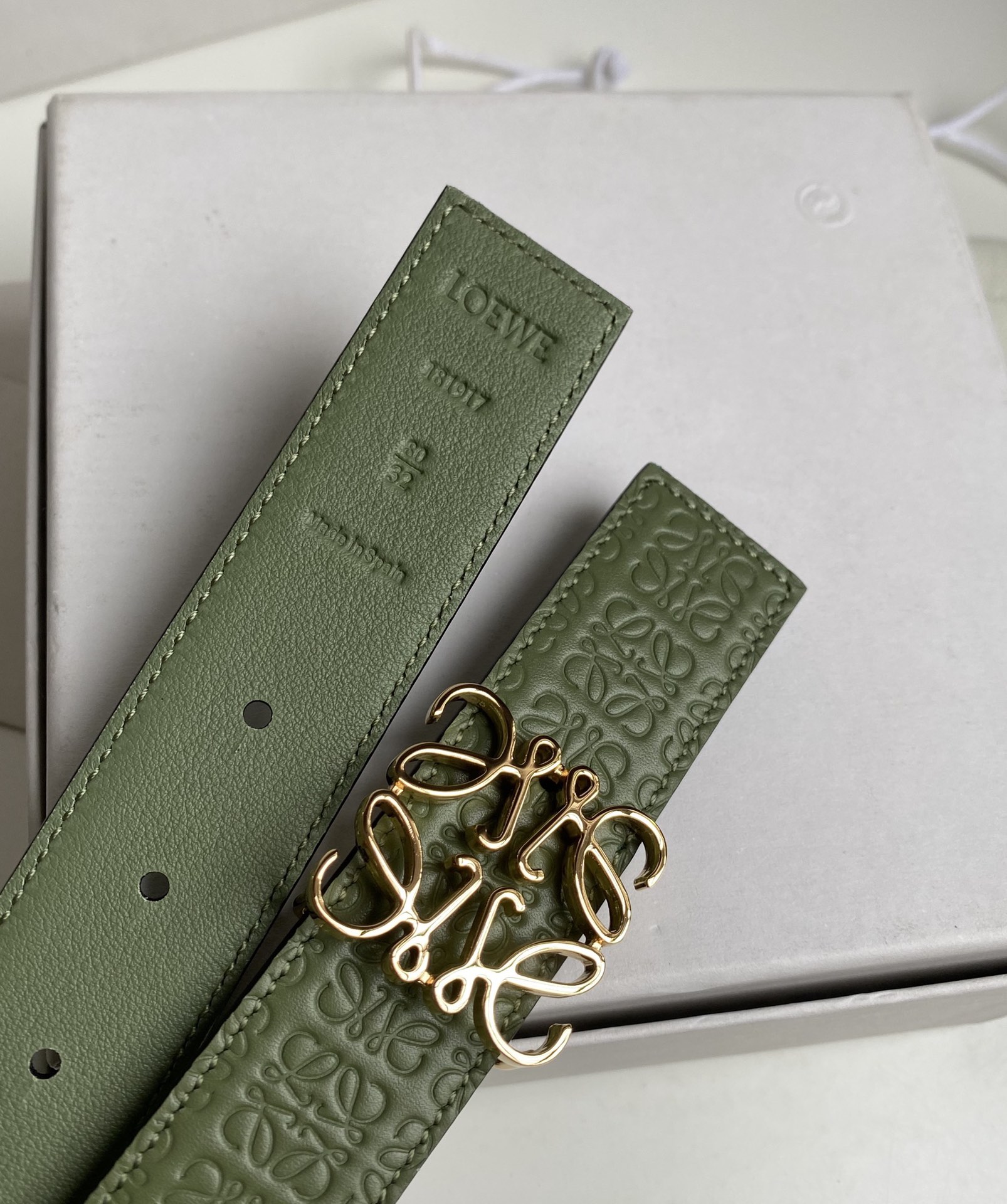Reversible belt in embossed silk calfskin with a repeat Anagram pattern and a LOEWE Anagram buckle.