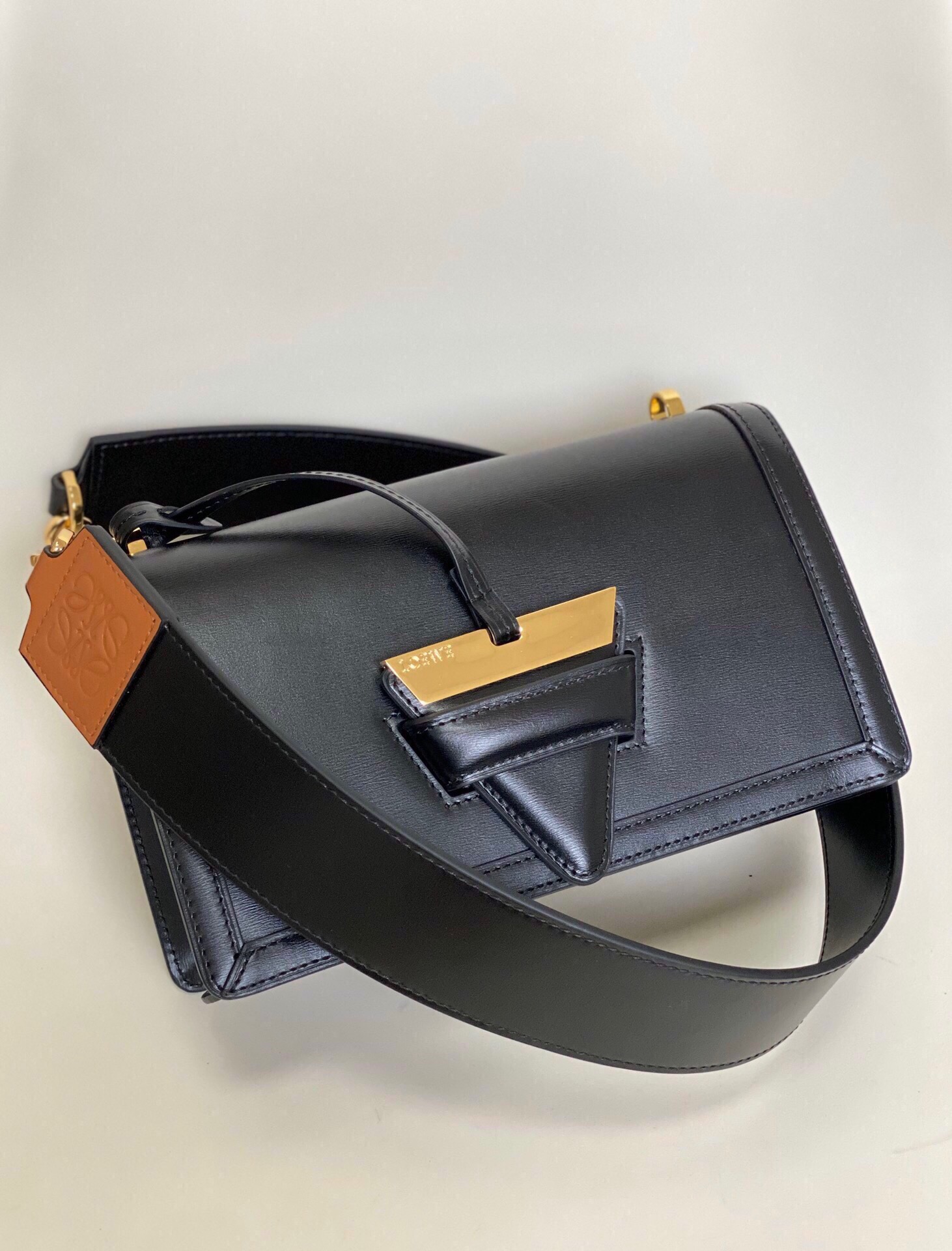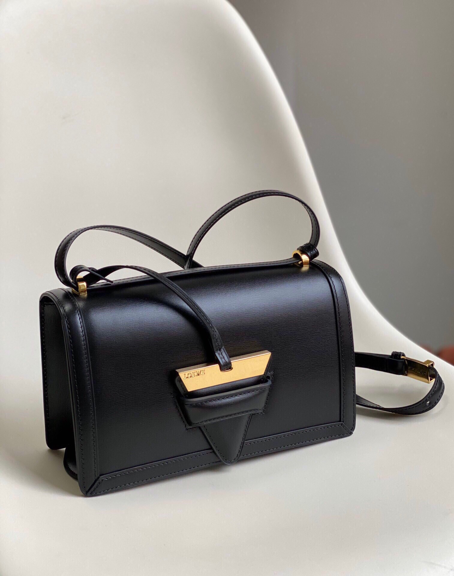 The Barcelona bag is defined by its distinctive triangular buckle closure. This version is crafted in silk calfskin.
