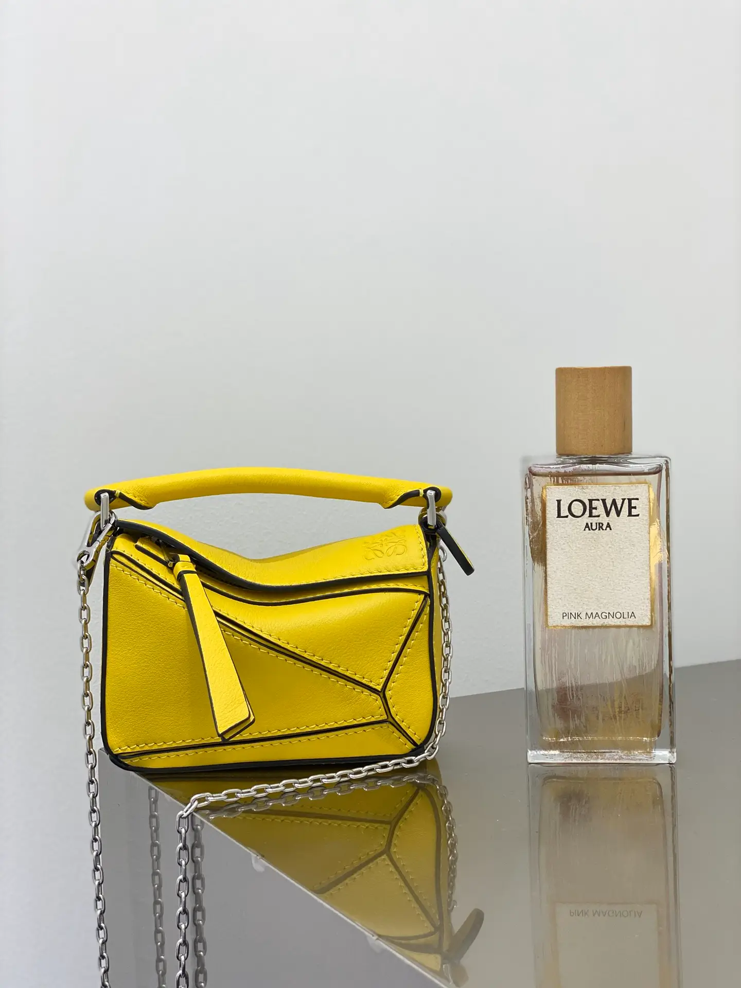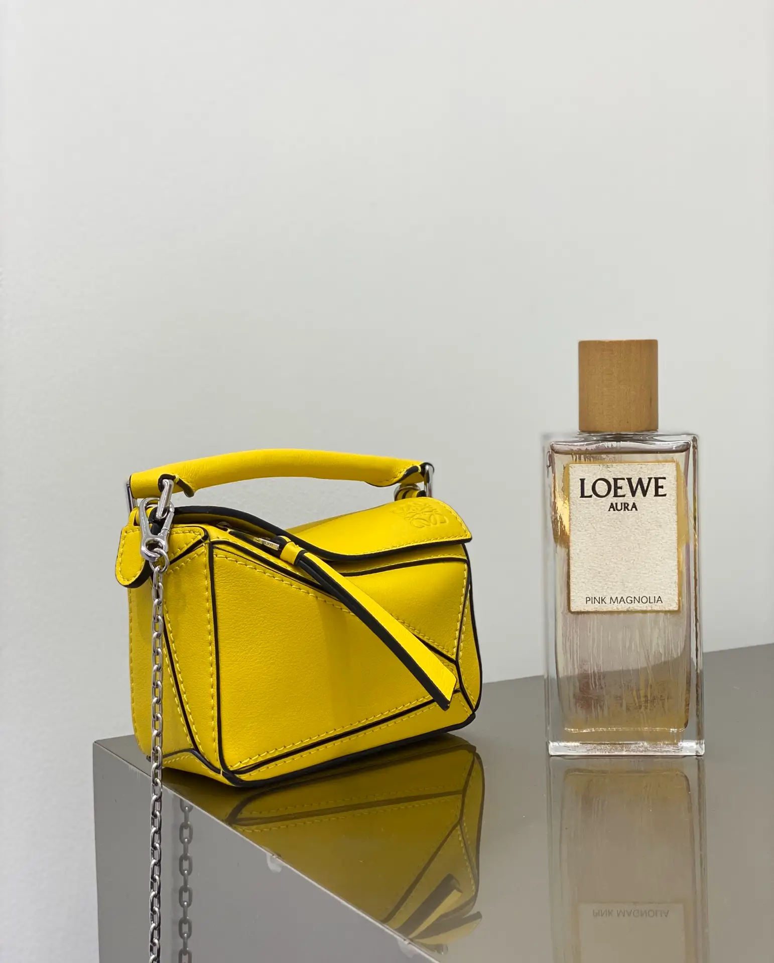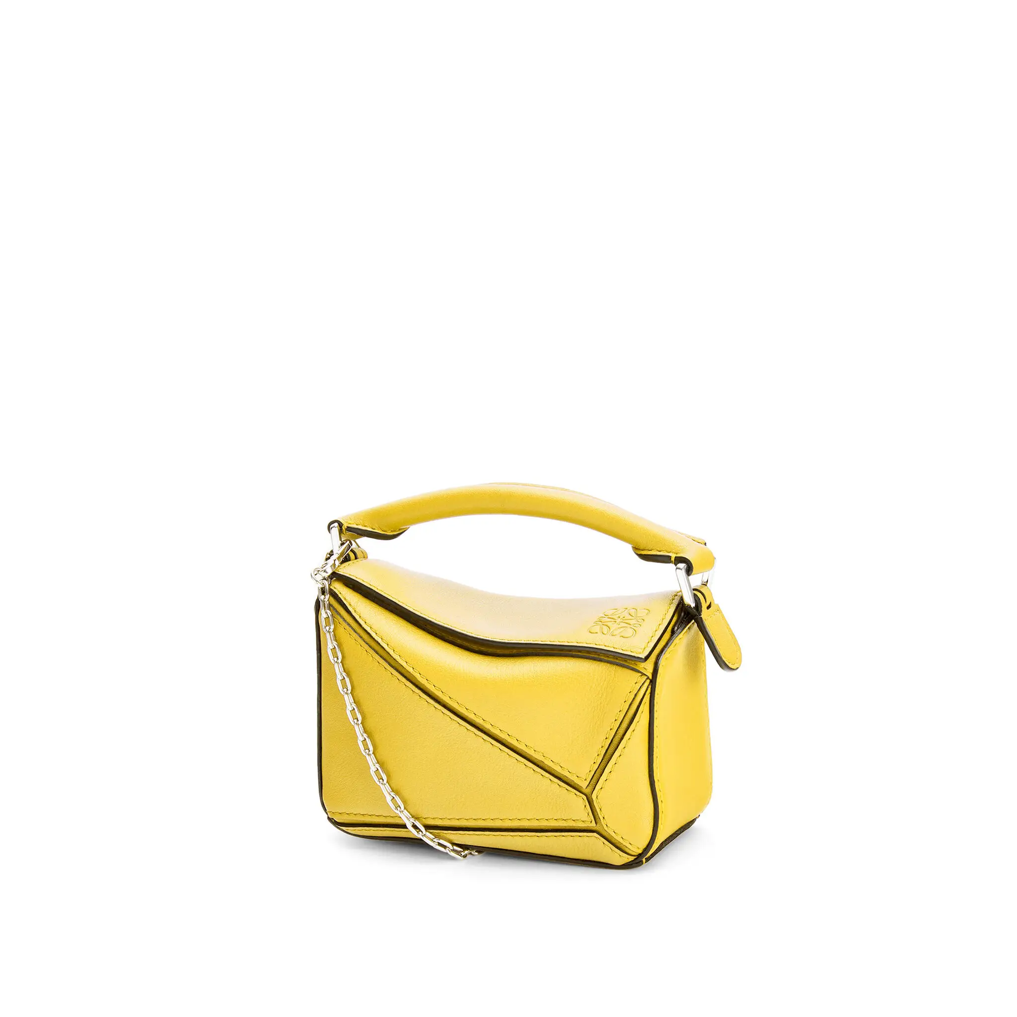 The Puzzle bag is the debut bag for LOEWE by Creative Director Jonathan Anderson. A cuboid shape and precise cutting technique create Puzzle’s distinctive geometric lines. This version is in a nano size in classic calfskin.