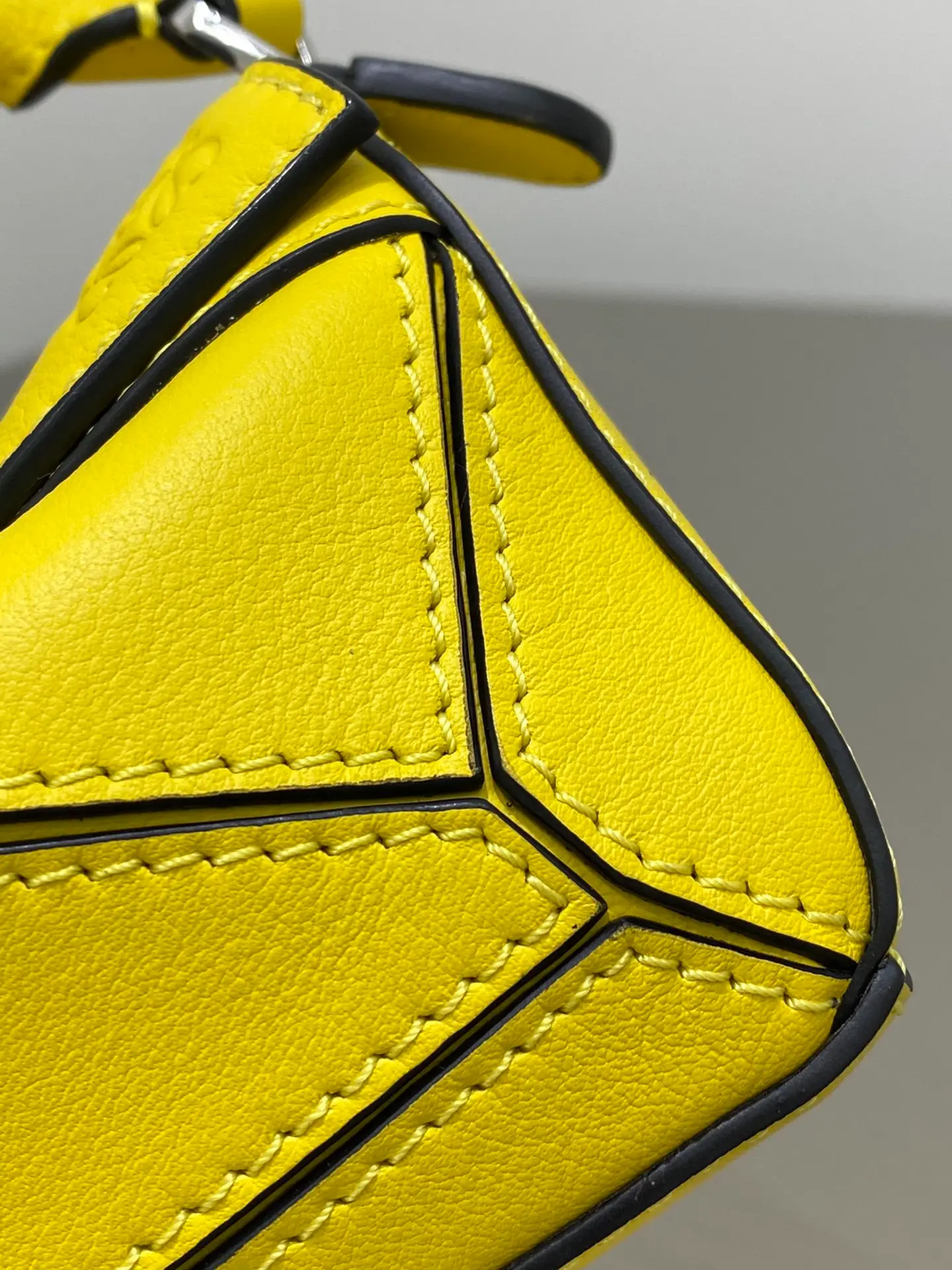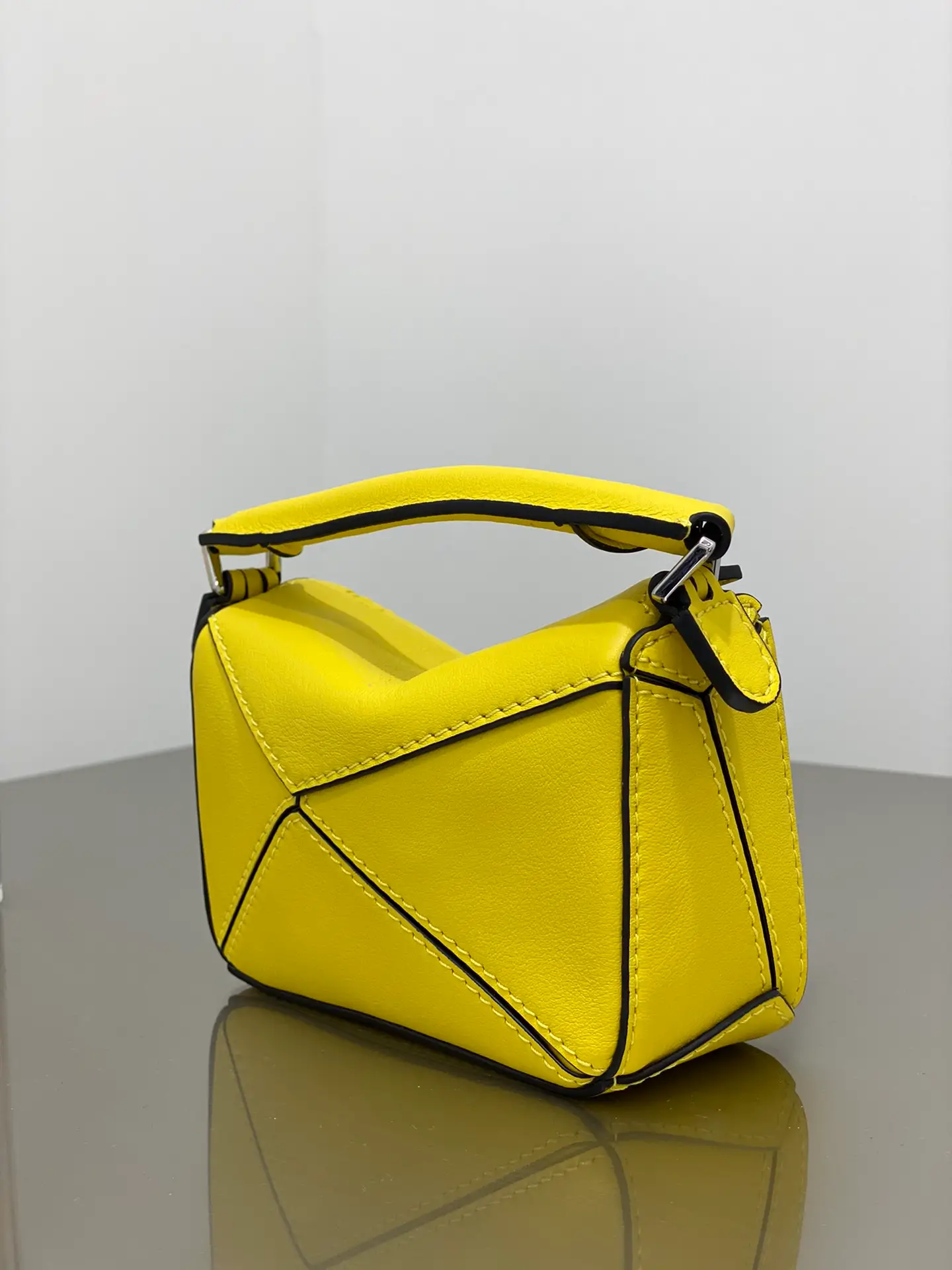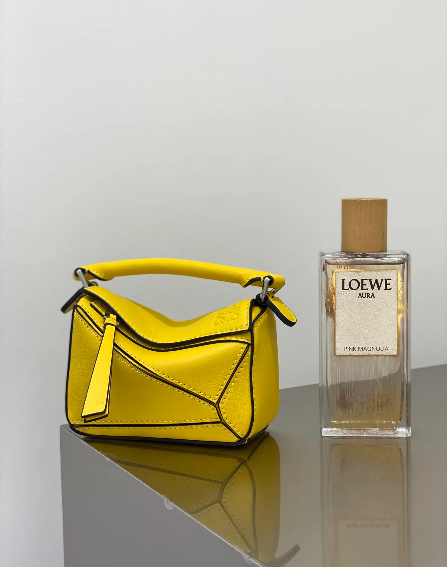 The Puzzle bag is the debut bag for LOEWE by Creative Director Jonathan Anderson. A cuboid shape and precise cutting technique create Puzzle’s distinctive geometric lines. This version is in a nano size in classic calfskin.