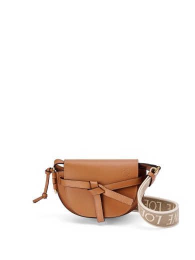 The Balloon bag has a rigid external base that cradles a supple internal sac. It is light in weight and comfortable to wear. This smaller version is in calfskin and a canvas jacquard with a repeat Anagram pattern.