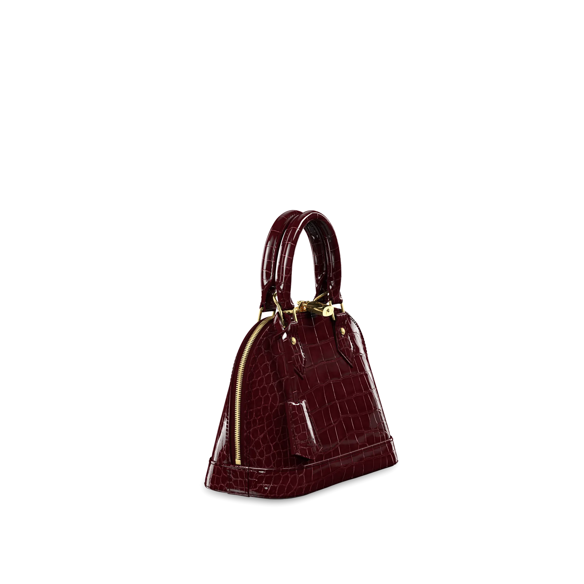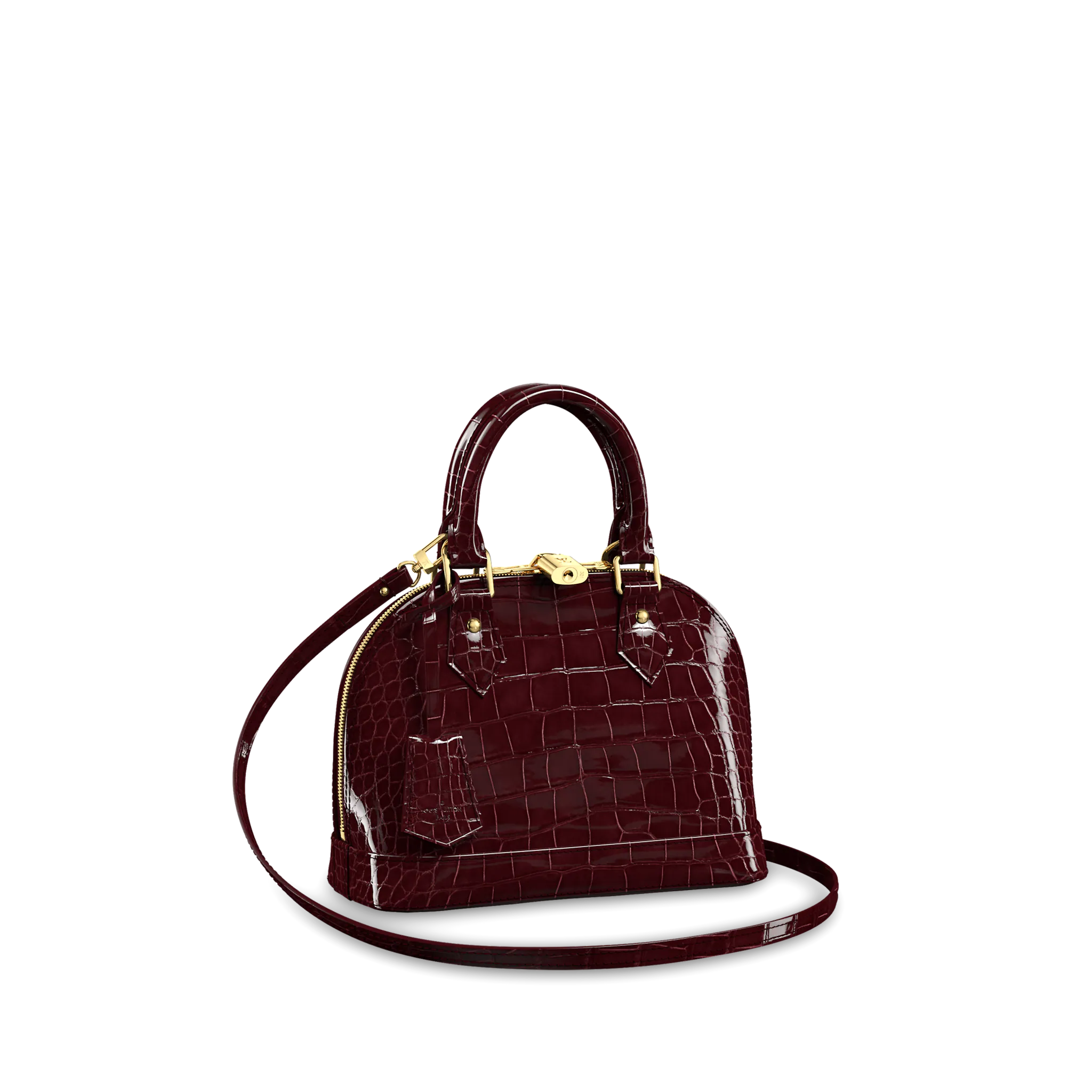 LOUIS VUITTON ALMA BB HANDBAG BRILLIANT ALLIGATOR LEATHER BORDEAUX BURGUNDY N90898