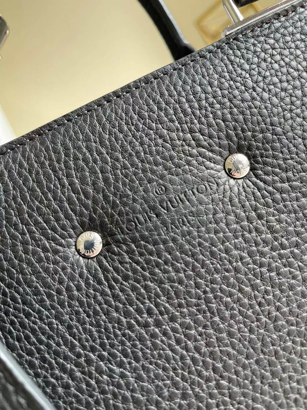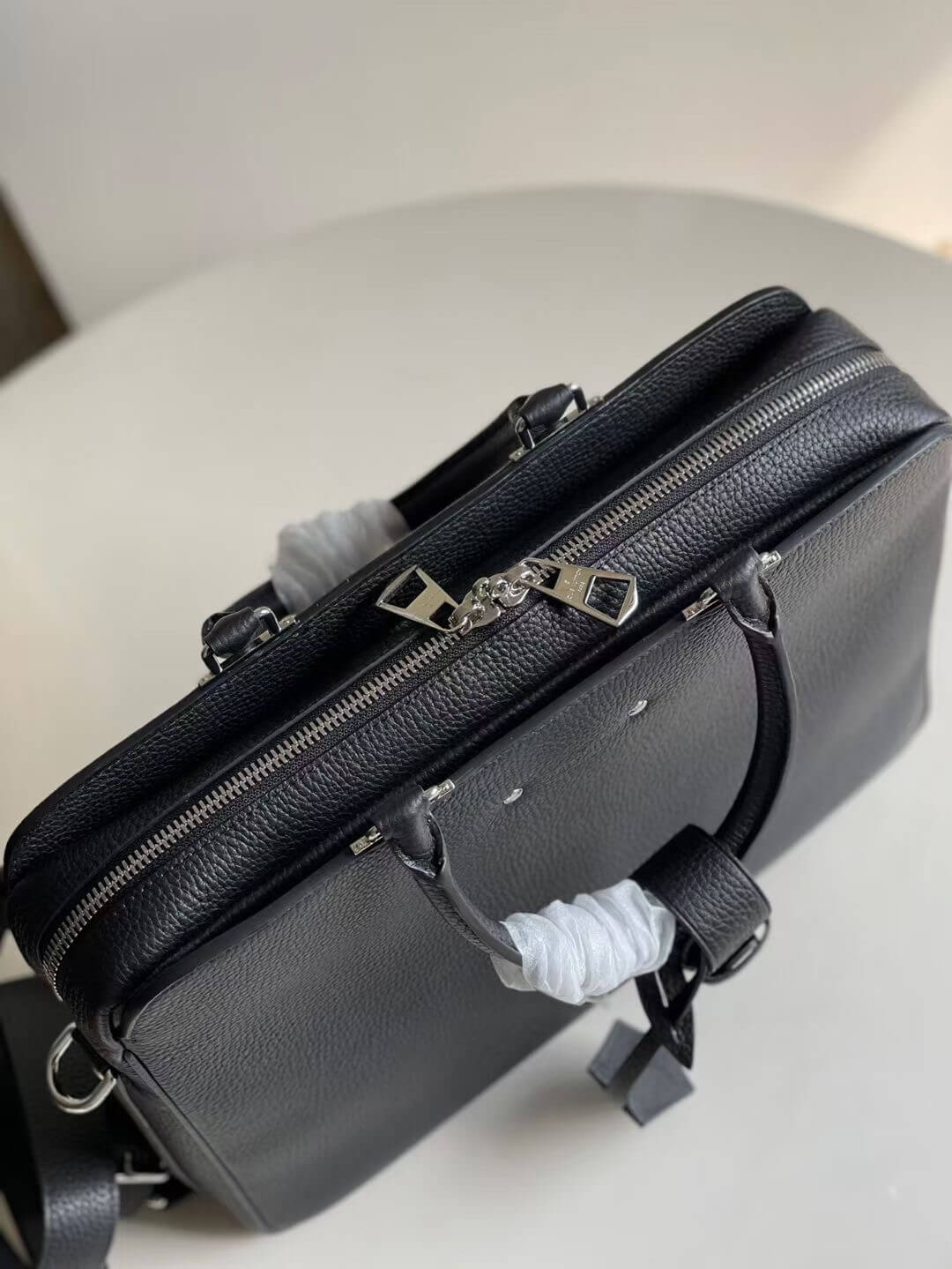 This hard-working briefcase in full-grain Taurillon leather is the perfect association of practicality and utmost elegance. It boasts multiple compartments, including a large zipped compartment in which you can put your laptop or important business documents and two open lateral pockets, providing easy access to personal belongings such as newspapers.