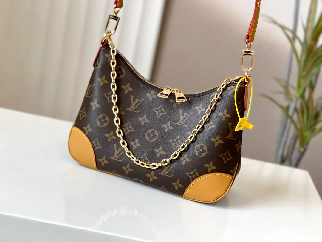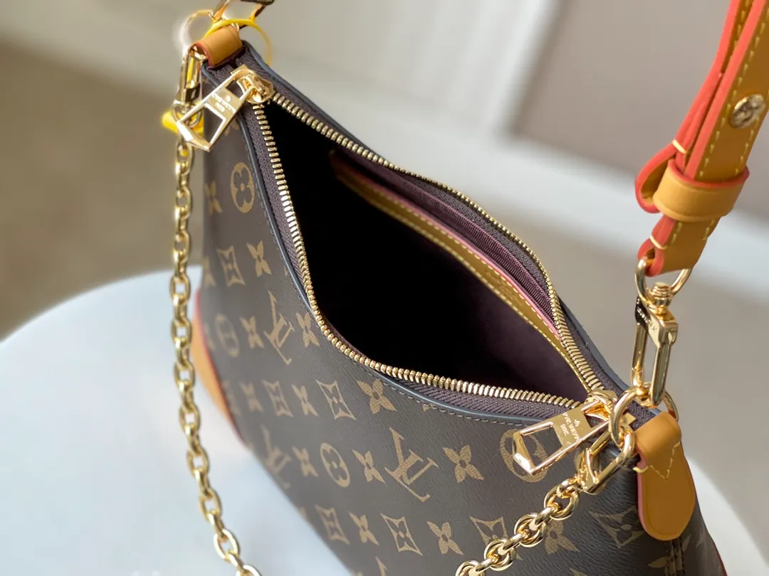 The versatile Boulogne handbag is made from classic Monogram canvas and features a removable strap, enabling cross-body, long-shoulder and short-shoulder carry. Without its strap, the Boulogne becomes a small chain bag or clutch for more formal occasions. It has a double-zip opening and an inside flat pocket large enough for an iPhone 12 Pro.