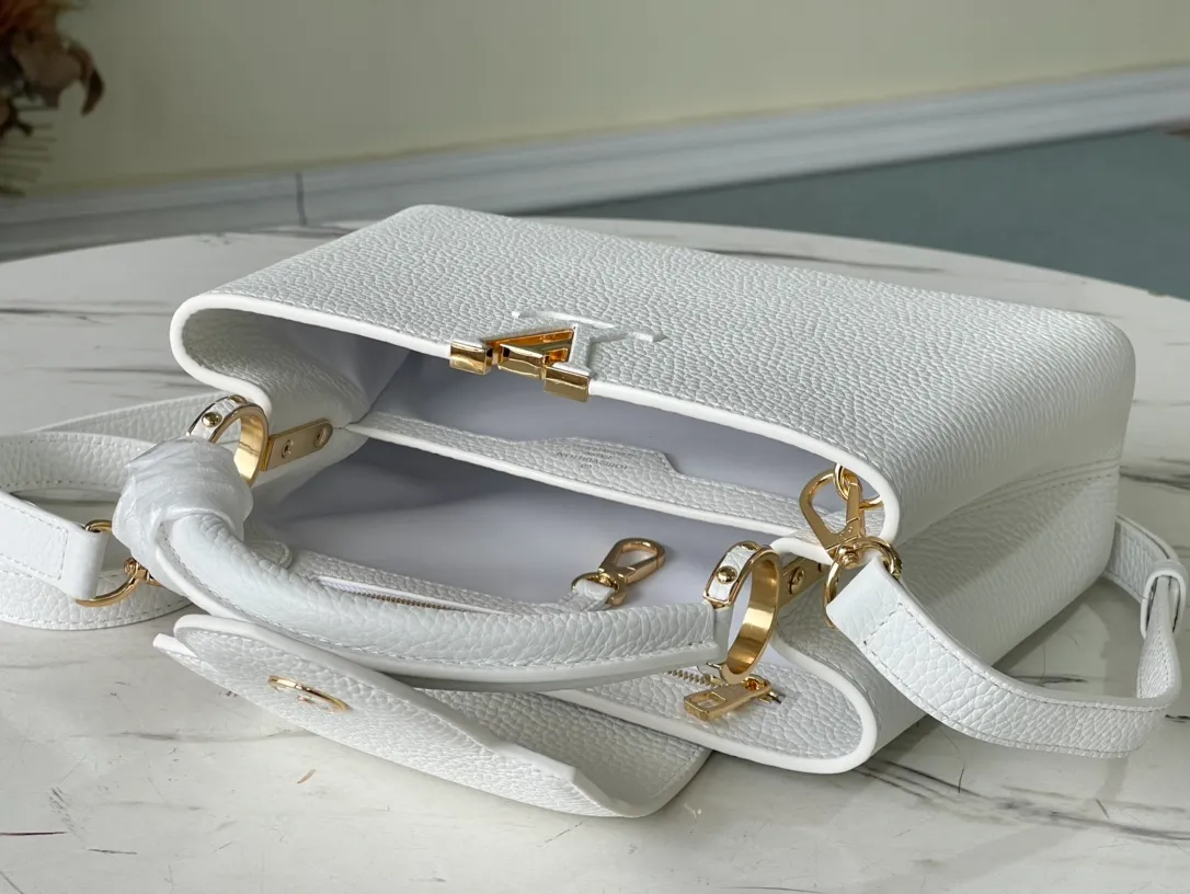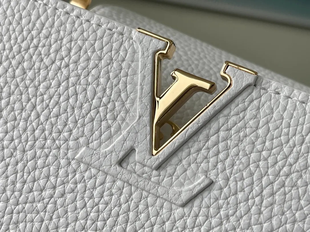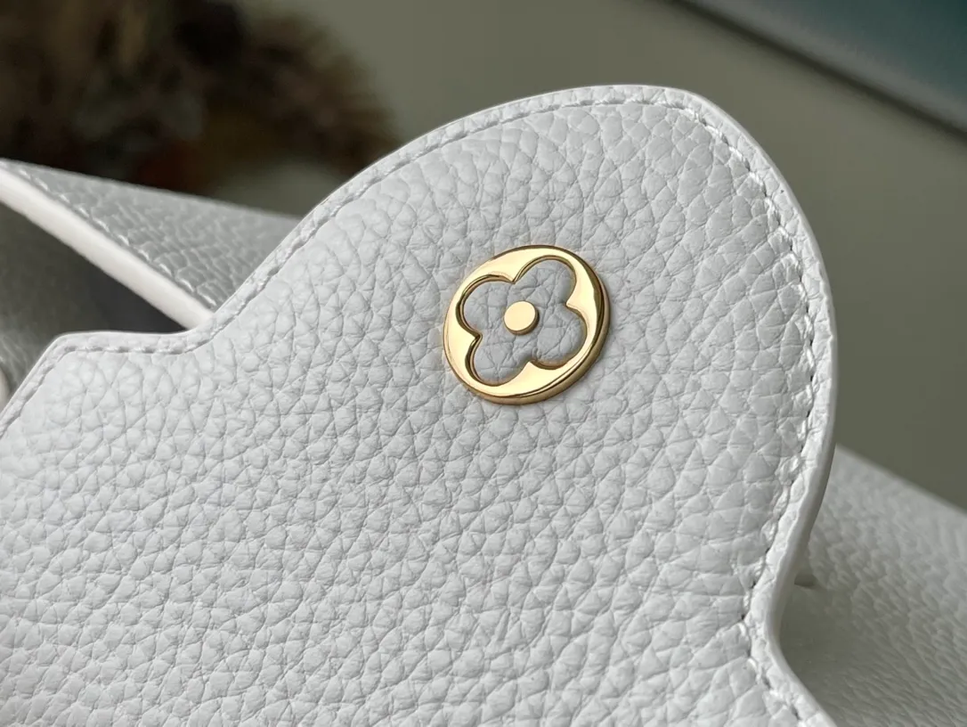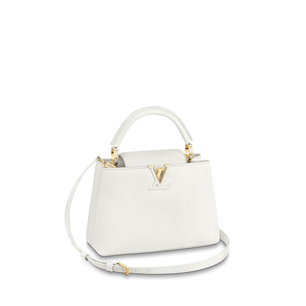 Fashioned from full-grain Taurillon leather, the now-classic Capucines BB handbag displays a host of House signatures: leather-wrapped LV Initials, jewel-like handle mounts inspired by historic trunks, and a distinctive flap with a Monogram Flower motif. Timelessly elegant, this charming model can be carried by hand or worn cross-body on its detachable strap. First launched in 2013, the Capucines is named for the Parisian street where Louis Vuitton first opened shop, in 1854.