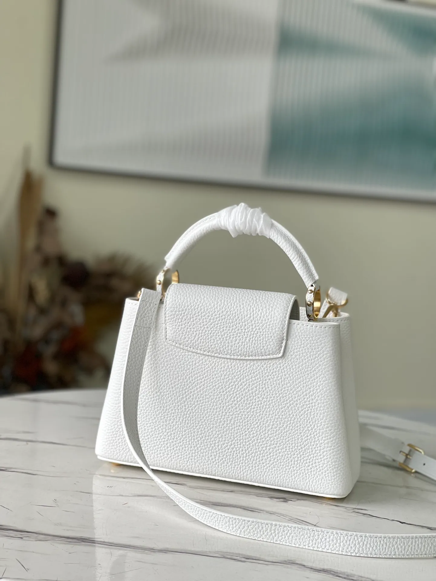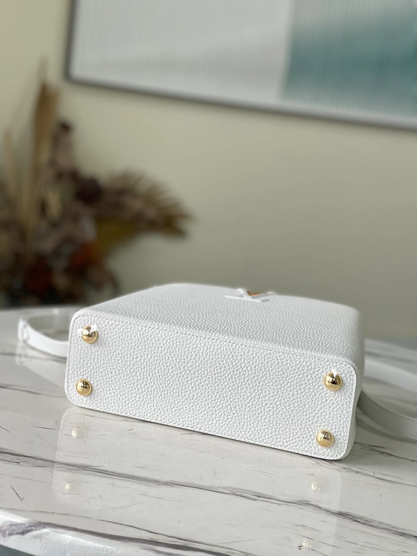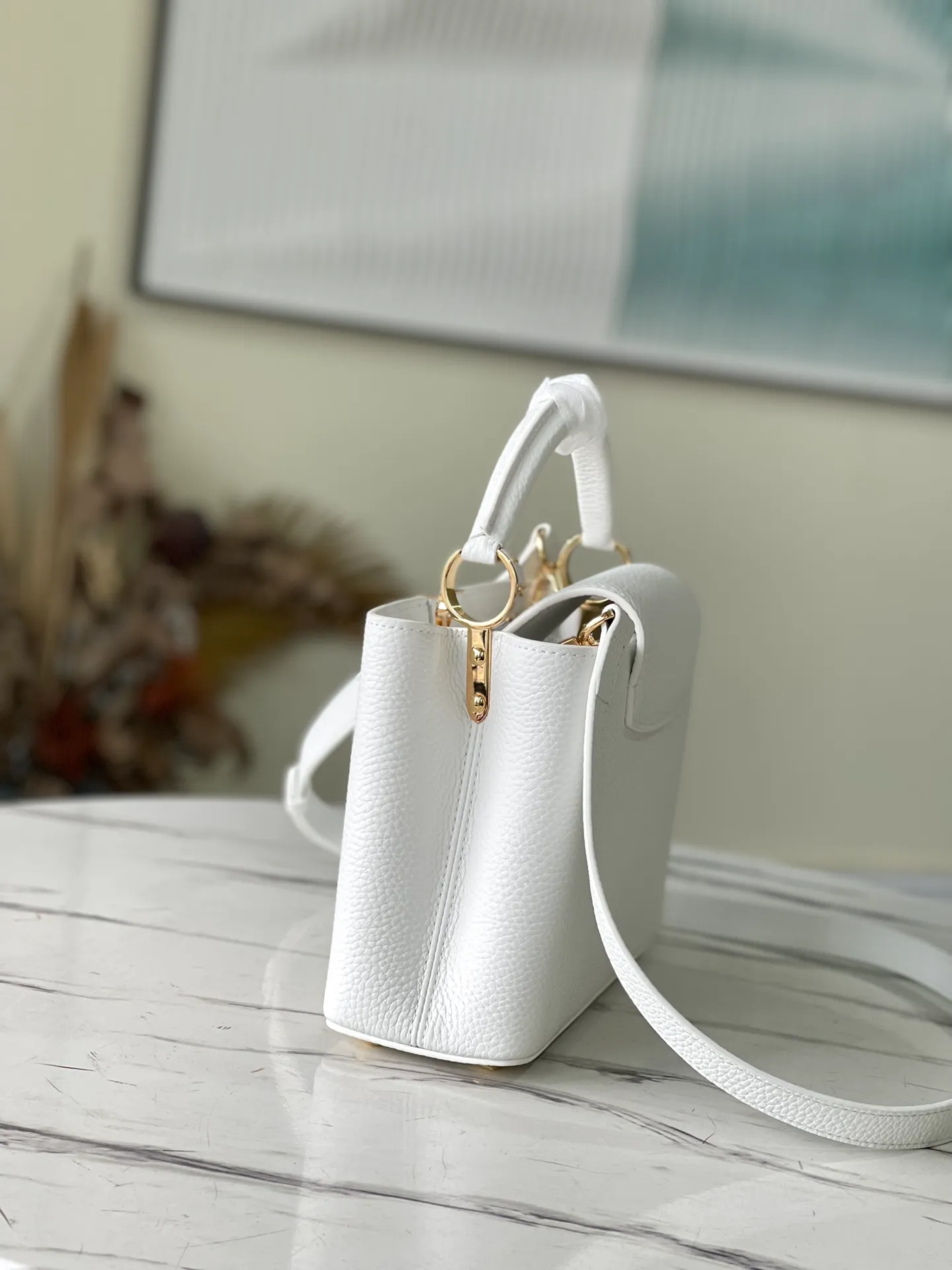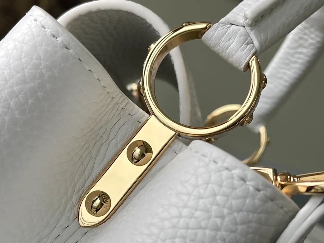 Fashioned from full-grain Taurillon leather, the now-classic Capucines BB handbag displays a host of House signatures: leather-wrapped LV Initials, jewel-like handle mounts inspired by historic trunks, and a distinctive flap with a Monogram Flower motif. Timelessly elegant, this charming model can be carried by hand or worn cross-body on its detachable strap. First launched in 2013, the Capucines is named for the Parisian street where Louis Vuitton first opened shop, in 1854.