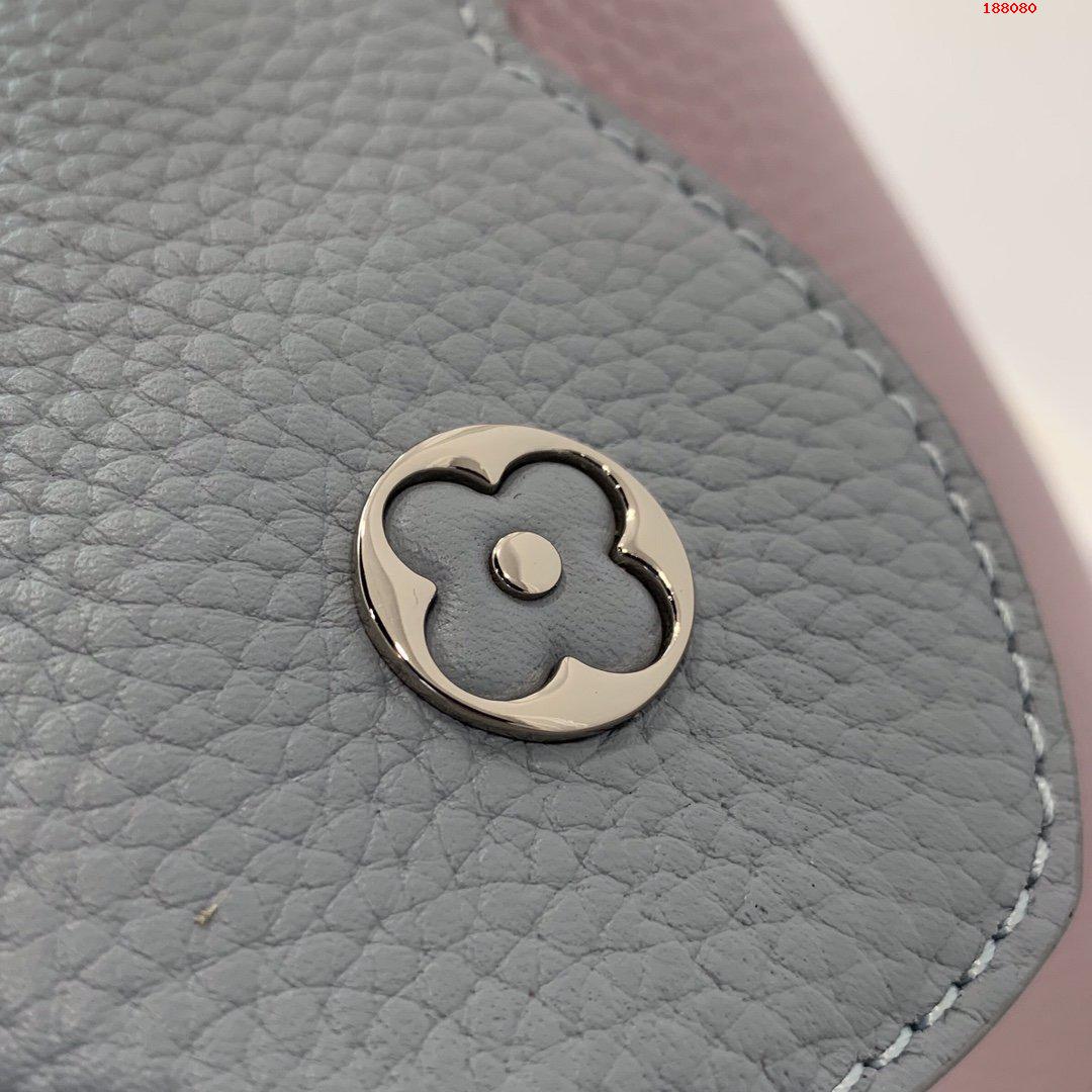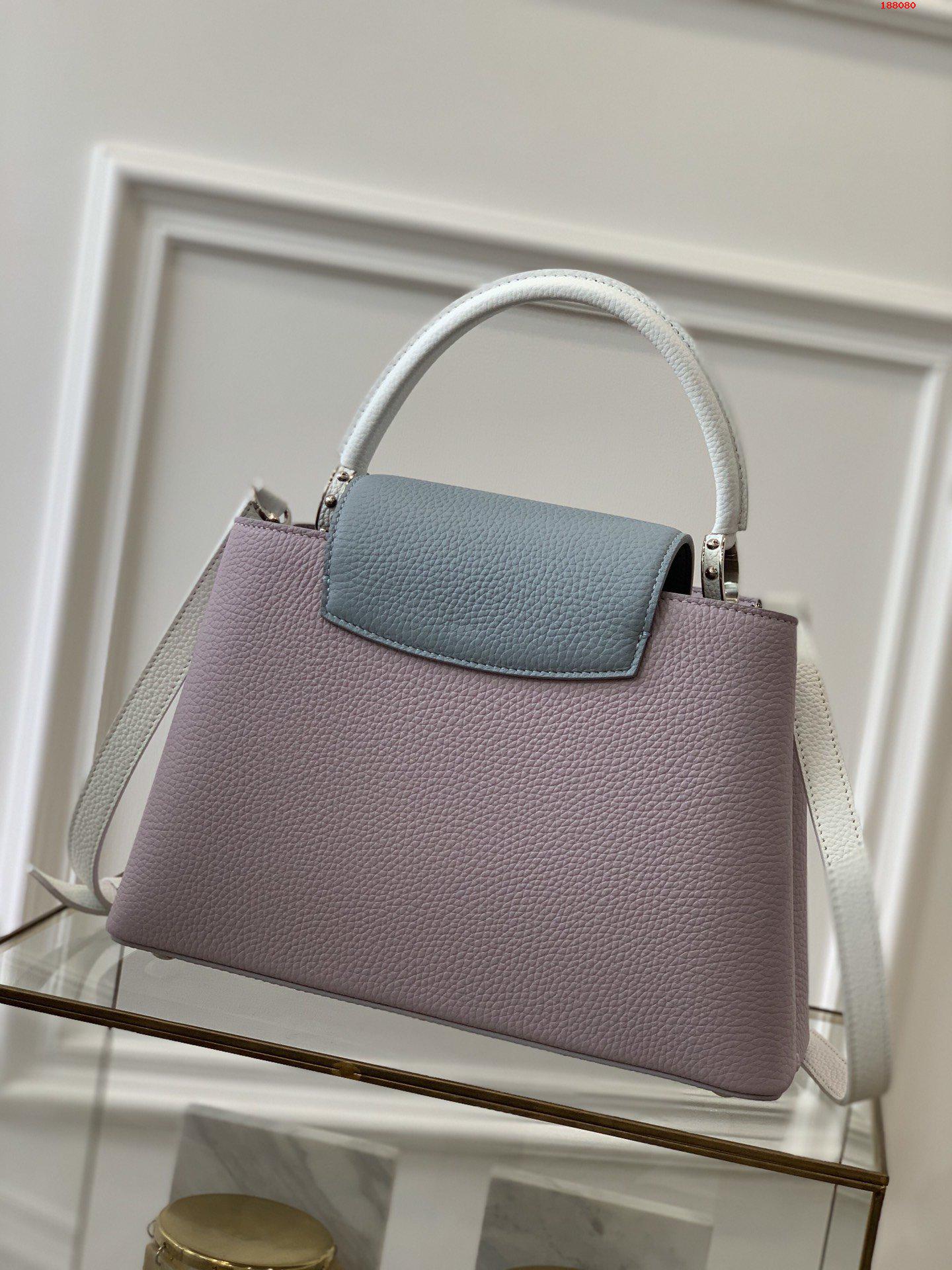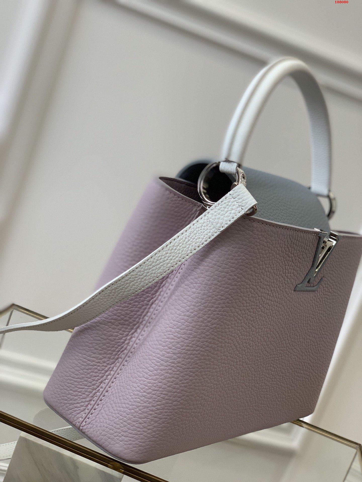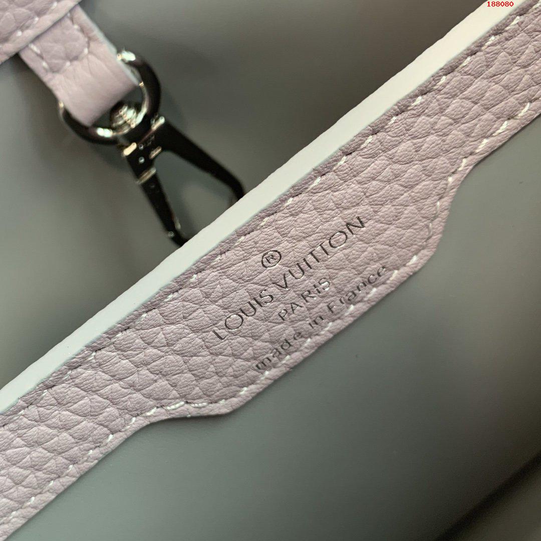 Fresh colorblock accents lend a pop of excitement to the timeless elegance of the Capucines MM handbag. Crafted from full-grain Taurillon leather, this edition features a detachable strap for hand carry. As with all Capucines, the flap can be worn inside the bag to feature the LV Initials signature or outside for a more discreet look.