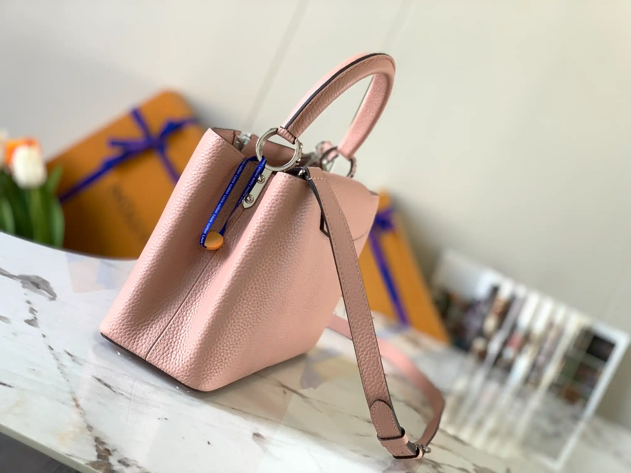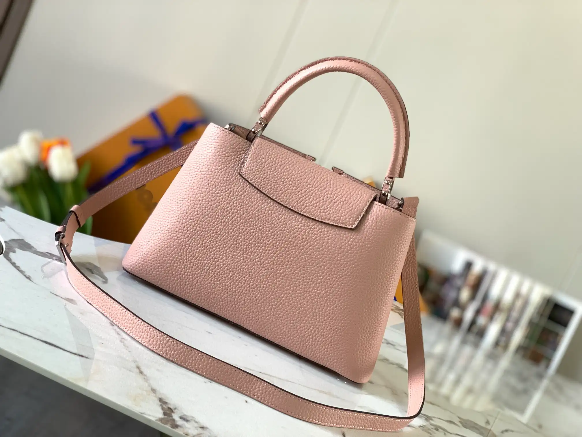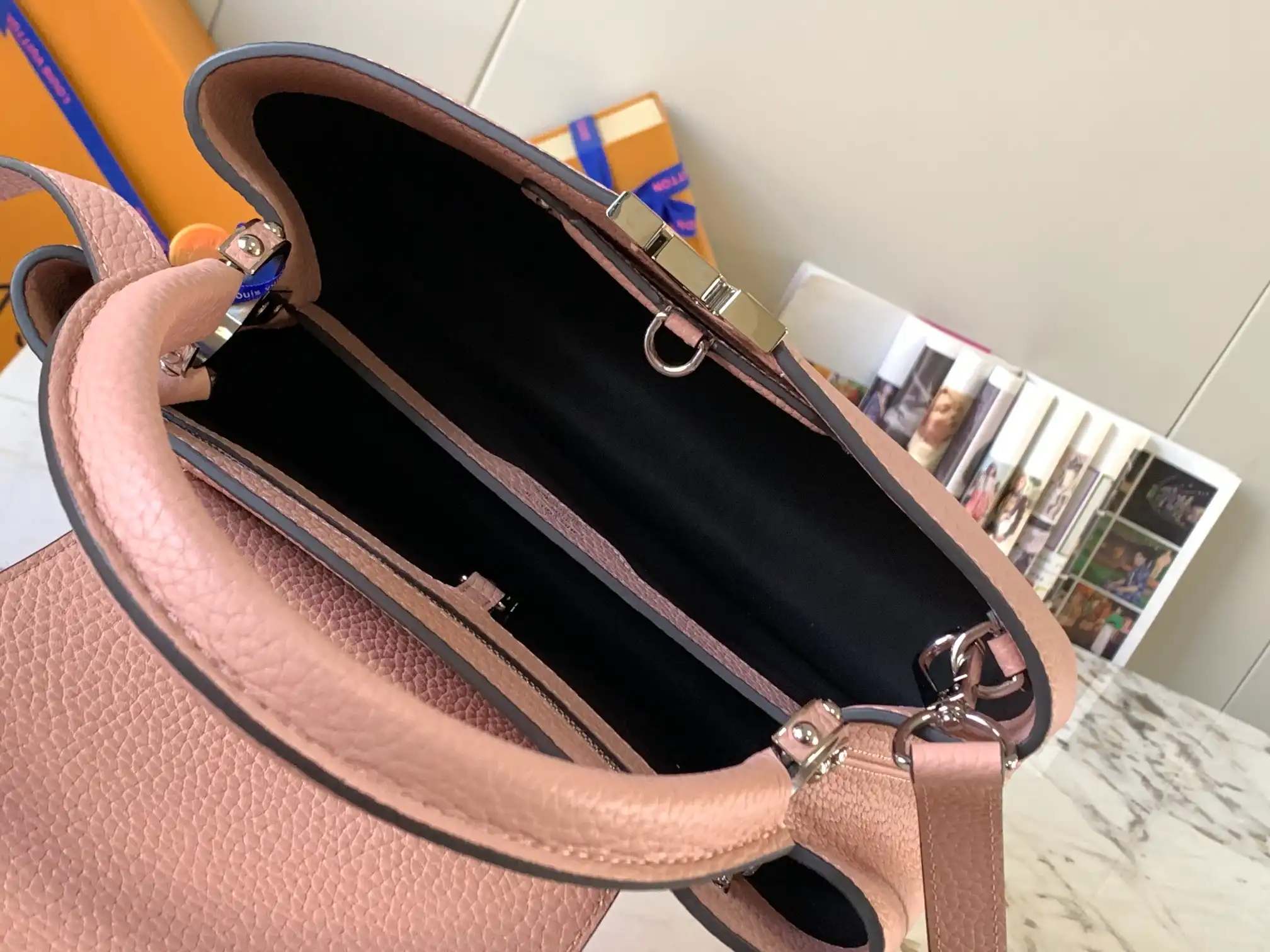 Be the first to review “LOUIS VUITTON CAPUCINES MM HANDBAG TAURILLON LEATHER MAGNOLIA PINK M42258”