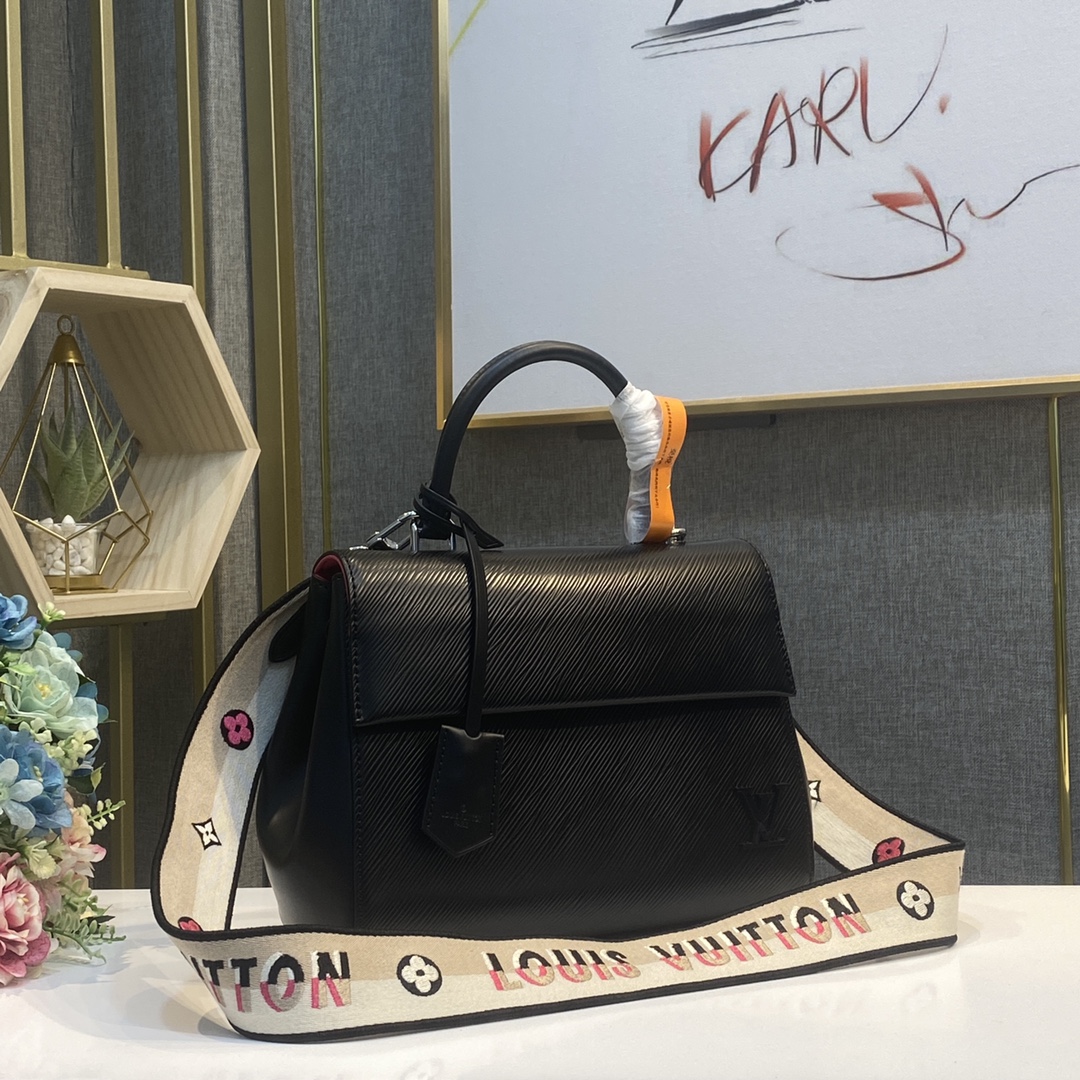 A colorful, crafted jacquard strap gives this edition of the classic Cluny BB handbag a contemporary twist. Fashioned from the House??s revisited slanting Epi leather, the bag also features an LV signature in smooth resin and a surprising bright-pink lining. The reversible strap can be detached for a dressier look, making this a versatile model for every occasion.