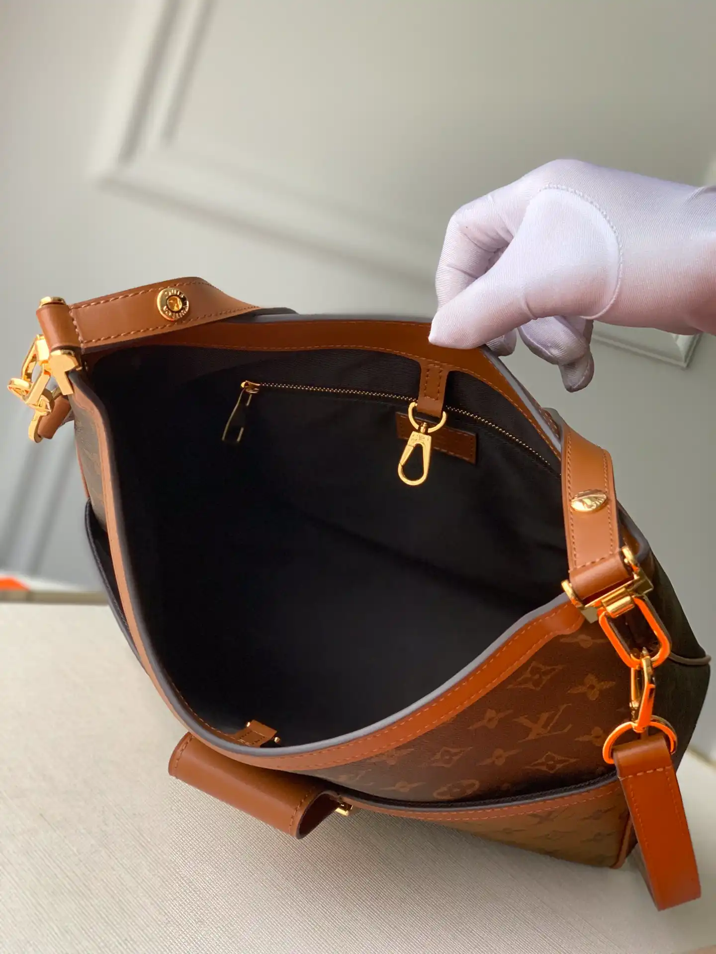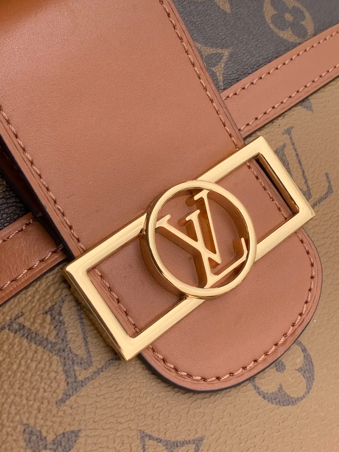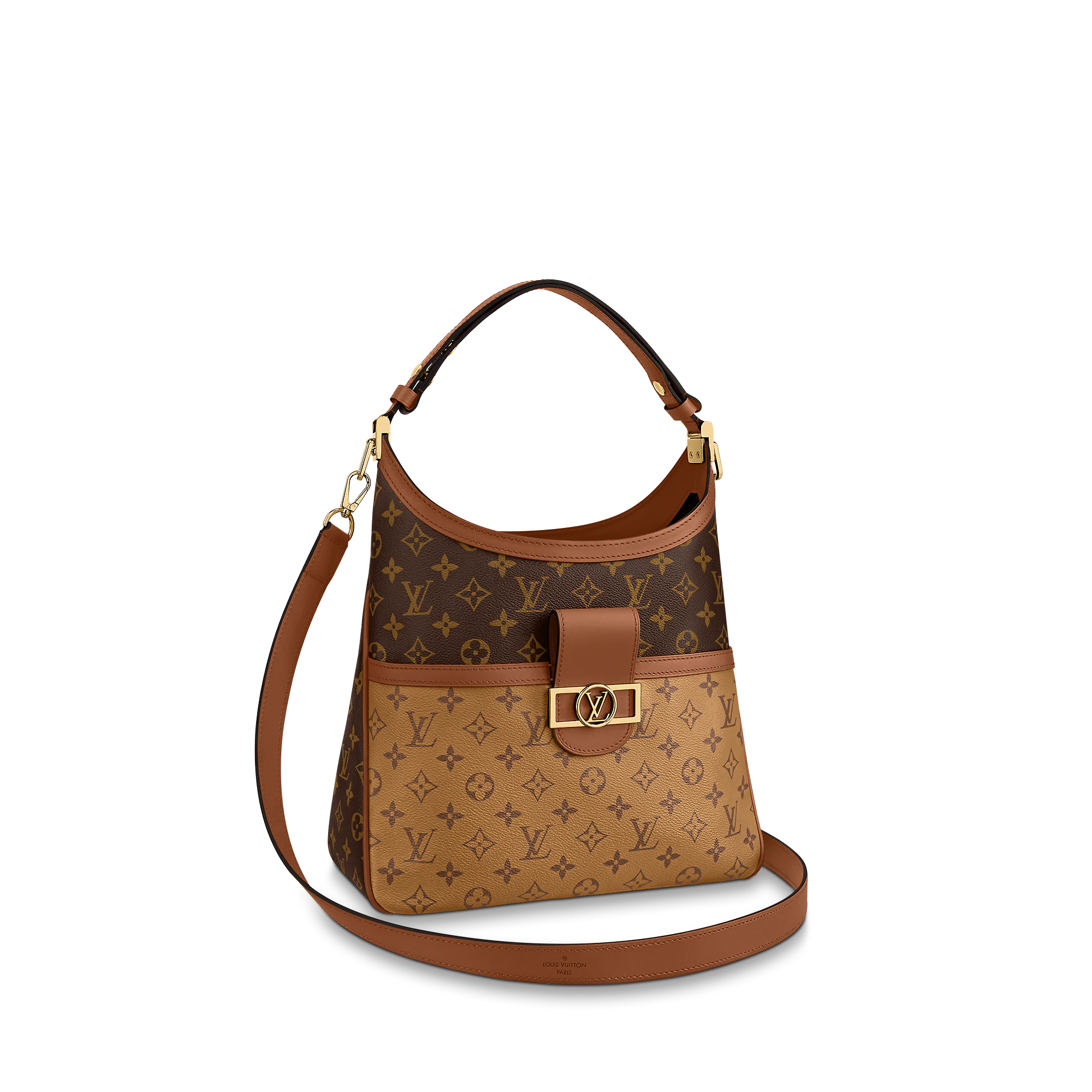 For the PreFall 2020, Nicolas Ghesquière extended the Dauphine range with the Hobo Dauphine MM handbag. The Dauphine is reinterpreted in a Hobo shape with its emblematic Dauphine lock and fashioned in a combination of Monogram and Monogram Reverse canvases. It offers allows multiple carrying options, making it a versatile everyday bag.