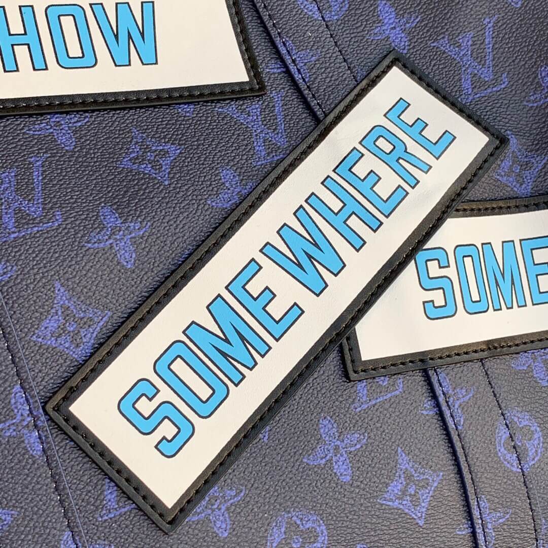 Part of Virgil Abloh’s collaboration with American artist Lawrence Wiener, the Keepall Bandoulière 50 is made from Vintage Monogram canvas and feature’s Wiener’s celebrated aphorism “Somewhere Somehow.” A white-leather shoulder strap and matching top handles enliven the design, as does the red detailing on the bag.