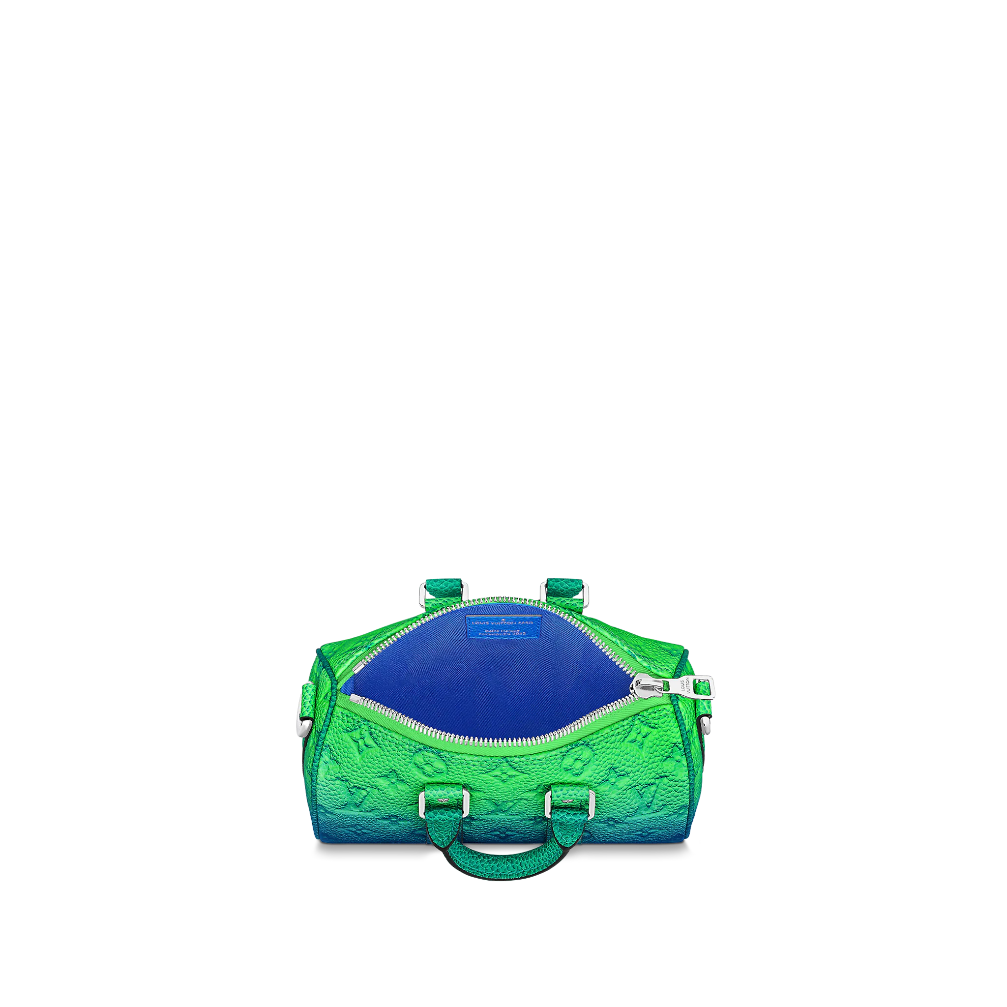The smallest of the Keepalls, the Keepall XS bag in Virgil Abloh’s new Taurillon Illusion leather is a celebration of the nuanced colors of the techo music world: bright tones, almost florescent, that seem to have been sprayed onto the Monogramed leather. The Keepall XS is the perfect size for essentials like a phone and wallet.