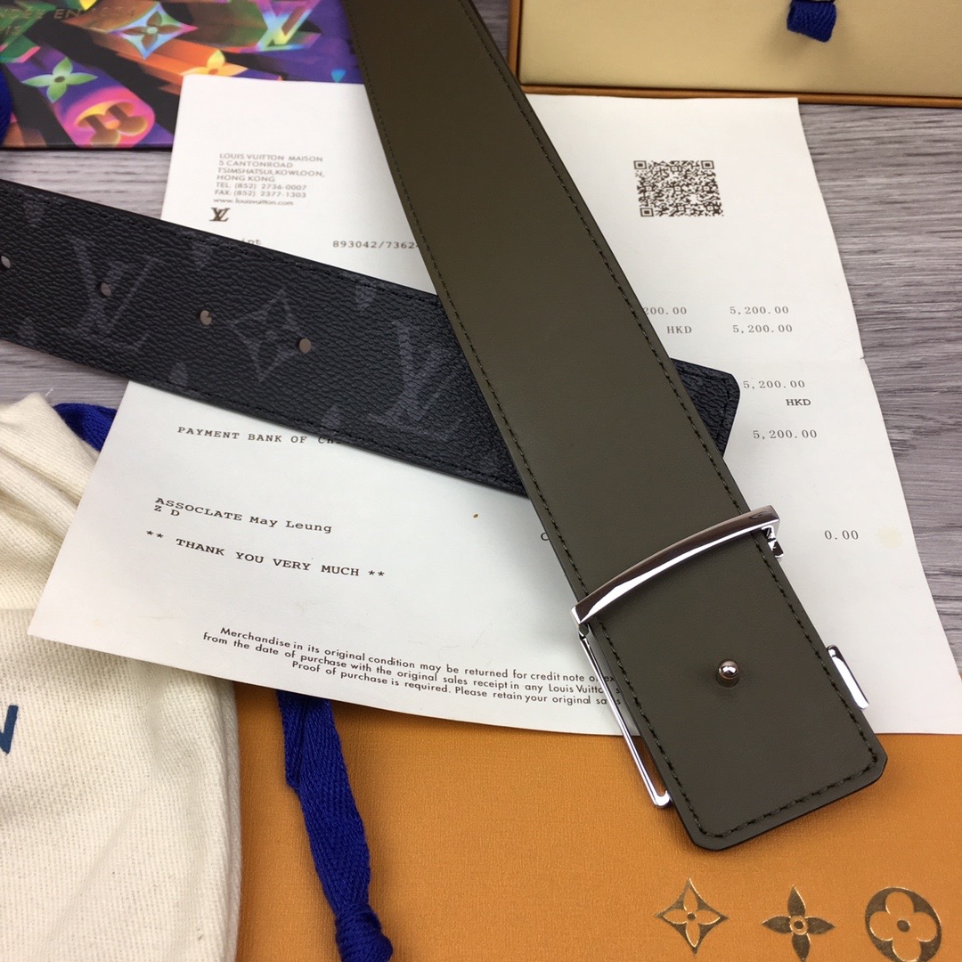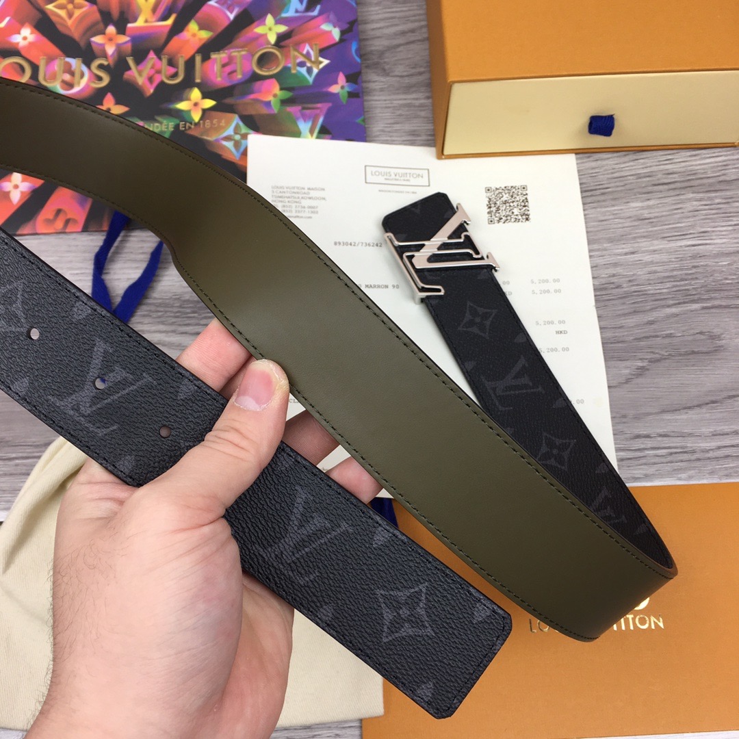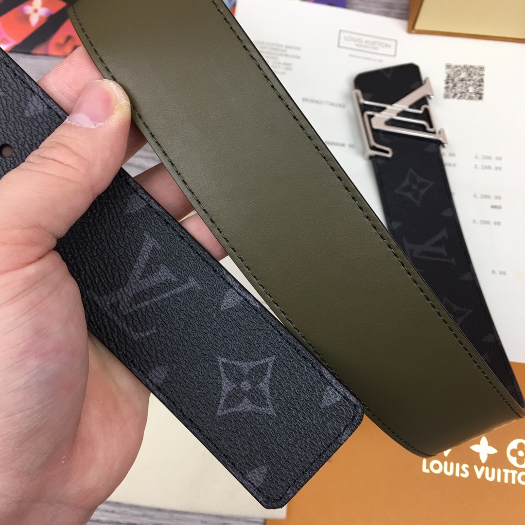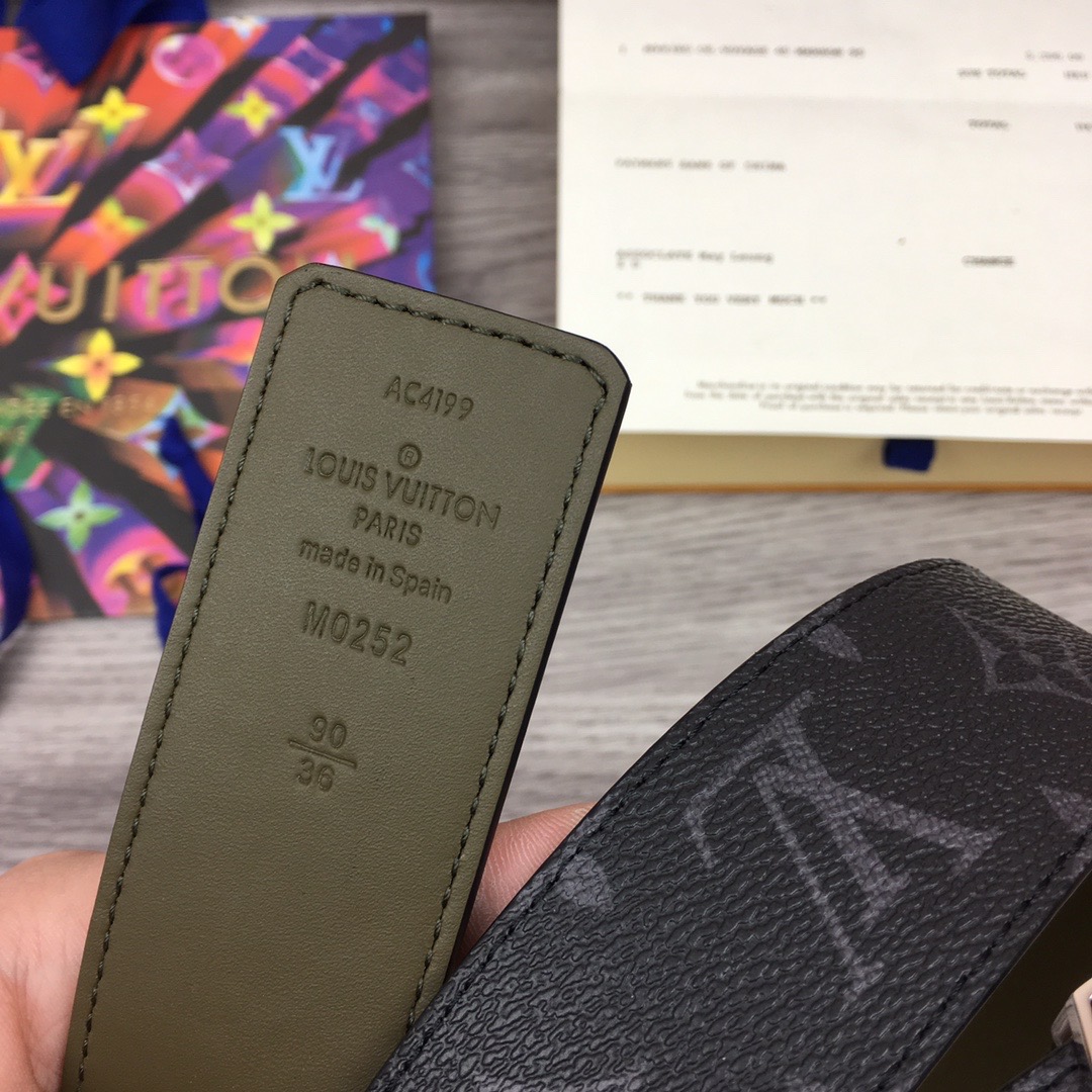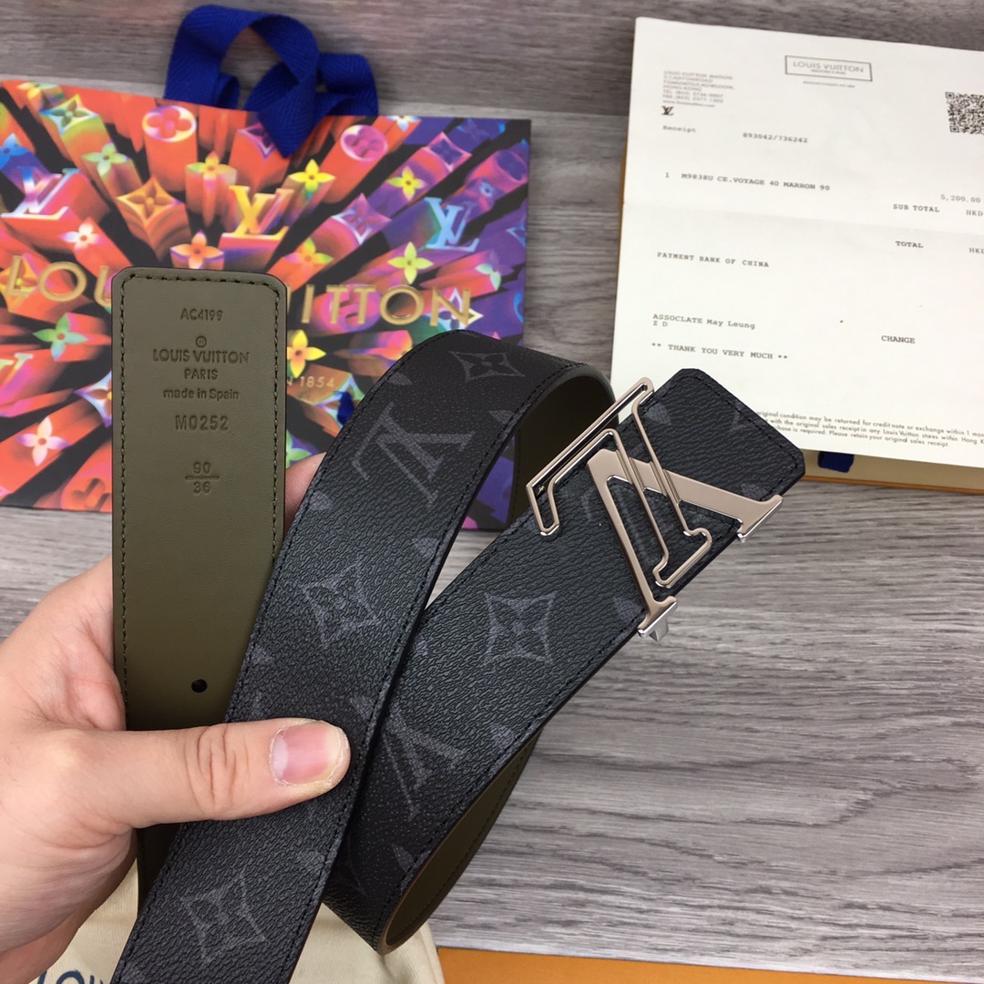The focal point of this LV Line 40mm reversible belt is the artfully constructed buckle. This elegant fastening features openwork design on the “L” for a contemporary twist on the Fall-Winter 2019 design. Showcasing the Monogram Eclipse pattern on one side and solid calf leather on the other, this belt pairs easily with both formal and casual attire.