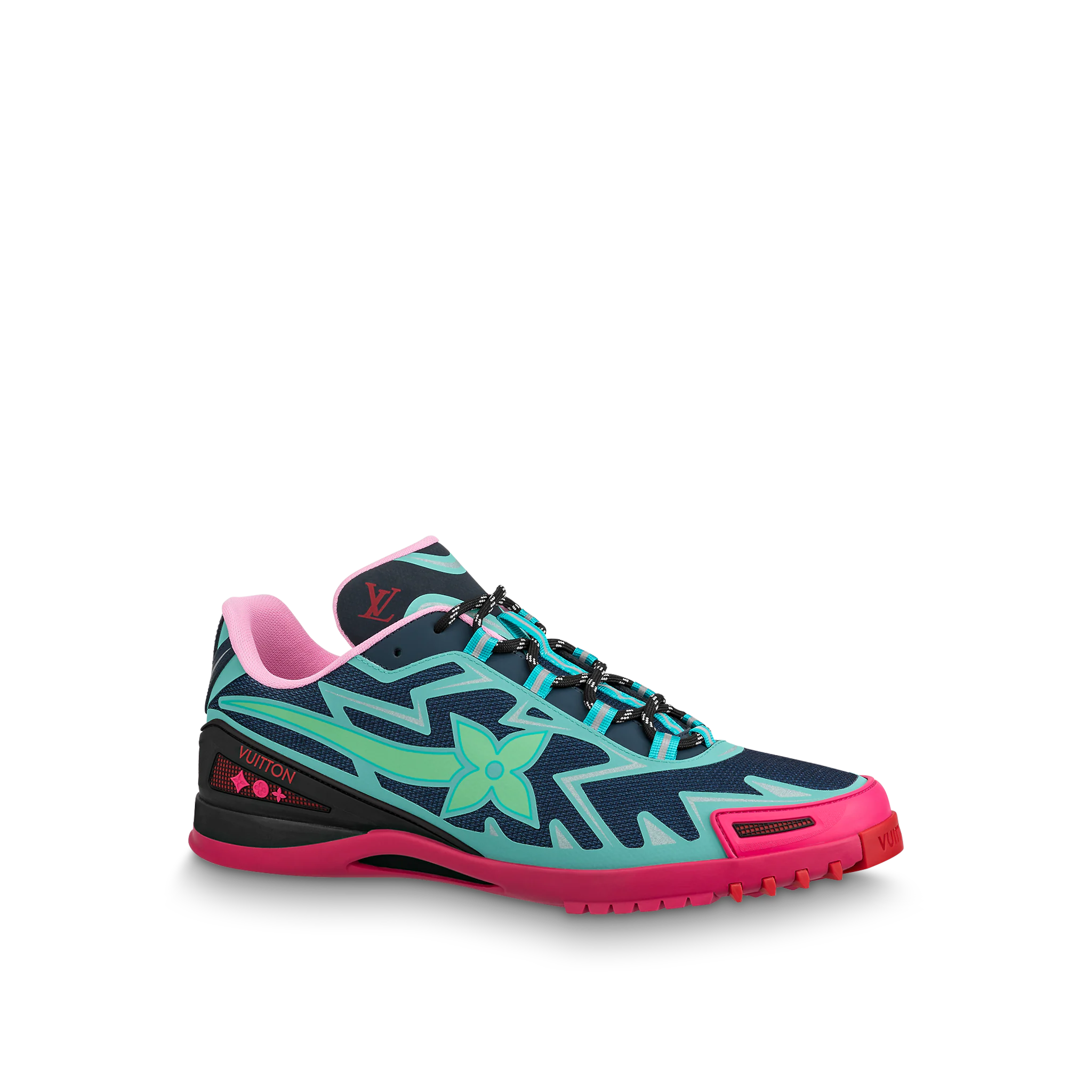 Seen at the Fall-Winter 2021 men’s show, the LV Sprint sneaker has a sleek, streamlined design inspired by football boots. This lightweight sneaker is crafted from a mix of technical materials and is characterized by the graphic pattern, incorporating a Monogram Flower, on its upper. The rubber outsole features the LV Initials and Monogram Flowers on its tread.