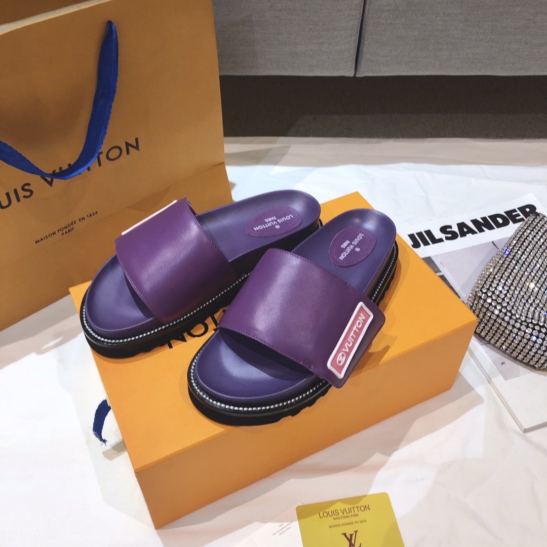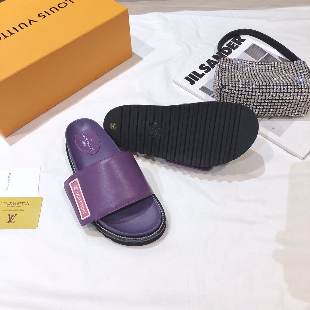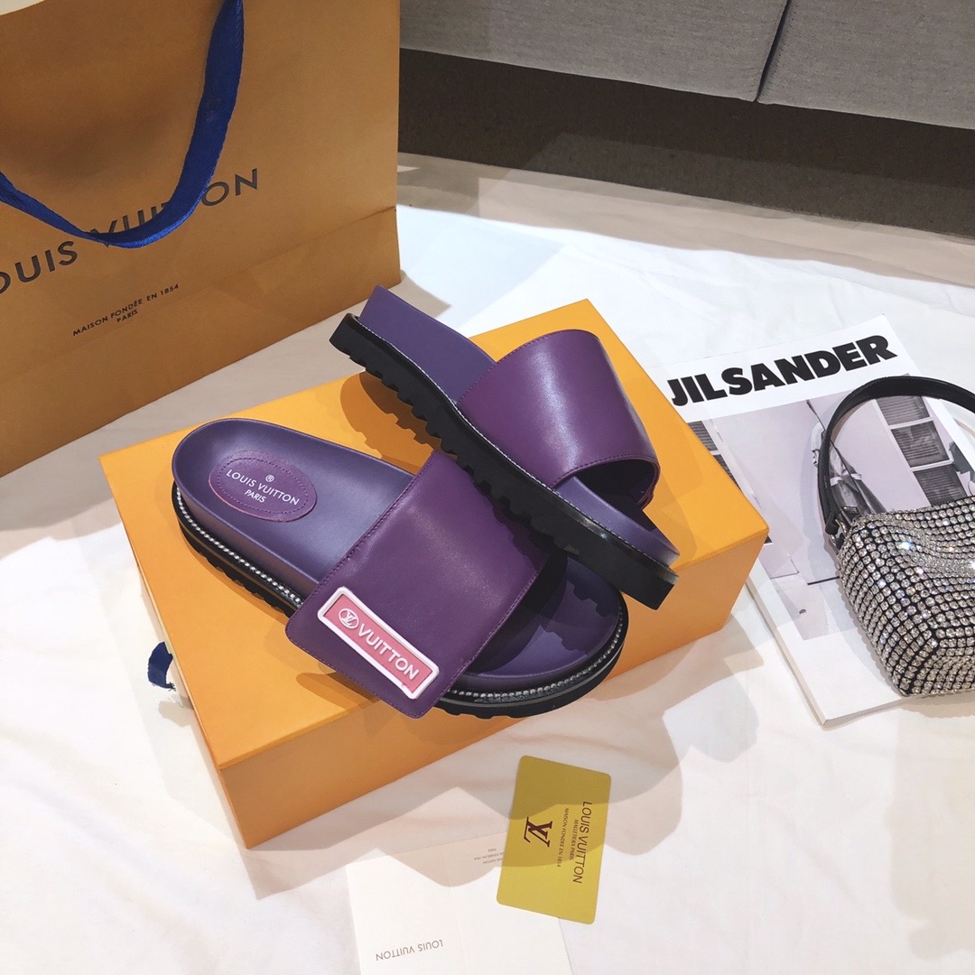 LV Sunset Comfort Flat Sandals in smooth calfskin with a Vuitton rubber label for the padded laces. Velcro can adjust the elasticity, and the tough insole upgrades the comfort experience.