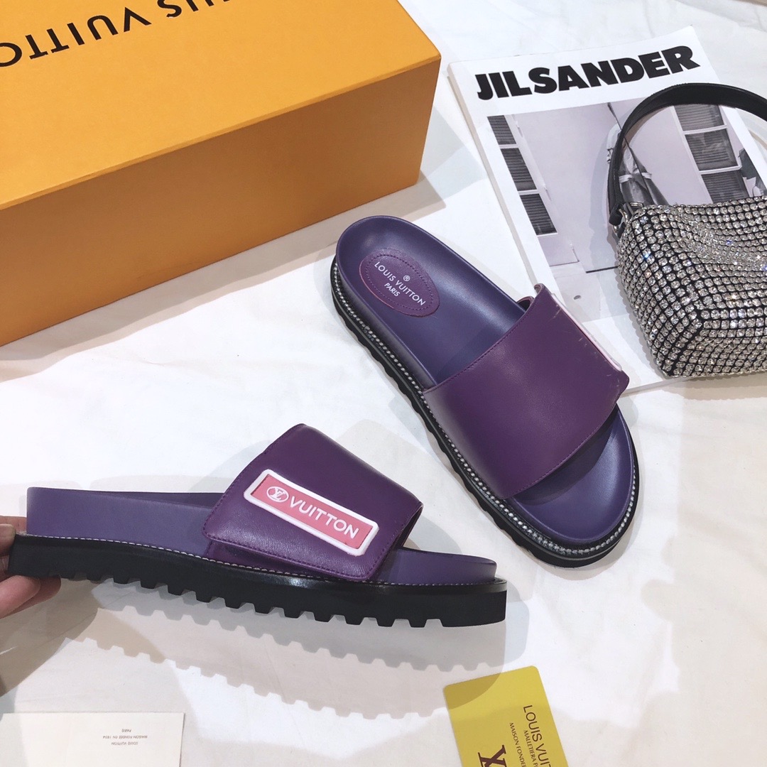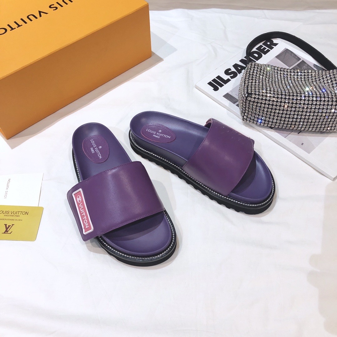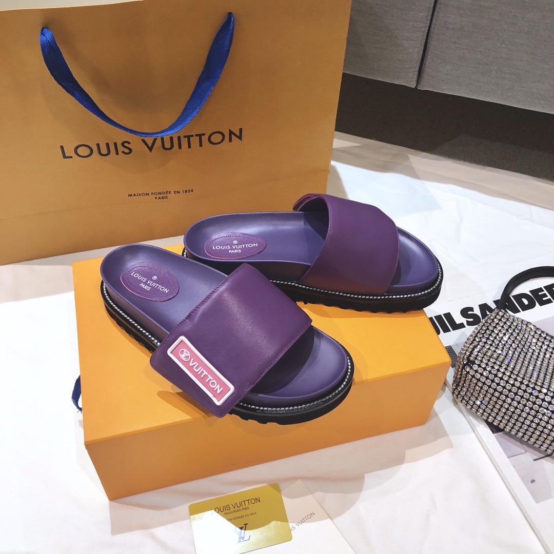 LV Sunset Comfort Flat Sandals in smooth calfskin with a Vuitton rubber label for the padded laces. Velcro can adjust the elasticity, and the tough insole upgrades the comfort experience.