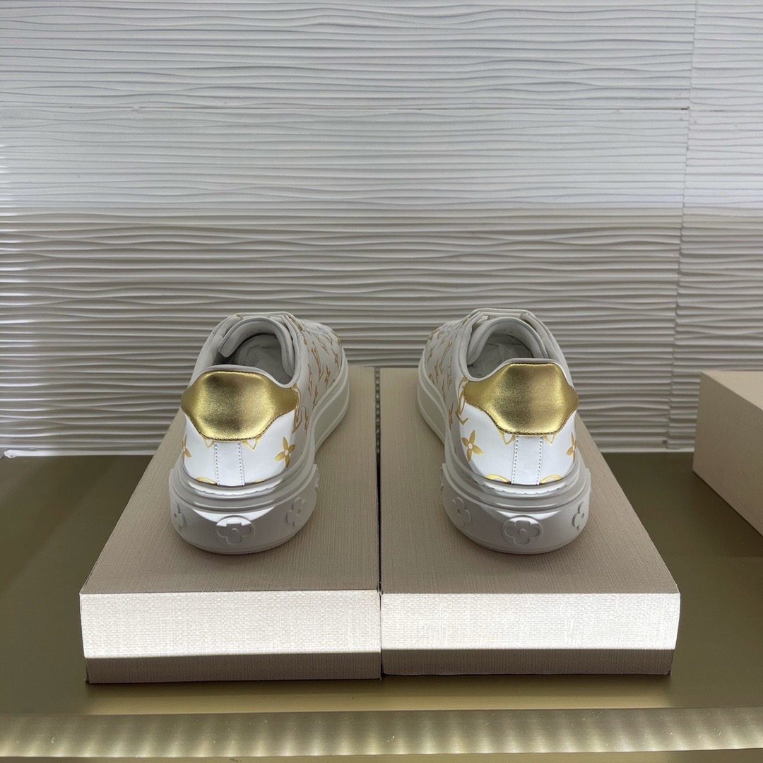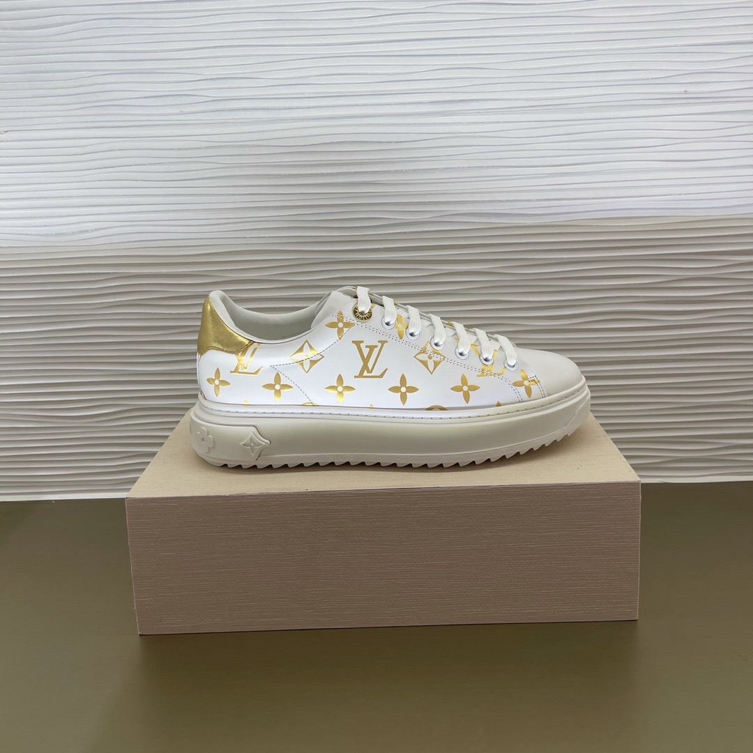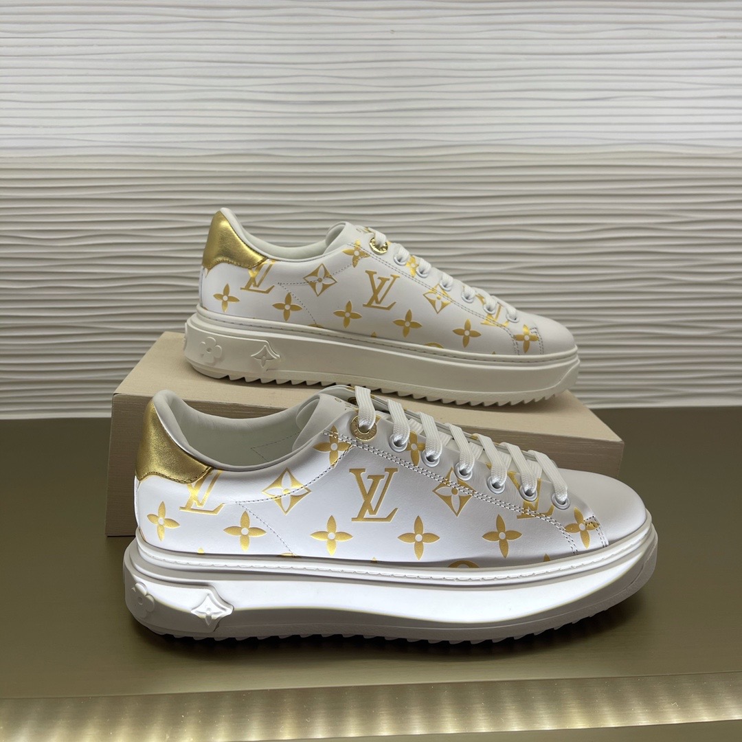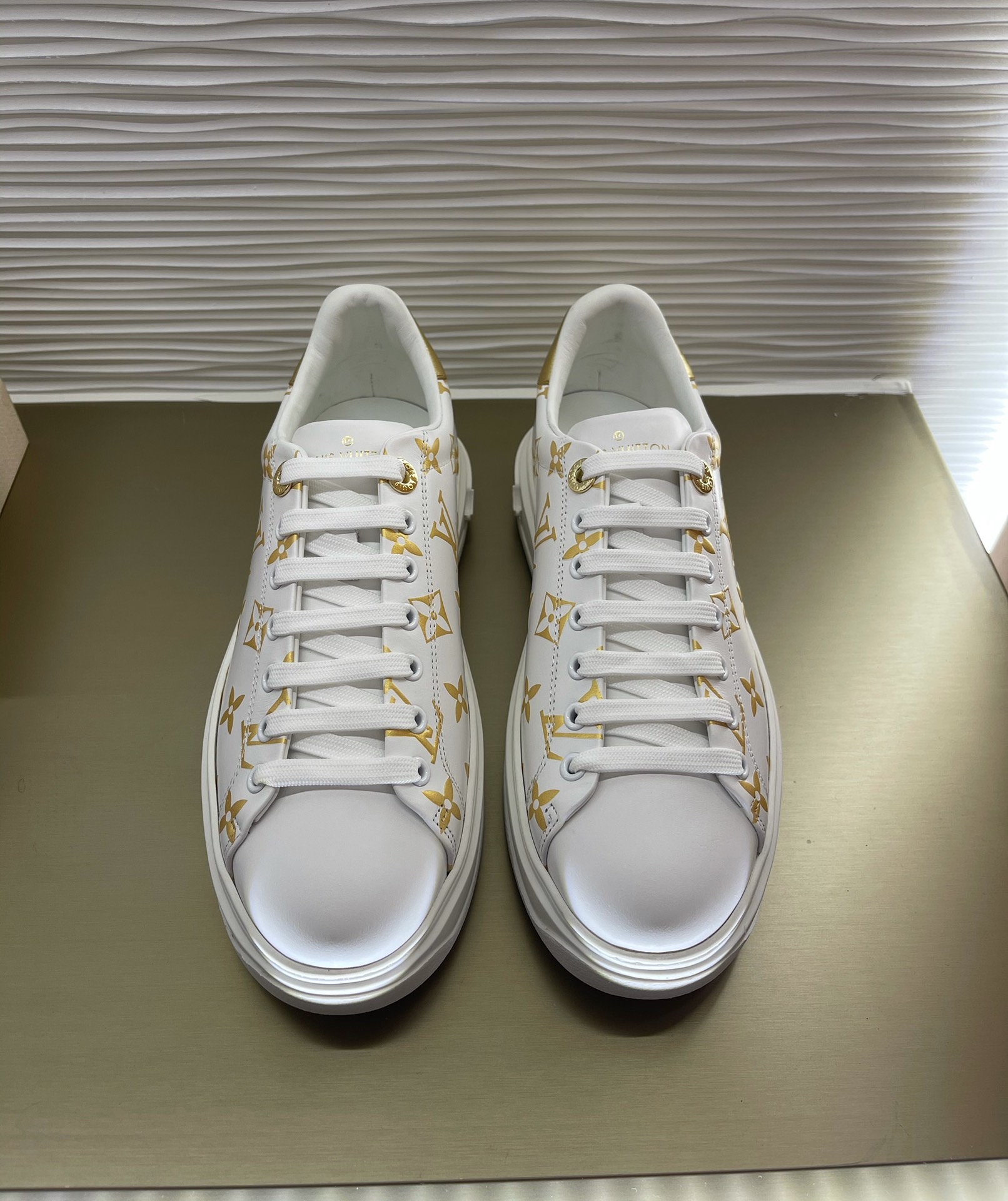 These Time Out sneakers feature calfskin with metallic Monogram embossing and a leather back of the same texture. The iconic thick outsole blooms with Monogram flowers, and the trend is self-evident.