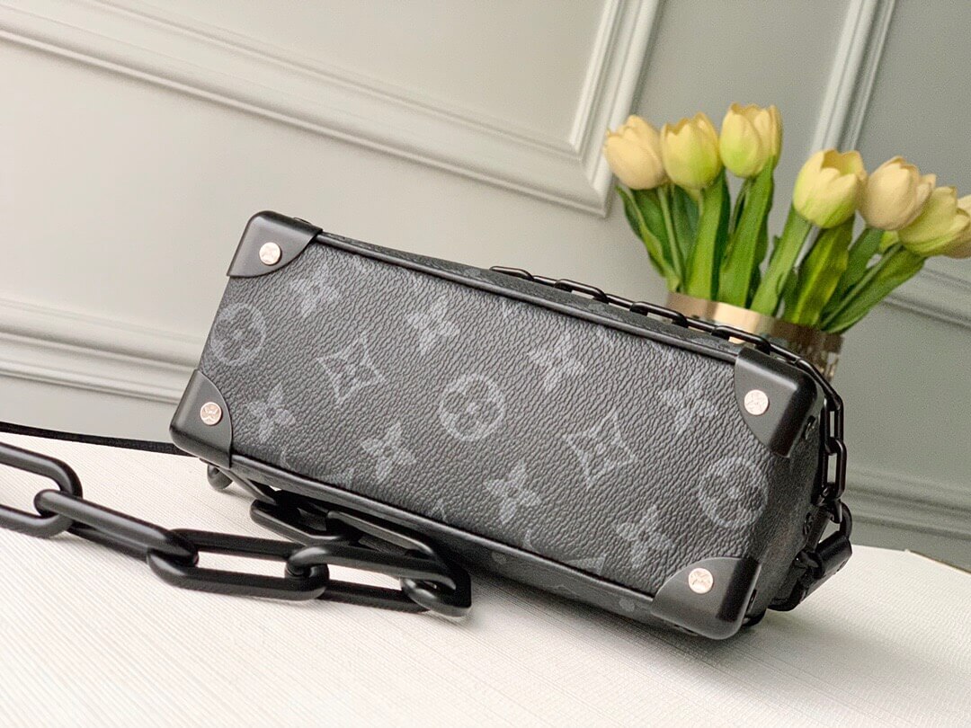 Created by Virgil Abloh for the Spring-Summer 2019 show, the Mini Soft Trunk bag is made from Monogram Eclipse canvas and boasts a matte-black chain in resin. This boxy yet elegant accessory evokes the House’s trunk making heritage. It can be worn over the shoulder or carried as a clutch.