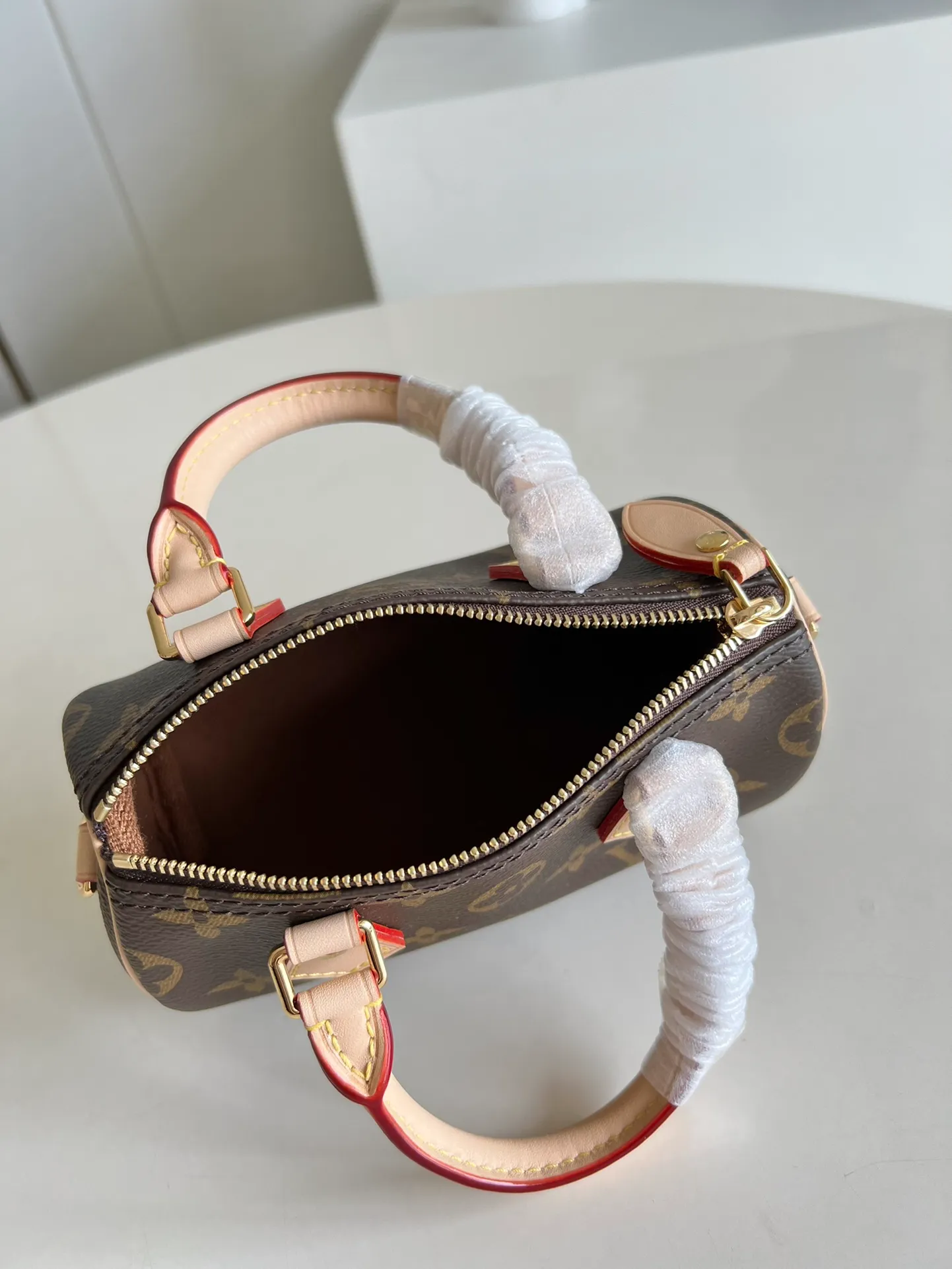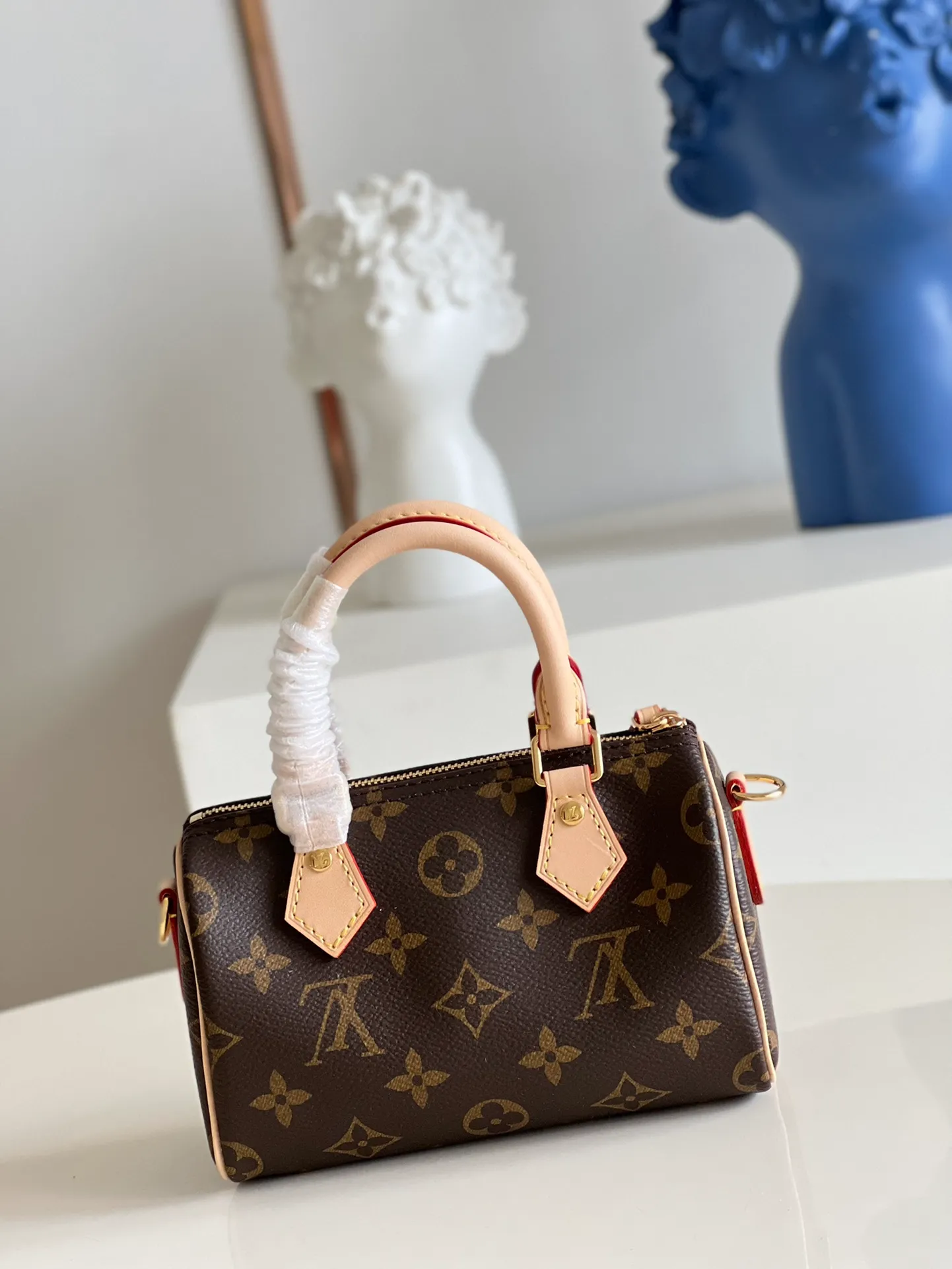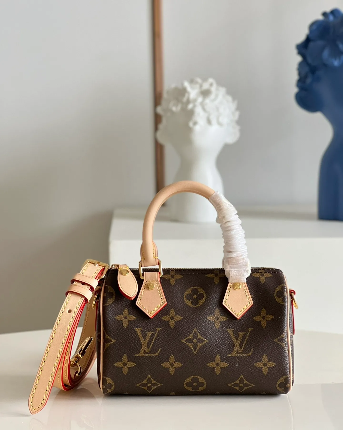 The Nano Speedy revamped in Monogram canvas is the perfect miniature version of Louis Vuitton’s iconic Speedy bag, and the ideal way to carry essentials. This beautifully crafted design is complemented by aged natural cowhide leather and gold-tone hardware. In addition to its two handles, it has a removable, adjustable shoulder strap for different carry options.