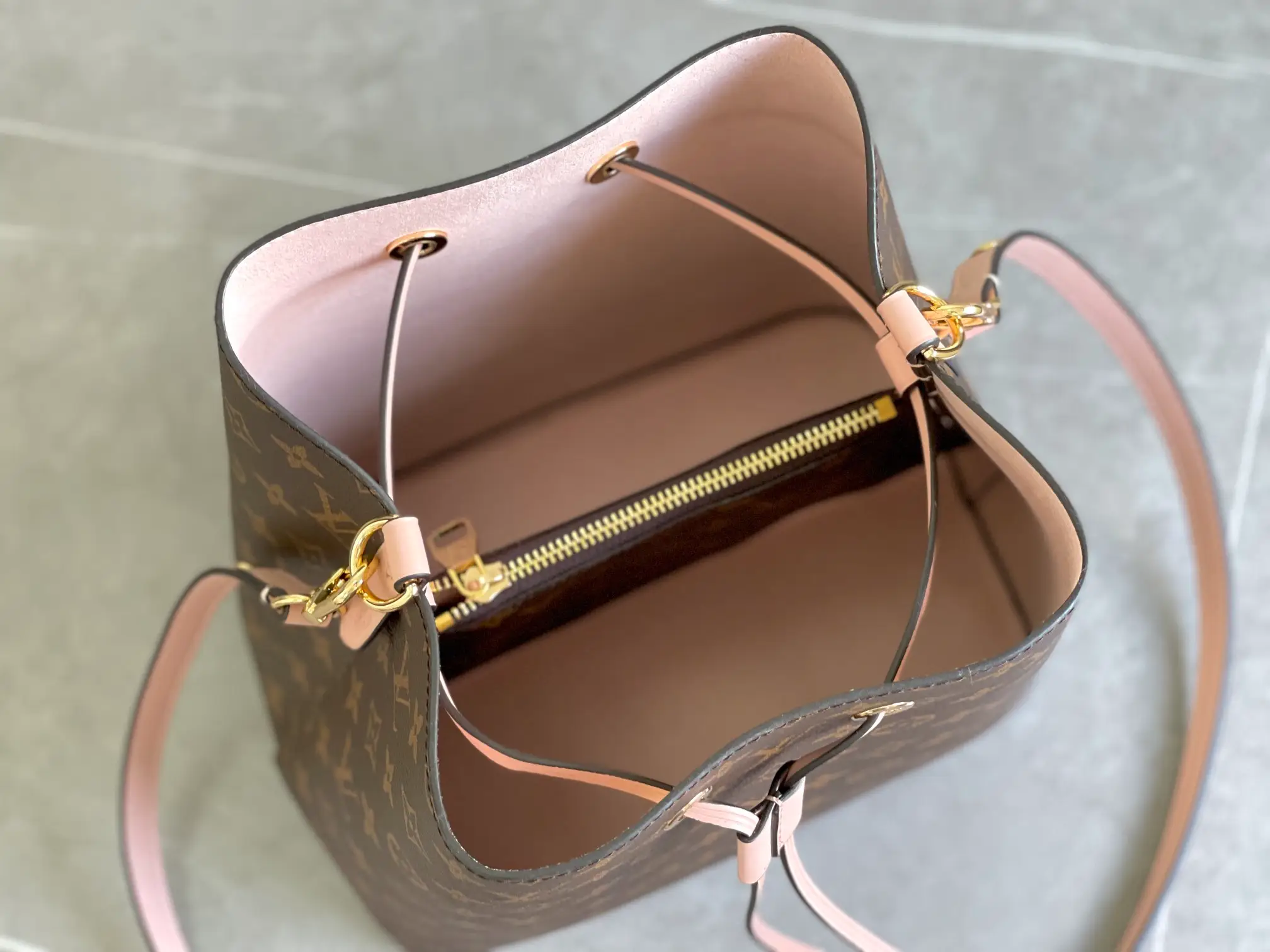 This NéoNoé bucket bag reproduces the 1932 Gaston-Louis Vuitton design and is definitely a classic of the brand. The bucket bag was originally a fashionable style designed to carry champagne. This new modern design is made of Monogram canvas. It has a fashionable appearance and is decorated with colorful leather trims and the same color adhesive lining. The adjustable length of the shoulder strap can be used as a shoulder. Carry on your back or cross-back.