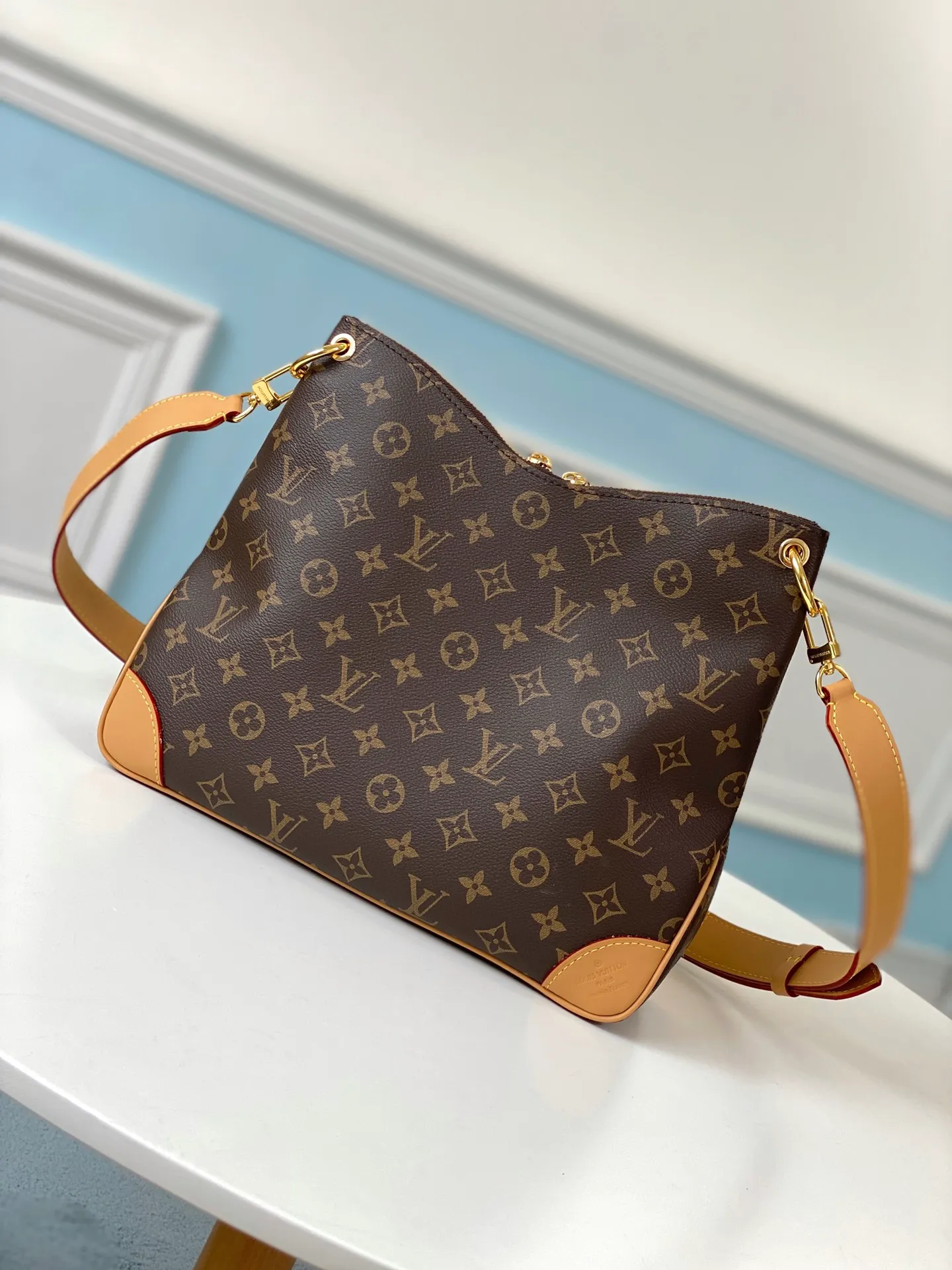 For Fall-Winter 2020, Louis Vuitton introduces the new Odéon MM, a stylish and functional shoulder bag. Reinforced leather corners and Monogram canvas give this practical bag a retro charm. An adjustable leather strap allows shoulder or crossbody carry. The two zipper pulls enable easy opening and closing, for quick access to belongings inside.